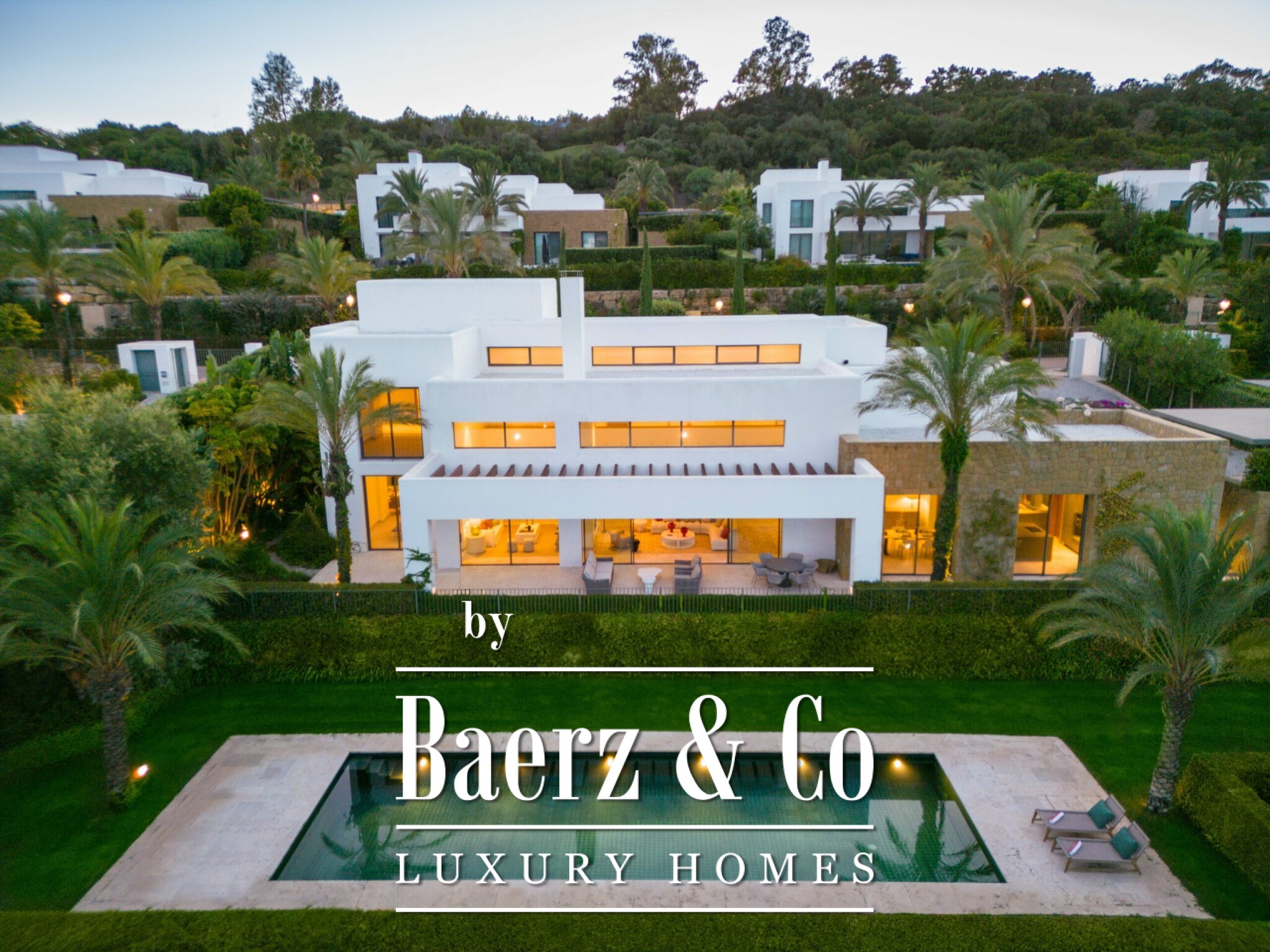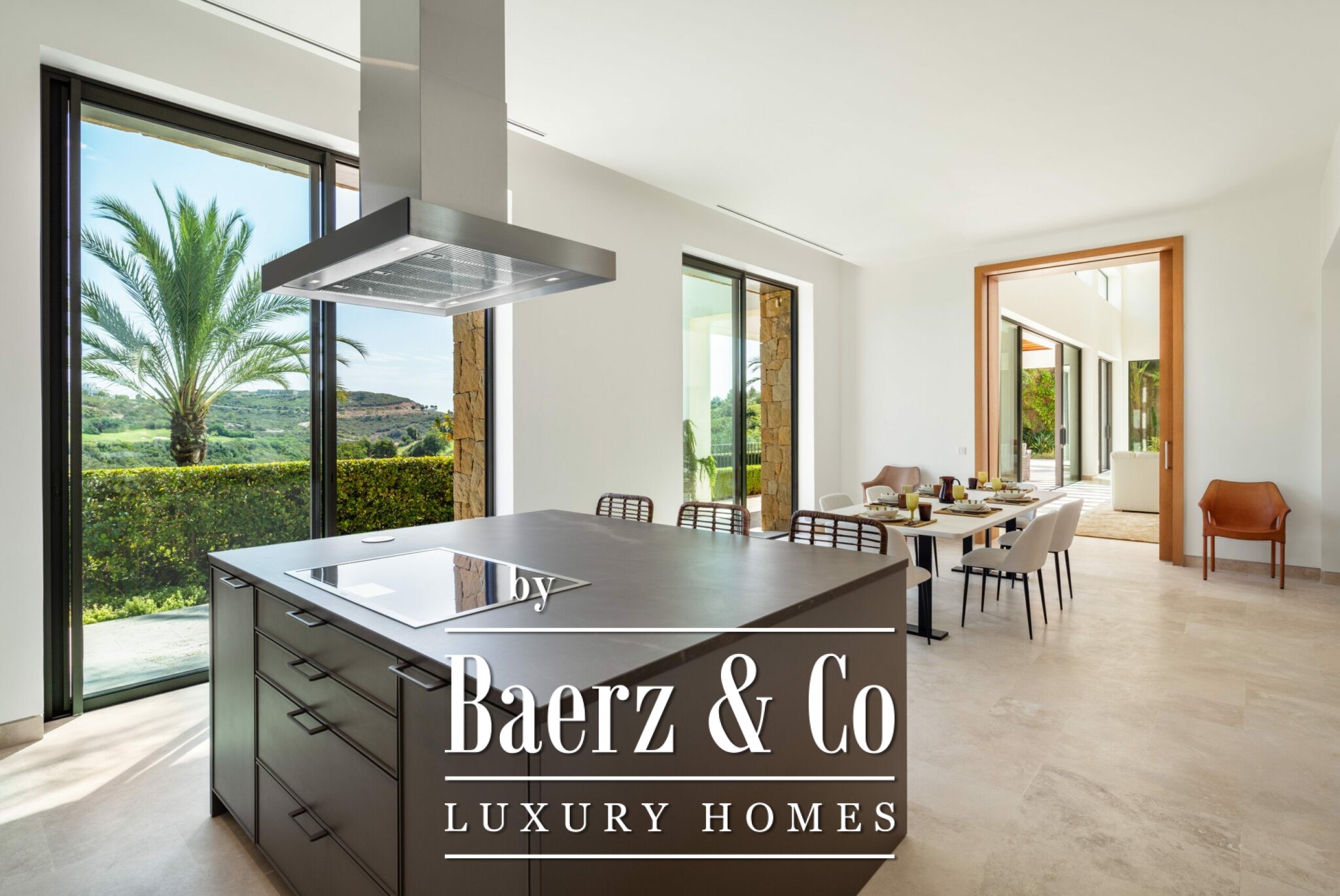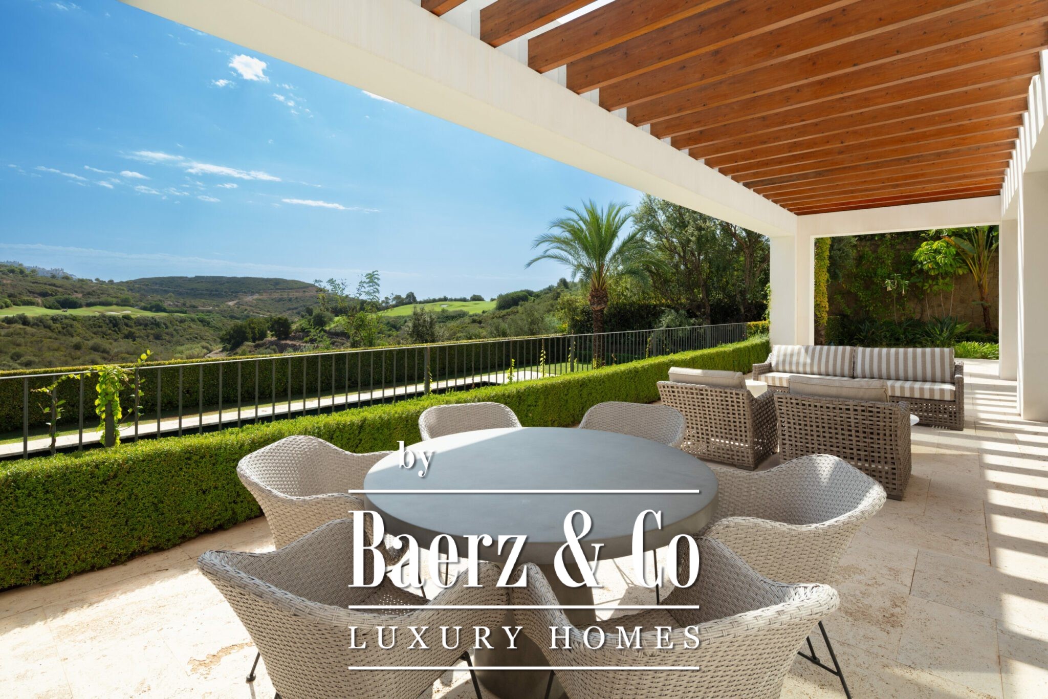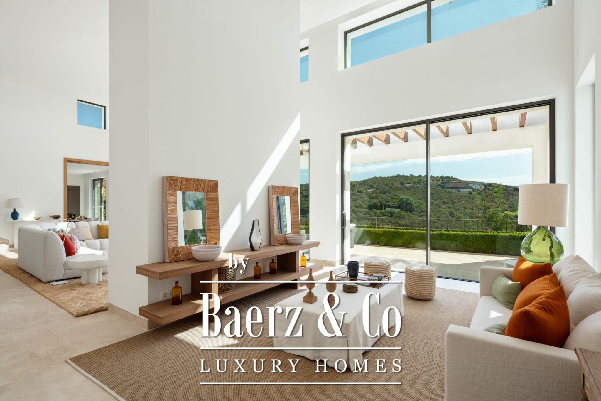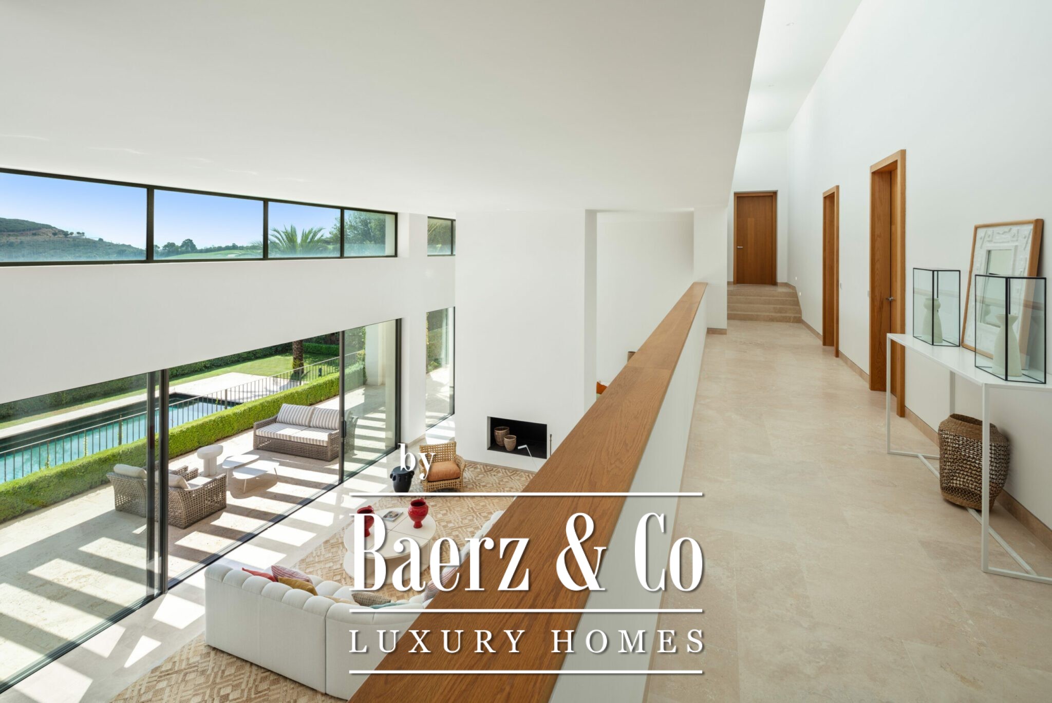 Villa Estepona biedt een verfijnd perspectief op panoramisch uitzicht over de golfbaan en het landschap binnen een van Spanje’s befaamde golfresorts. Met een oppervlakte van 874 m², zes slaapkamers en zes badkamers, presenteert deze nieuw gebouwde villa een modern architecturaal silhouet en een zorgvuldig gecreëerd gevoel van ruimte. De privéoprit benadrukt discretie; de overdekte parkeerplaats voor twee auto’s staat garant voor comfort en privacy.