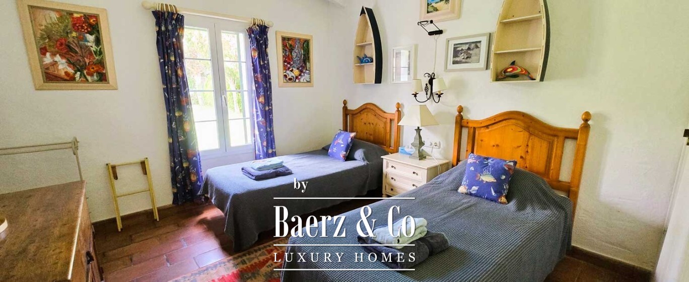De architectuur leidt u vanaf een overdekt entree-terras naar een woon- en eetgedeelte waar verbinding en privacy harmonieus samenkomen. De open, volledig uitgeruste keuken biedt ruimte aan culinaire ambities, terwijl het evenwicht tussen de gemeenschappelijke ruimten uitnodigt tot samenkomen of juist tot rustige afzondering. Vijf royaal bemeten slaapkamers en vijf badkamers waarborgen flexibiliteit en sereniteit verdeeld over twee verdiepingen, met als hoogtepunt de master suite op de bovenverdieping. Deze beschikt over een inloopkast, en suite badkamer en privéterras om te genieten van de zonsondergang boven de Middellandse Zee.