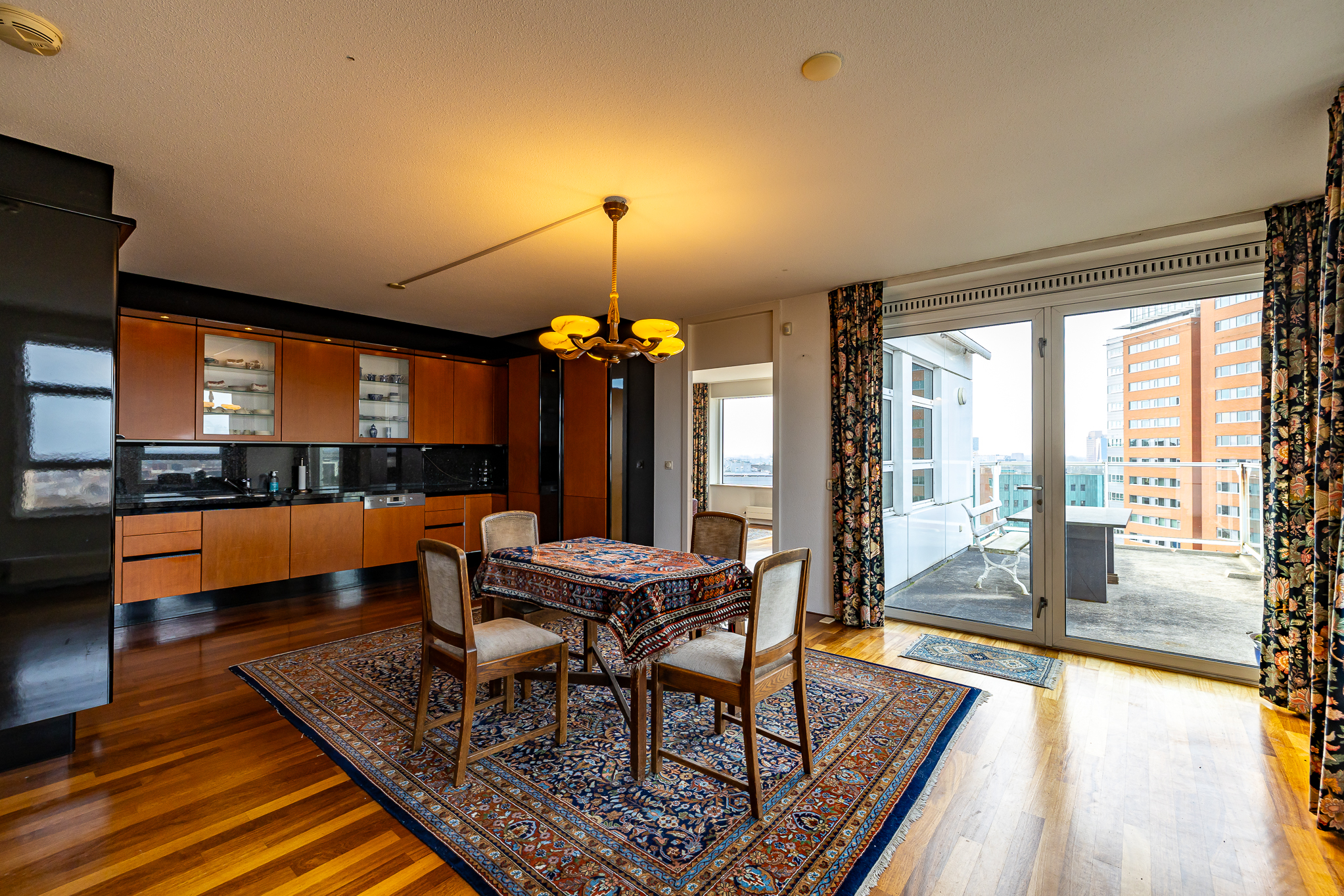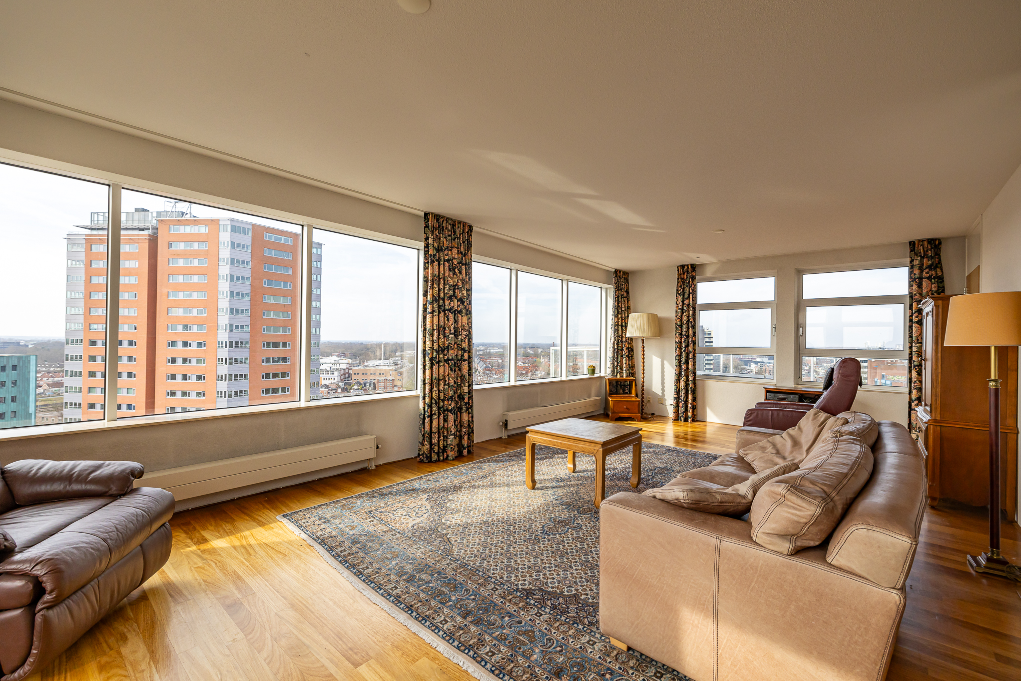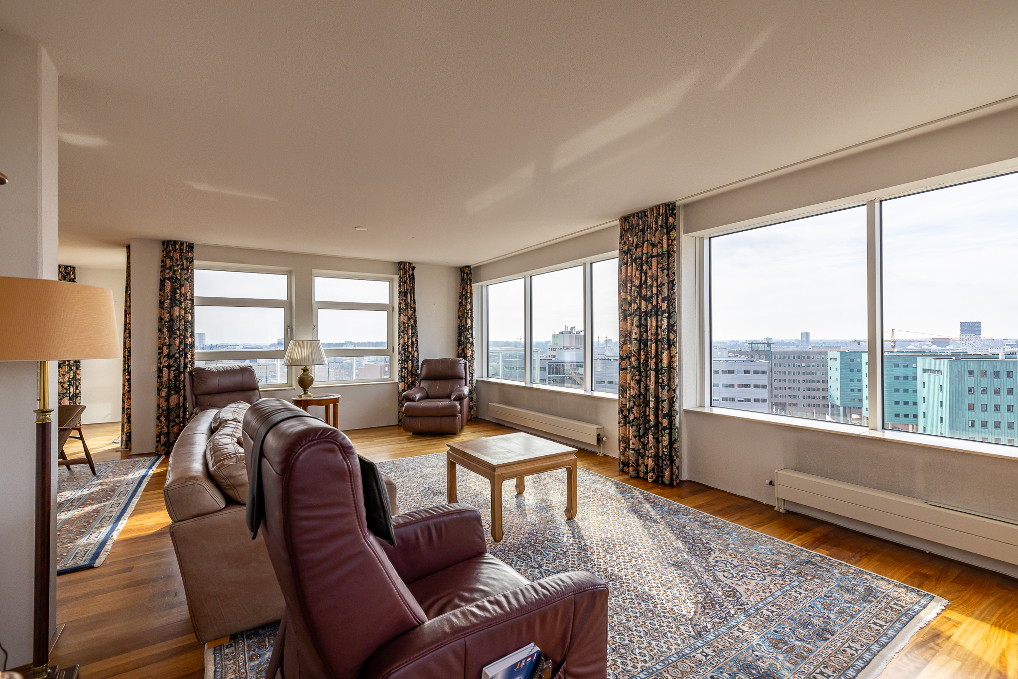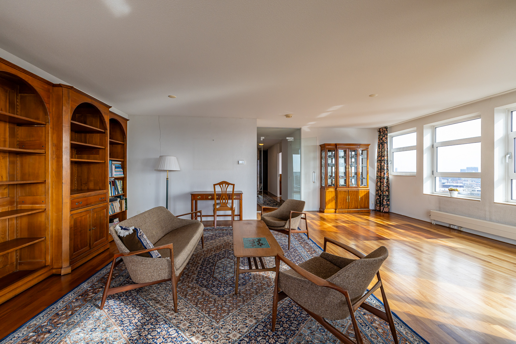 Door de samenvoeging van twee penthouses heeft de woning maar liefst een woonoppervlakte van 263 m² en is o.a. voorzien een zeer ruime woonkamer en woonkeuken, vier slaapkamers, twee badkamers met stoomcabine, jacuzzi en sauna, twee separate toiletten en twee dakterrassen. Vanaf alle vertrekken in de woning en het balkon rondom de woning strekt zich een adembenemend uitzicht over de hele stad uit.