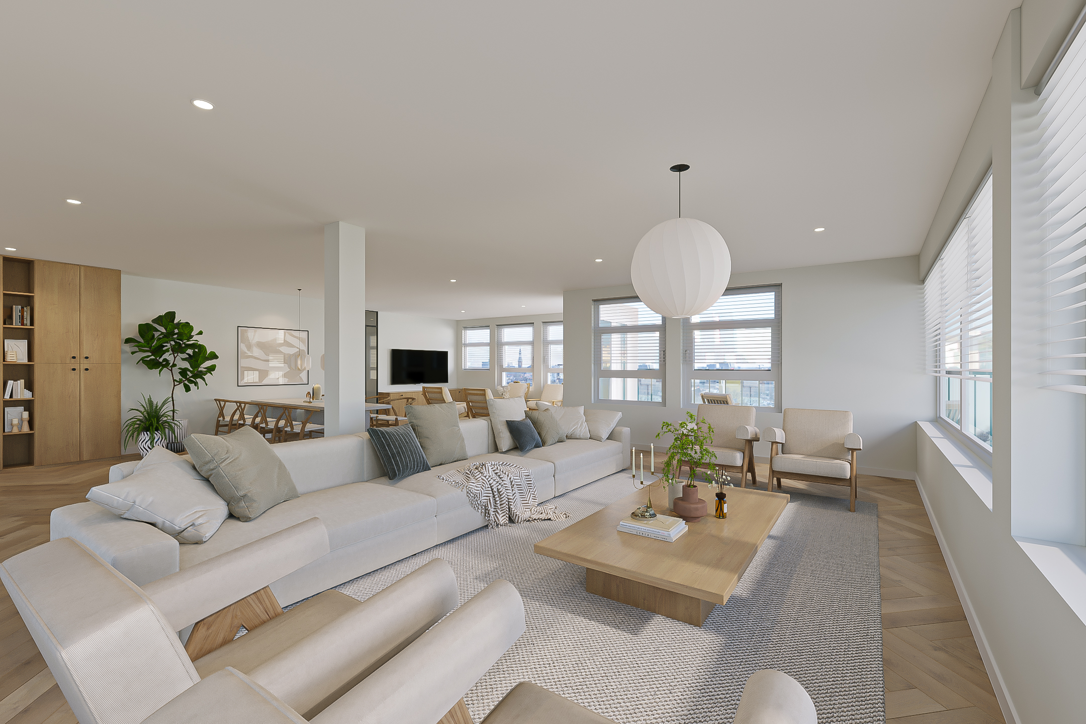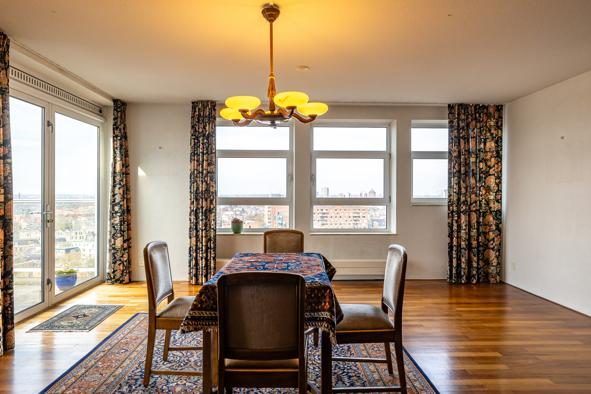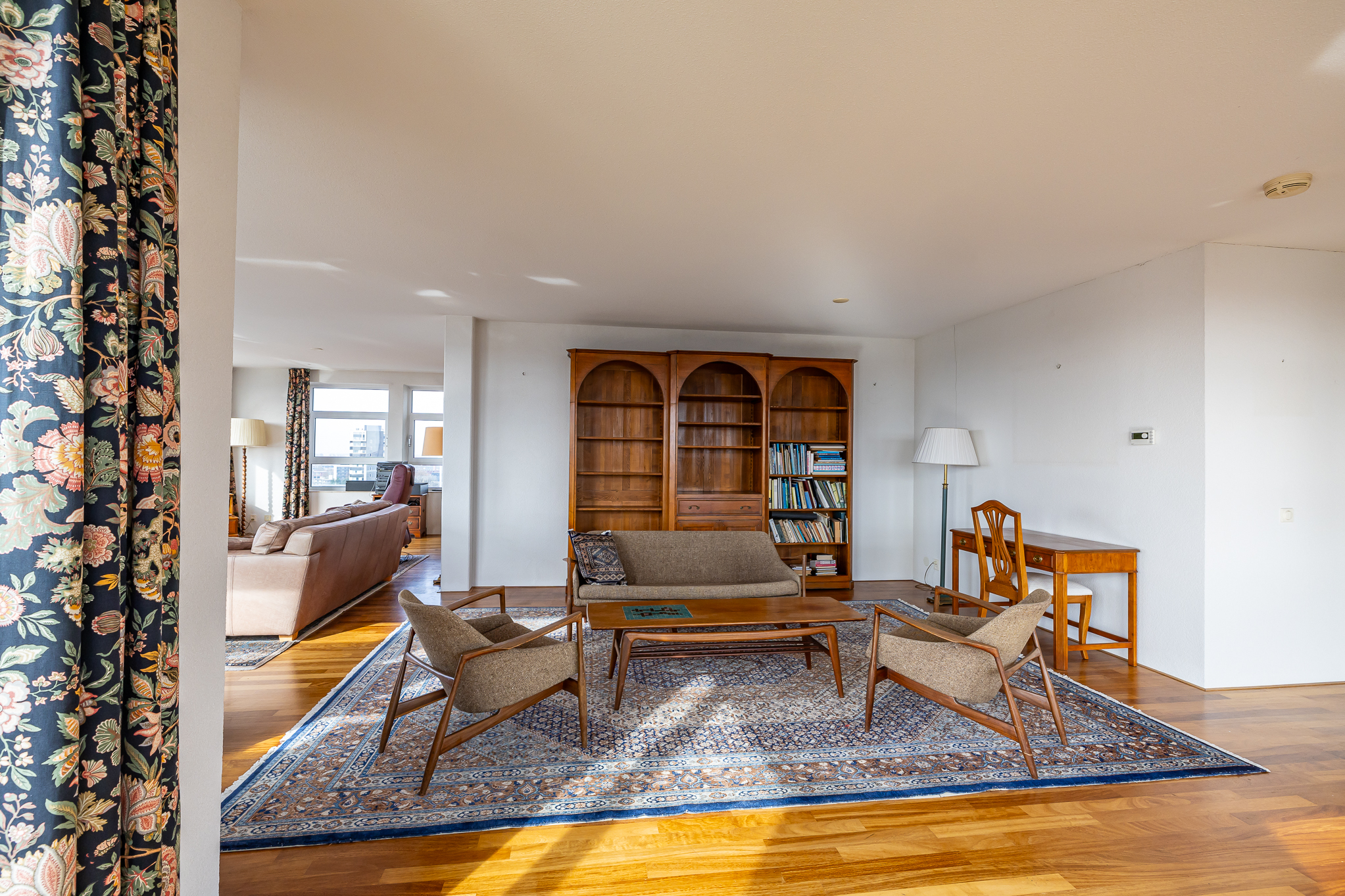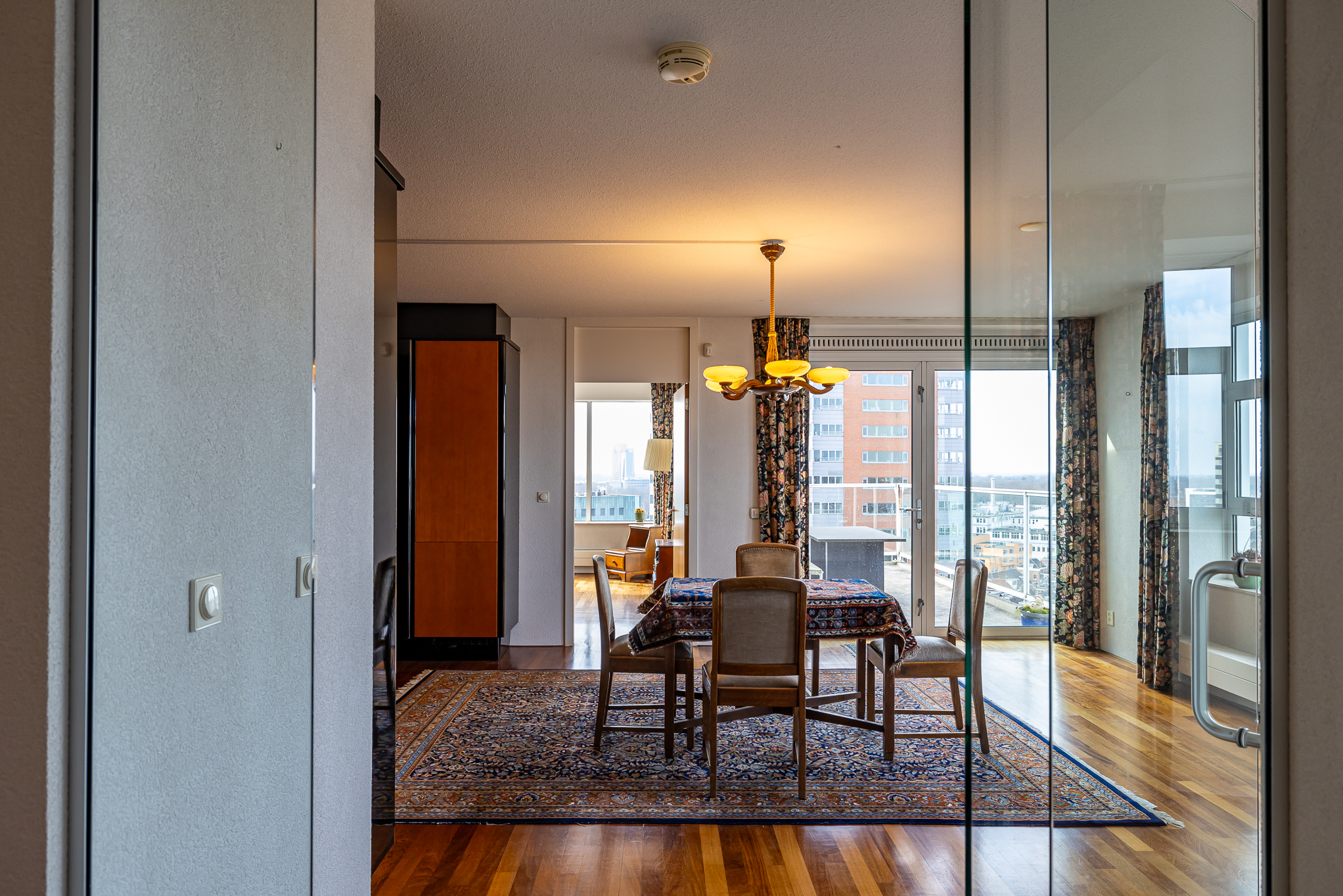 Door de samenvoeging van twee penthouses heeft de woning maar liefst een woonoppervlakte van 263 m² en is o.a. voorzien een zeer ruime woonkamer en woonkeuken, vier slaapkamers, twee badkamers met stoomcabine, jacuzzi en sauna, twee separate toiletten en twee dakterrassen. Vanaf alle vertrekken in de woning en het balkon rondom de woning strekt zich een adembenemend uitzicht over de hele stad uit.