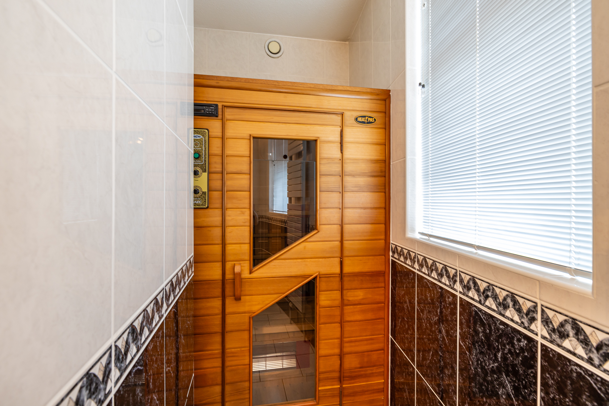 - twee badkamers, whirlpool, sauna en stoomcabine aanwezig;