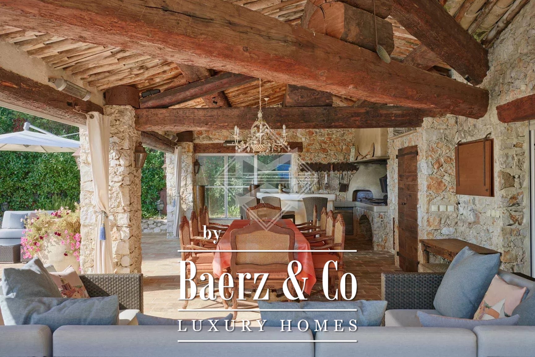 Located on the heights of La Colle-sur-Loup, just a few minutes from the famous village of Saint-Paul-de-Vence, this property enjoys a privileged setting, both peaceful and private, with a magnificent panoramic sea view. Built in cut stone and designed by the renowned architect Louis Sorridente, it offers more than 700 sqm of living space.
