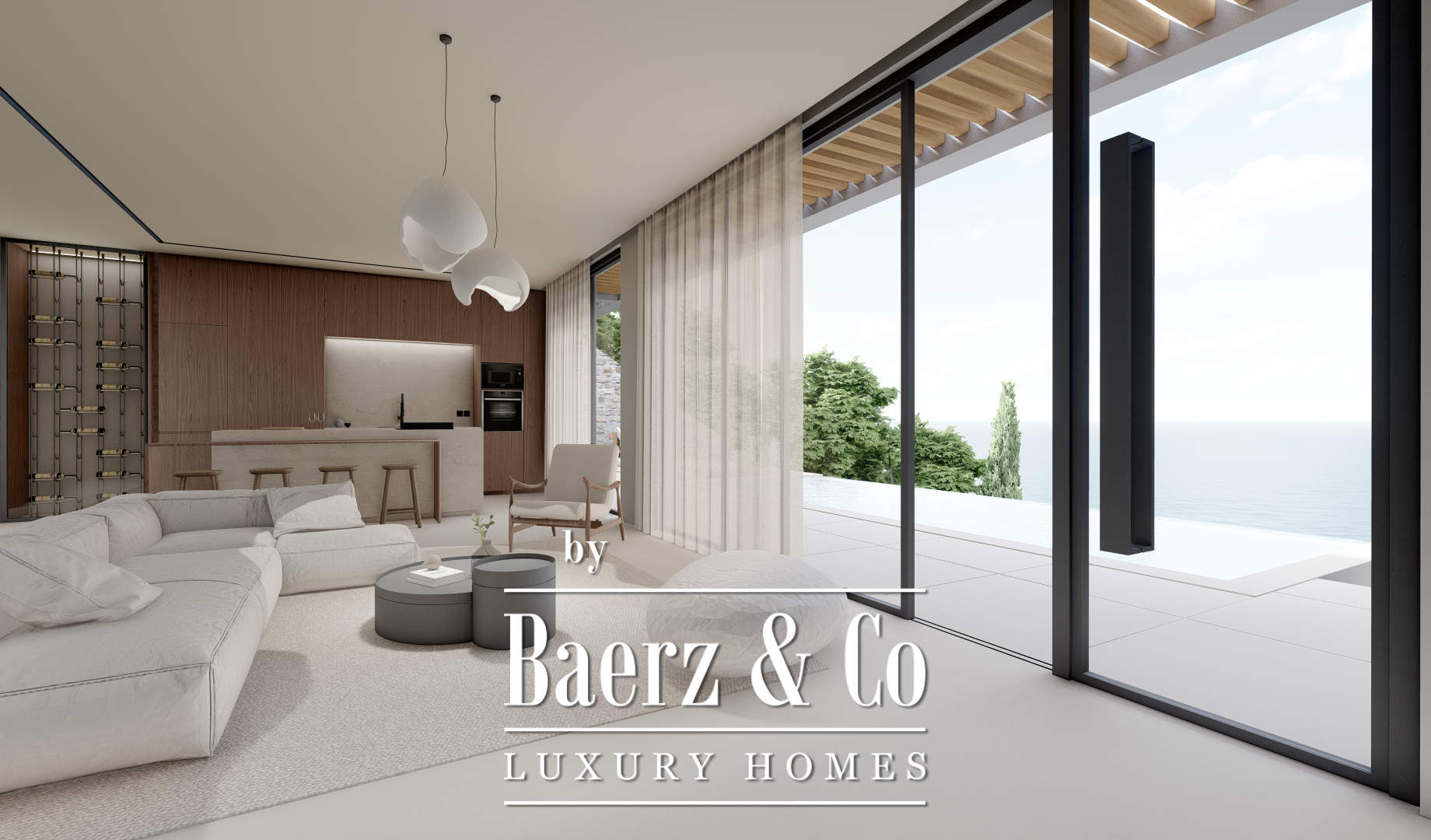 Gelegen op een perceel van 1.000 m², biedt de villa een totale woonoppervlakte van 180 m². Elke van de drie slaapkamers beschikt over een eigen badkamer en een inloopkast, wat privacy en comfort in balans brengt. Riante glaspartijen halen het zeezicht naar binnen in de open leefruimte, aangevuld met een slimme, volledig uitgeruste keuken en een aparte wijnkelder. Buiten wonen krijgt vorm naast een infinity zoutwaterzwembad, jacuzzi en een stenen terras met buitenhaard, allemaal op het Ionische uitzicht georiënteerd. Mediterrane beplanting en sfeervolle verlichting creëren rustige avonden, terwijl een buitendouche het zomerse gemak versterkt.