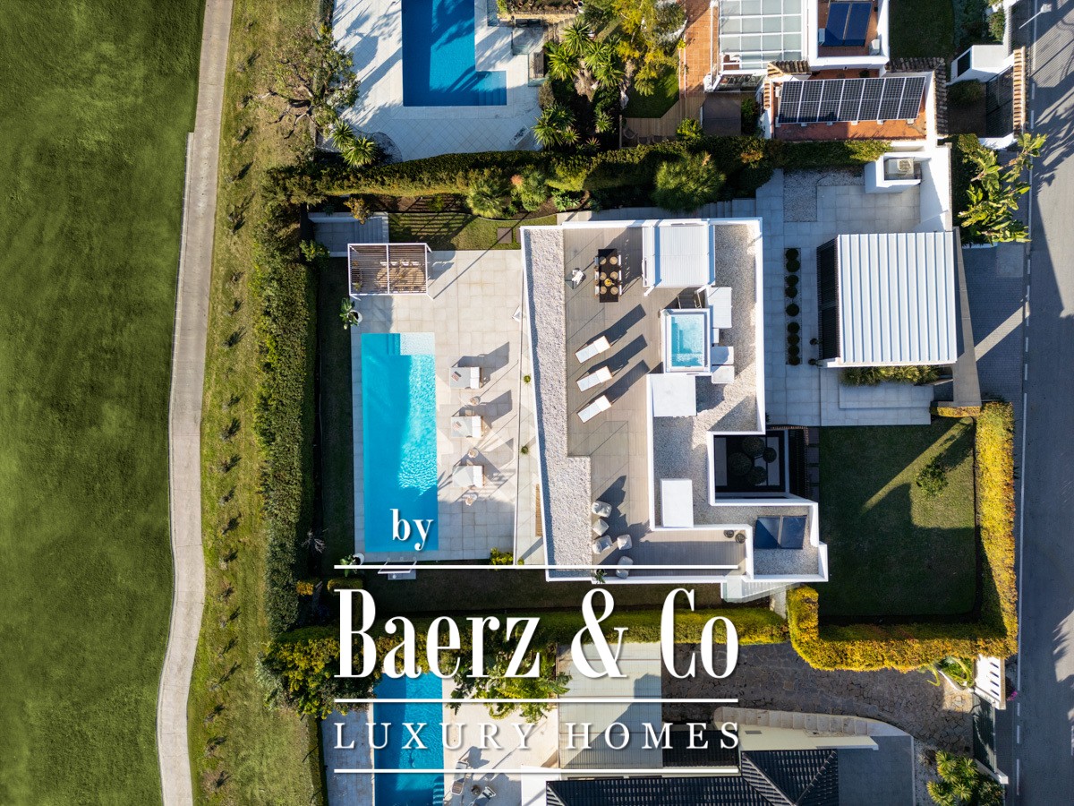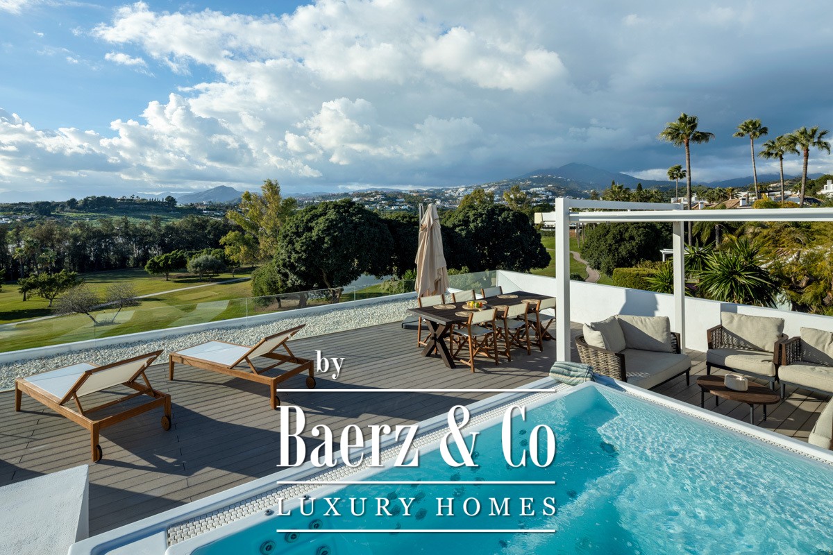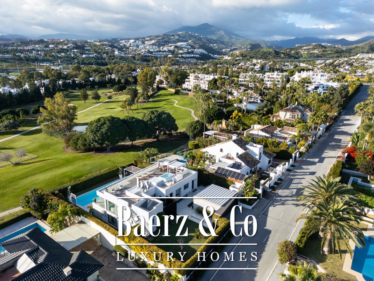 Welcome to a modern frontline golf villa located in the heart of Nueva Andalucía. This stunning property seamlessly combines contemporary design with luxurious comfort, offering an unparalleled living experience. The villa features expansive terraces, thoughtfully designed for entertaining, and a private outdoor pool that invites relaxation under the Mediterranean sun. With a private driveway adding convenience, this villa is perfectly positioned to enjoy breath-taking golf and mountain views from every angle.