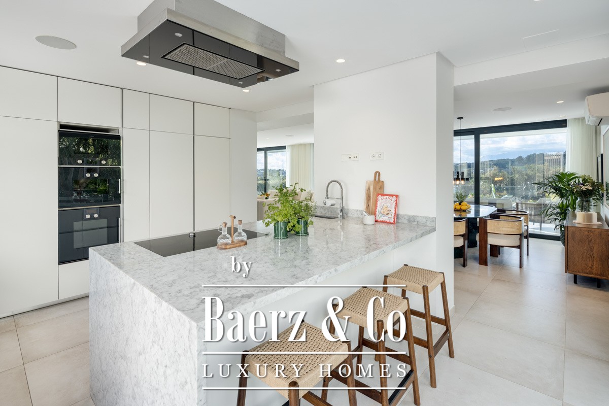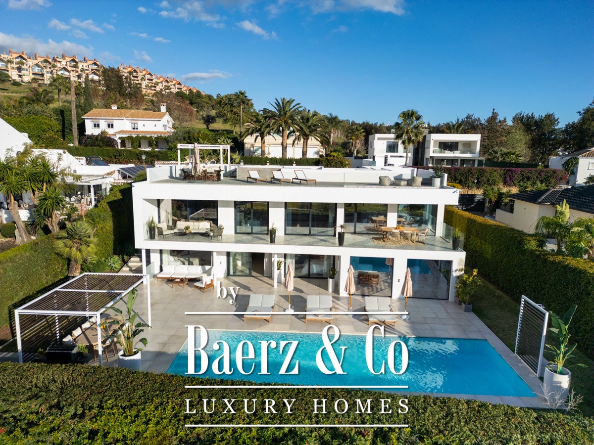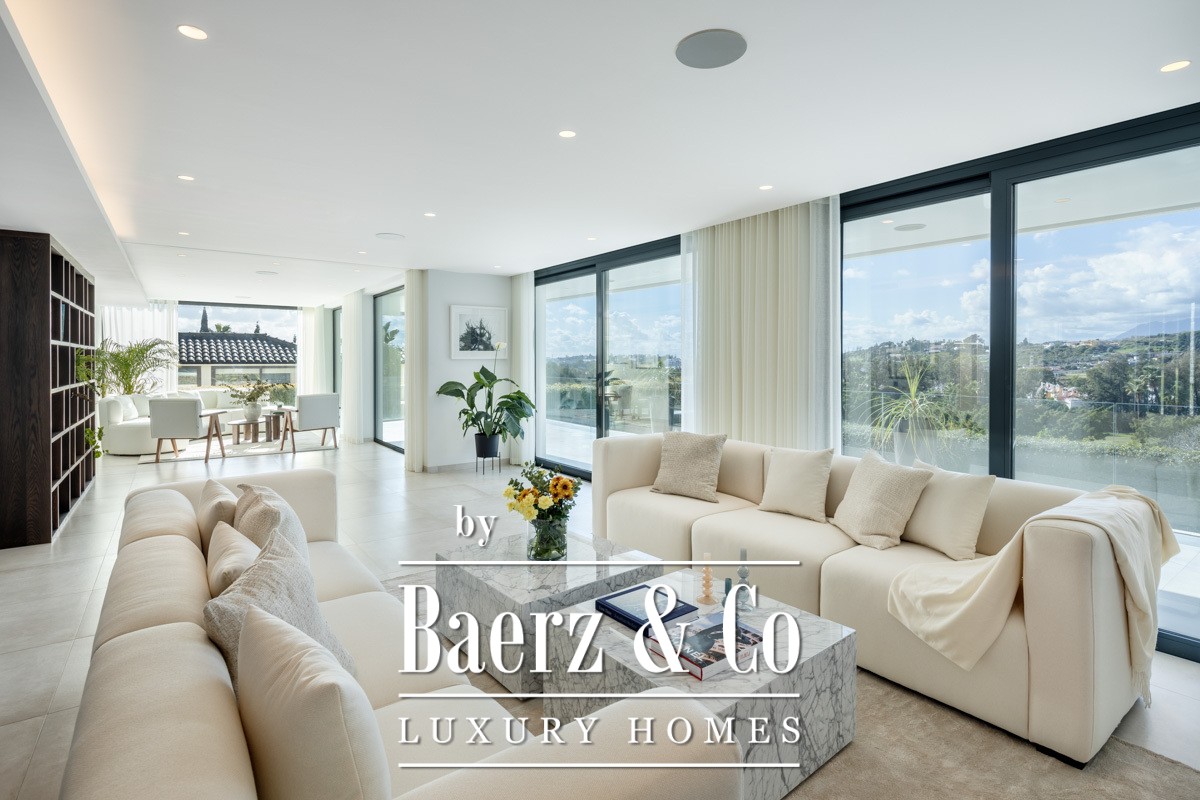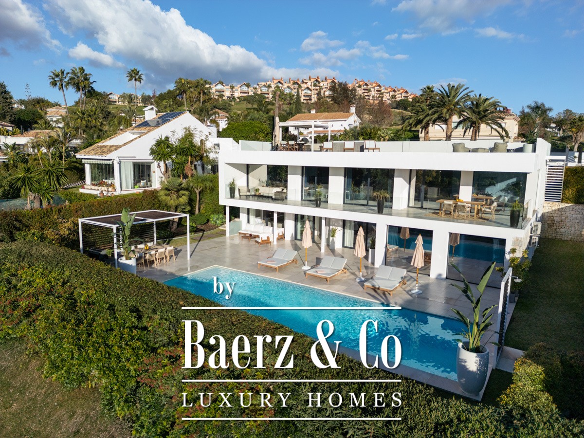 Welcome to a modern frontline golf villa located in the heart of Nueva Andalucía. This stunning property seamlessly combines contemporary design with luxurious comfort, offering an unparalleled living experience. The villa features expansive terraces, thoughtfully designed for entertaining, and a private outdoor pool that invites relaxation under the Mediterranean sun. With a private driveway adding convenience, this villa is perfectly positioned to enjoy breath-taking golf and mountain views from every angle.