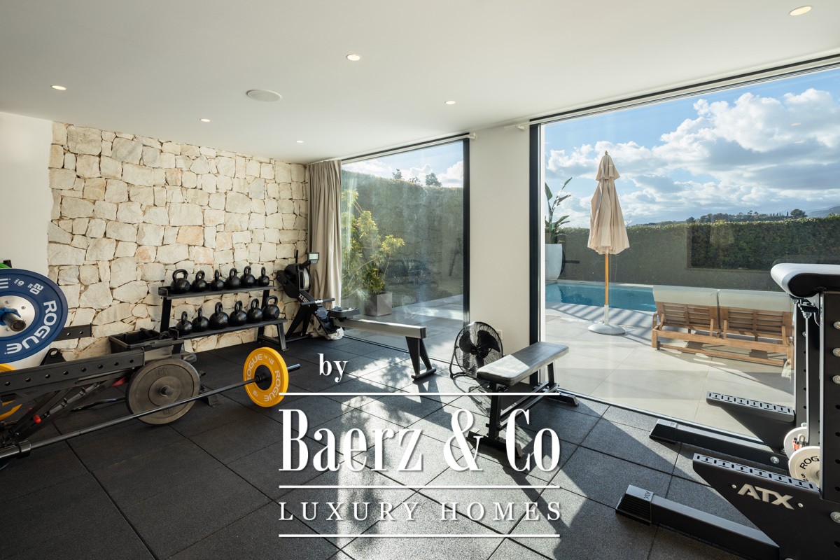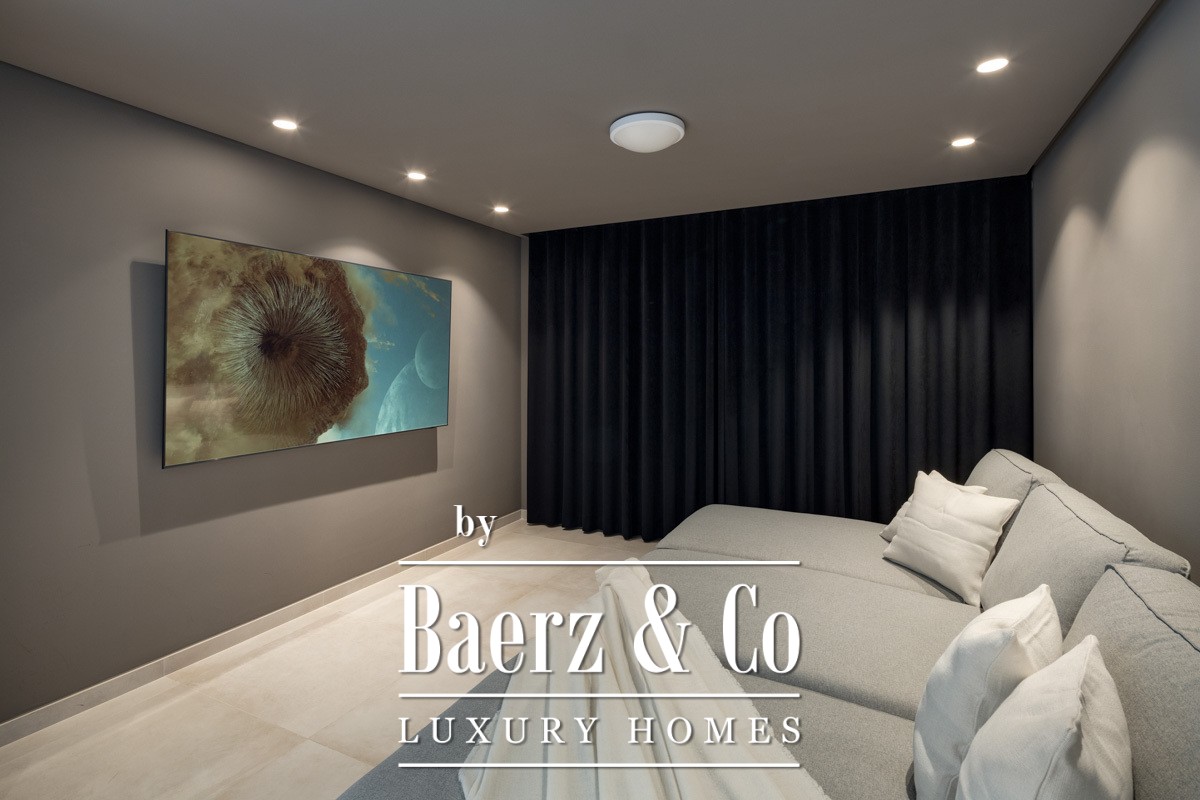 Step inside to discover a bright and airy open-plan living area, perfectly complemented by a sleek modern kitchen. The master bedroom is a true sanctuary, boasting direct access to a terrace and a grandiose master bathroom that exudes elegance and natural charm. Every detail of this home has been meticulously crafted to provide a harmonious blend of style and function. Additional amenities include a state-of-the-art home gym, a private home cinema for ultimate entertainment, and an incredible solarium with a jacuzzi, offering panoramic views and a space to unwind in style.