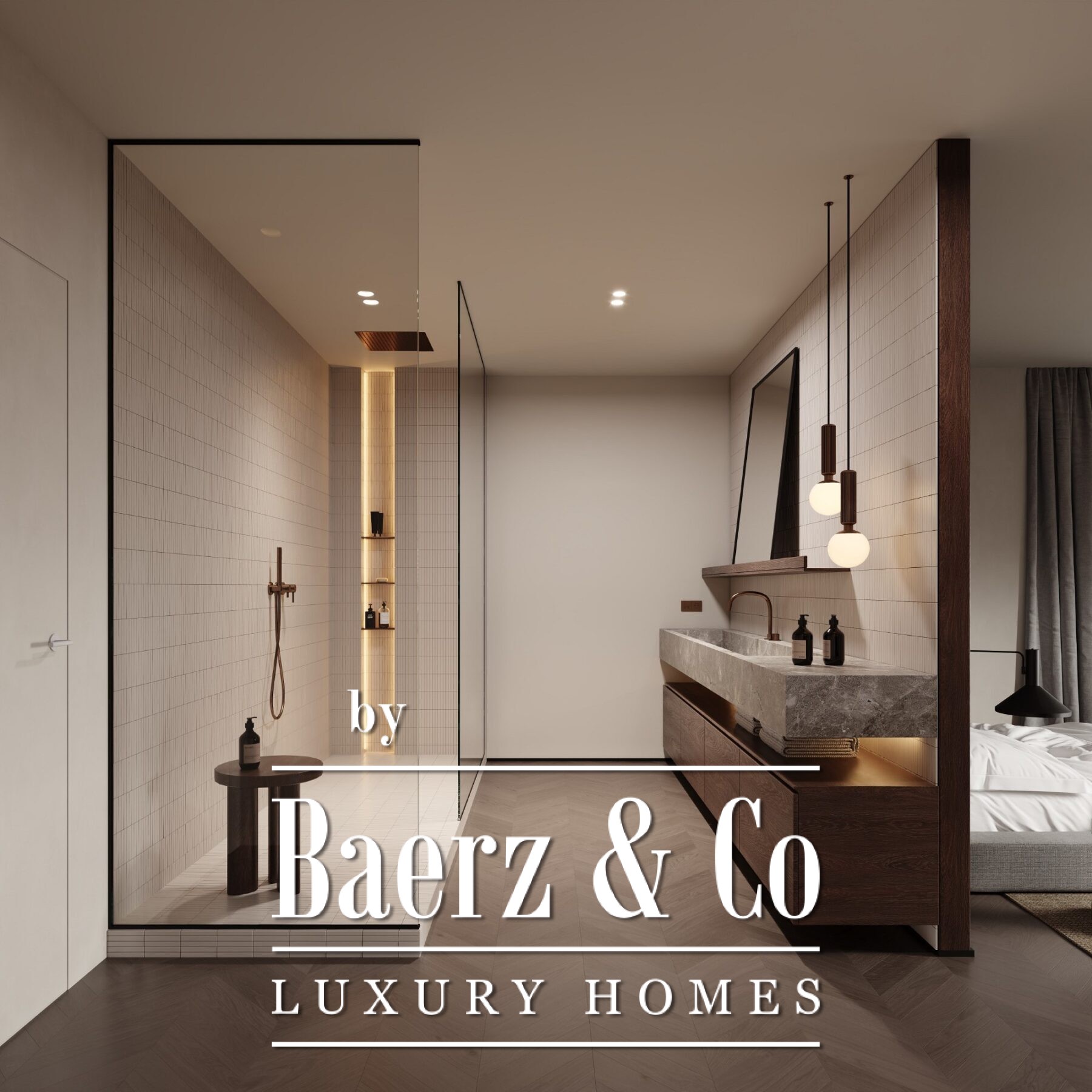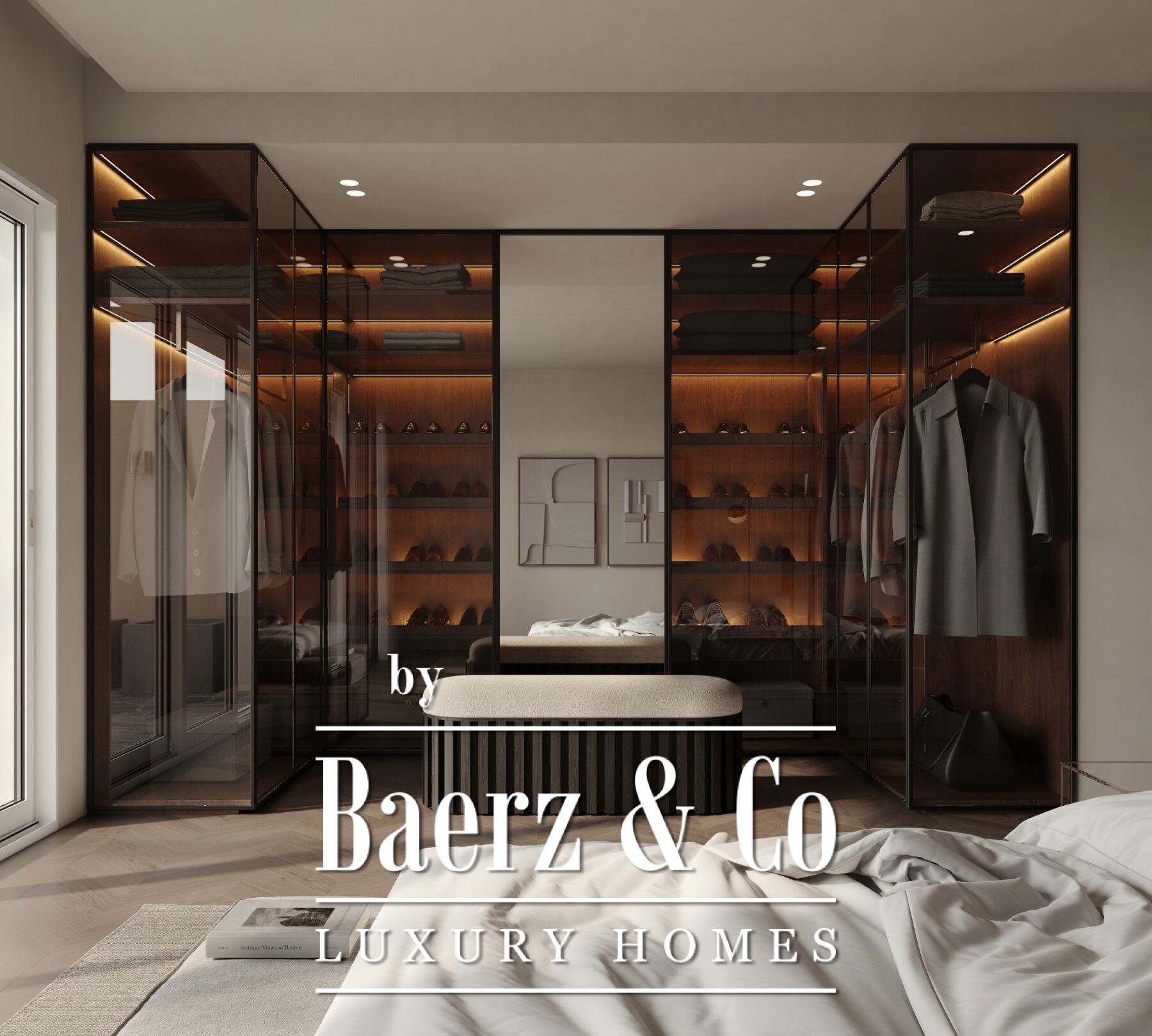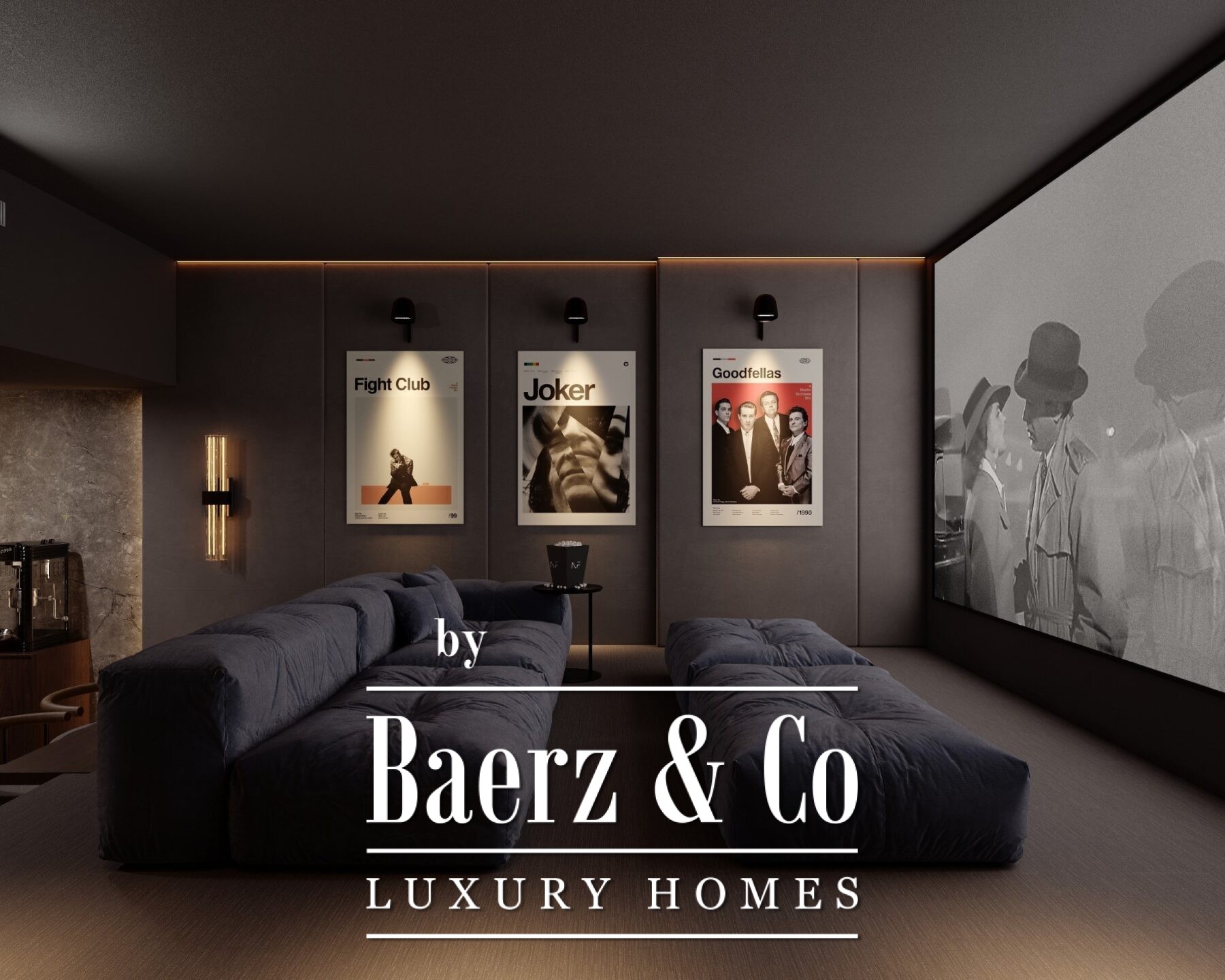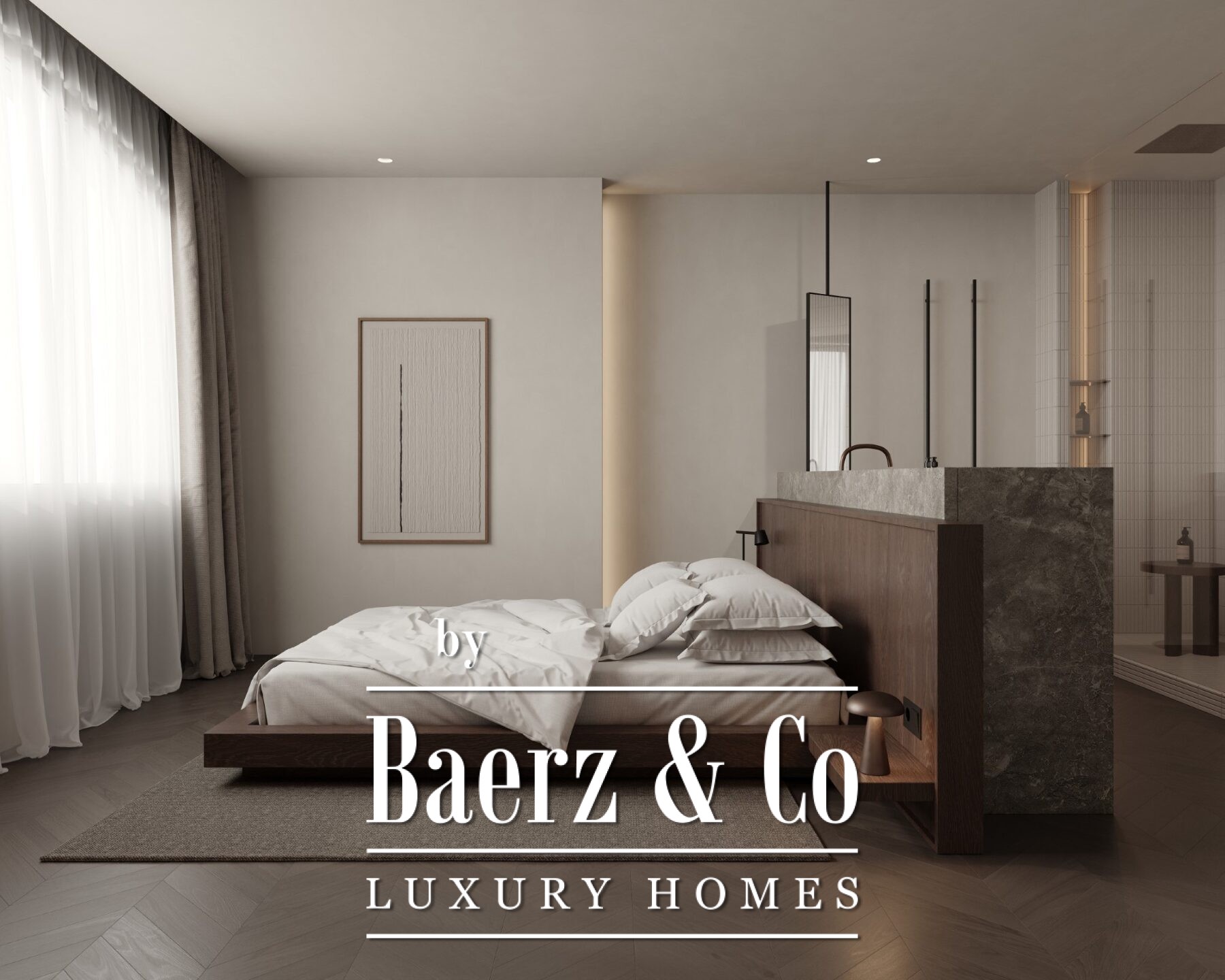 Vier slaapkamers, elk met en suite badkamer en royale inloopkast, bieden privacy en comfort. De doordacht ontworpen leefruimtes omvatten een buitenkeuken met barbecue, een jacuzzi met uitzicht, en een verborgen bioscoopruimte. Een aparte thuiswerkplek verbindt werk met ontspanning. Elk detail, van klimaatbeheersing tot vloerverwarming, is geïntegreerd voor maximaal comfort.