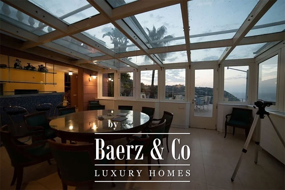 De eerste etage biedt acht slaapkamers en zes badkamers. De master suite beschikt over een werkkamer, een inloopkast, een ruime ensuite badkamer met jacuzzi en privétoegang tot het terras. De villa ligt op een perceel van 2.000 m² en combineert privacy met moeiteloos gastheerschap. Dit object biedt een uniek perspectief voor wie waarde hecht aan het mediterrane licht en de kustelijke rust.