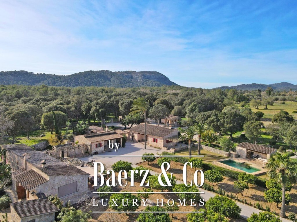 Landgoed te koop in Pollença, een uitzonderlijk toevluchtsoord op 172.483 m² rustiek Mallorquijns landschap, waar volledige privacy en weidse bergzichten samenkomen. Het hoofdgebouw beslaat 1.307 m² en omvat drie zelfstandige bungalows, verbonden door veranda’s, terrassen en aangelegde tuinen. Deze gastenverblijven, zo’n twintig jaar geleden gebouwd, zijn zorgvuldig onderhouden en harmonieus gekoppeld door uitnodigende buitenruimtes.
