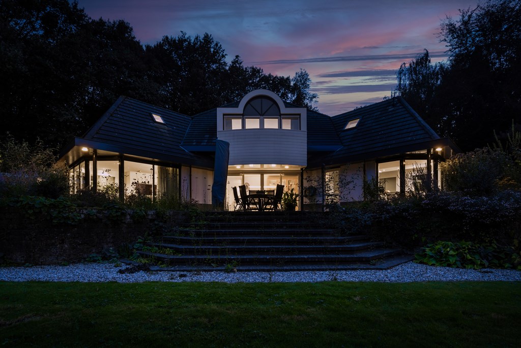 U komt binnen in een ruime, lichte hal die toegang geeft tot de woonkamer, een werkkamer, toiletruimte, meterkast (21 groepen + glasvezel) en de trapopgang. De werkkamer is ideaal en perfect bereikbaar om bijvoorbeeld klanten te ontvangen. De royale woonkamer heeft een bijzondere indeling, waardoor u gemakkelijk verschillende zithoeken kunt creëren. De grote ramen rondom bieden een prachtig uitzicht op de tuin en zorgen voor veel licht. Een sfeervolle gashaard voegt extra warmte toe. Via een dubbele schuifpui loopt u zo de zonnige achtertuin in. Aan de zonnige kant zorgen screens voor extra comfort. De ruime keuken met een eigen deur naar de tuin is ideaal voor het bereiden van maaltijden. Aangrenzend aan de keuken vindt u een bijkeuken met een aanrecht voorzien van spoelbak en aansluitingen voor de wasmachine en droger. De gehele benedenverdieping is voorzien van een natuurstenen vloer met vloerverwarming. In de woonkamer bevindt zich ook een airco.