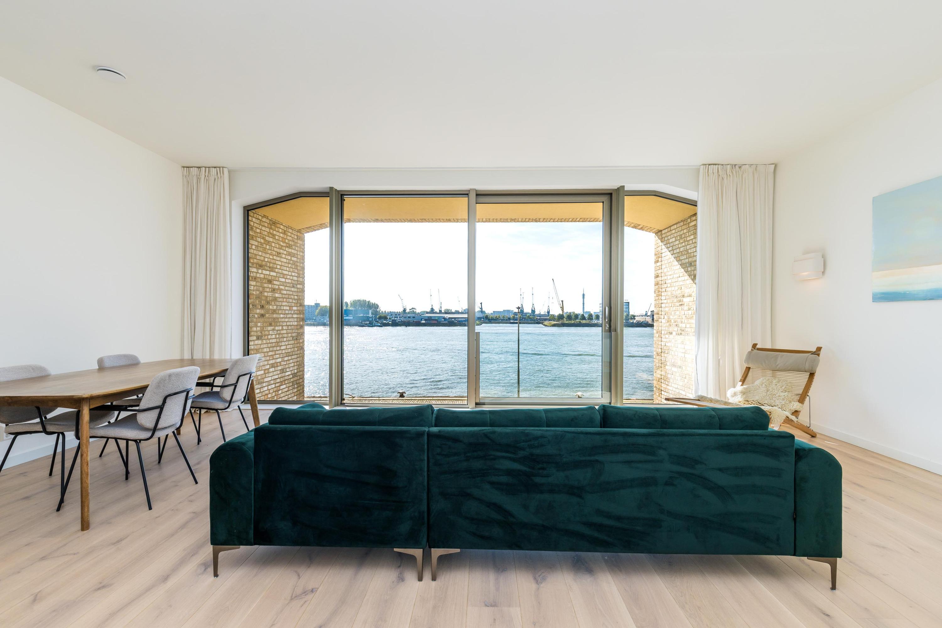 Elke dag een levend schilderij voor uw raam: dit royale en stijlvol afgewerkte appartement aan de Lloydkade biedt luxe, ruimte en een panoramisch uitzicht over de Maas. van zonsopkomst tot zonsondergang.