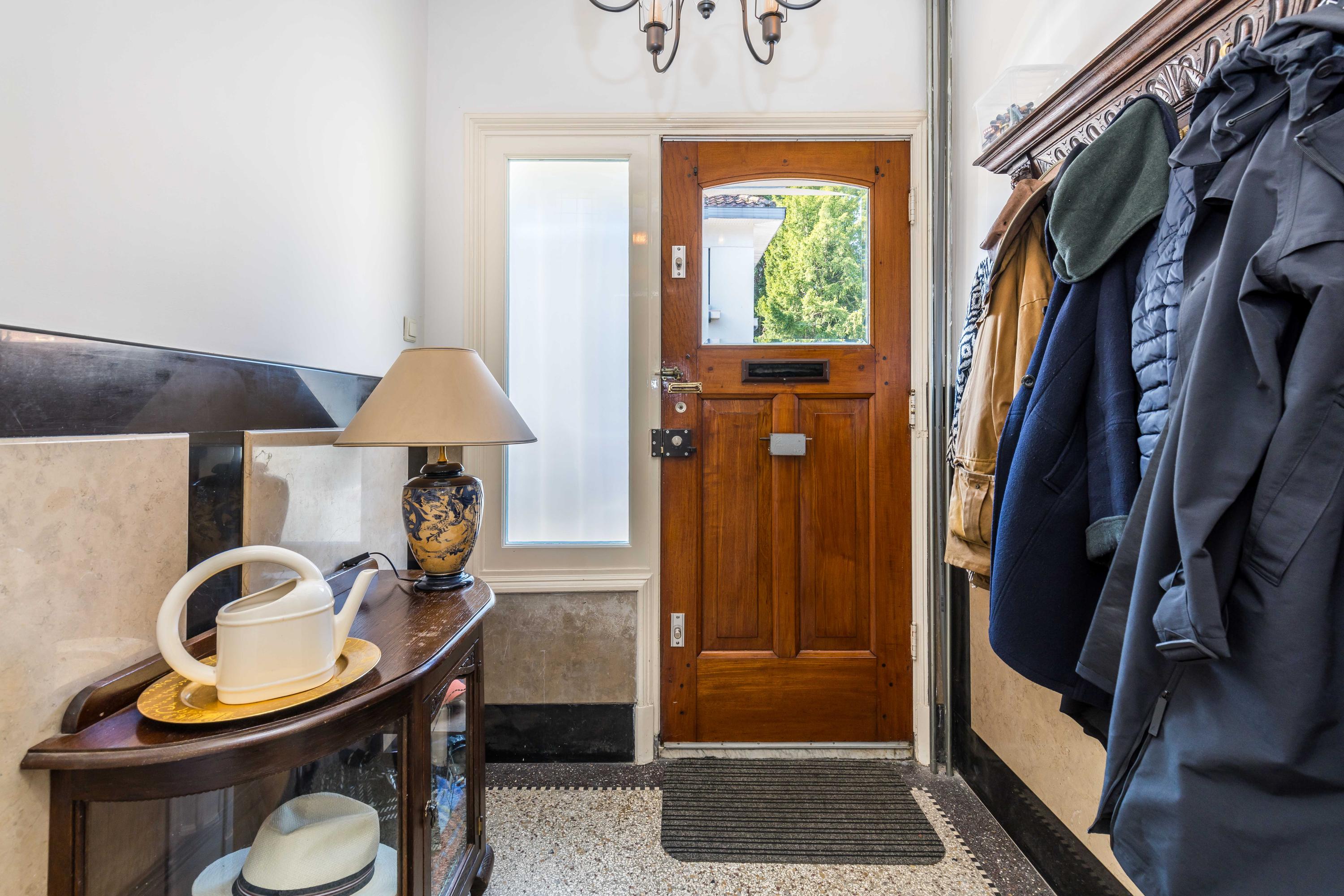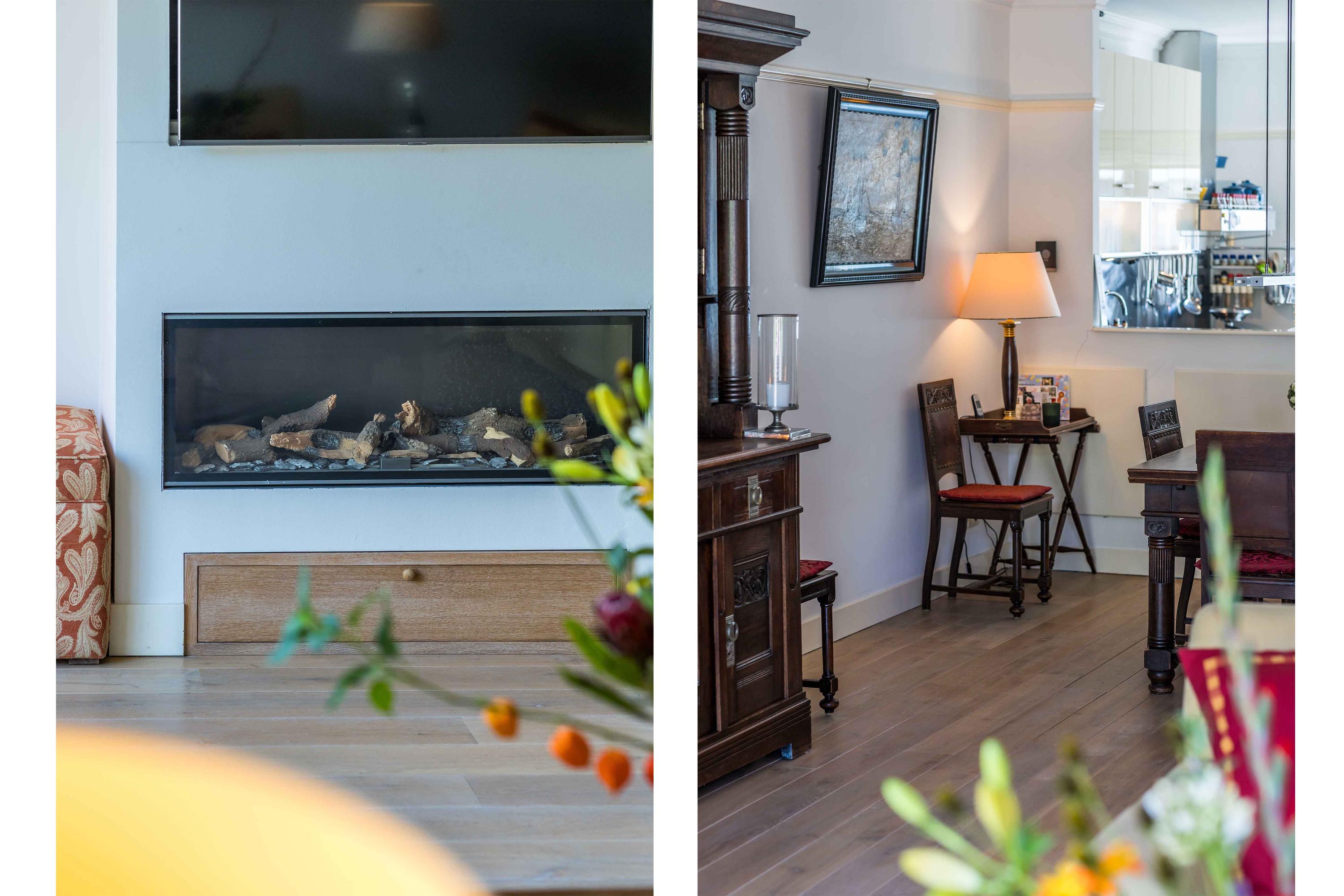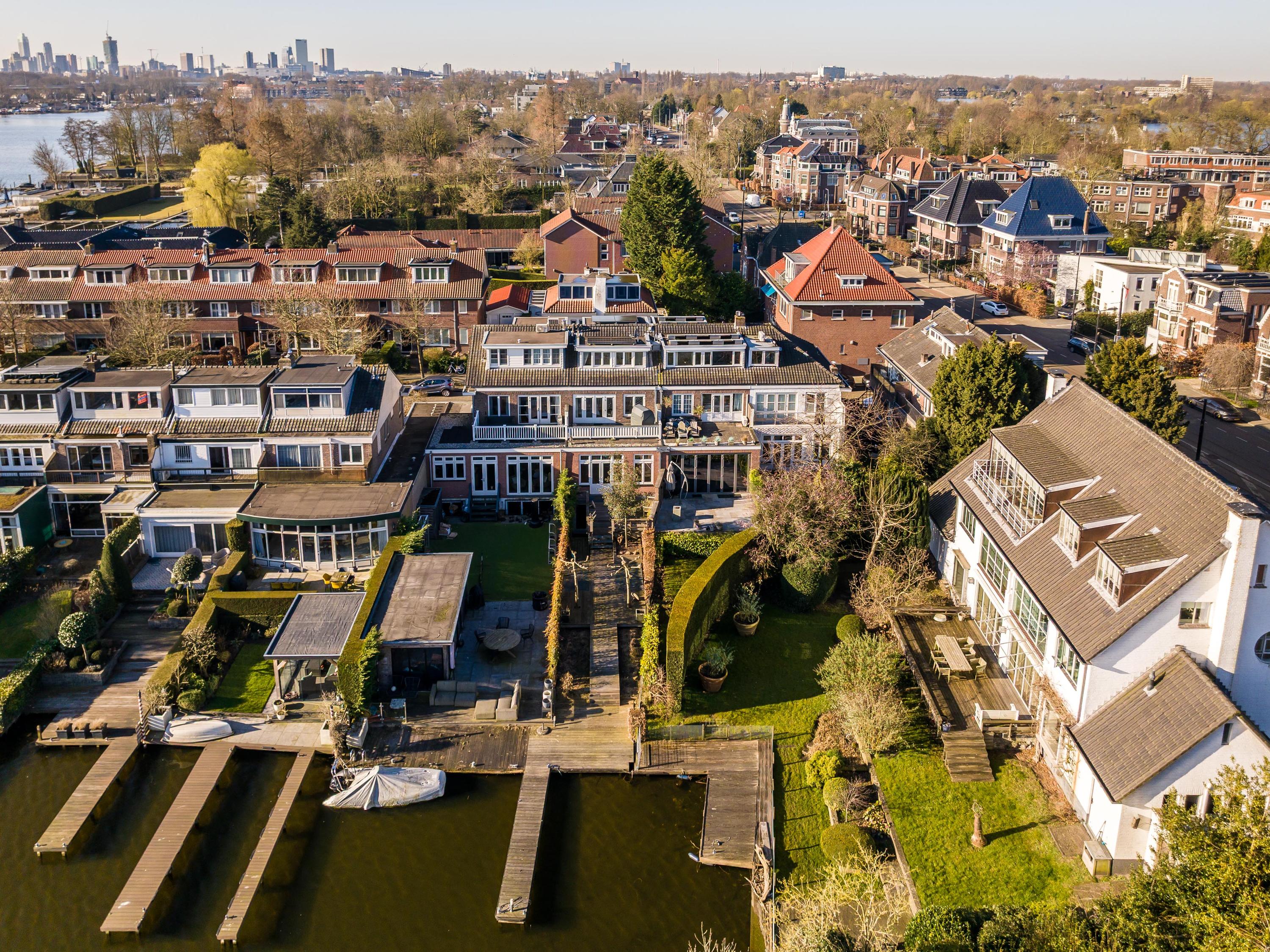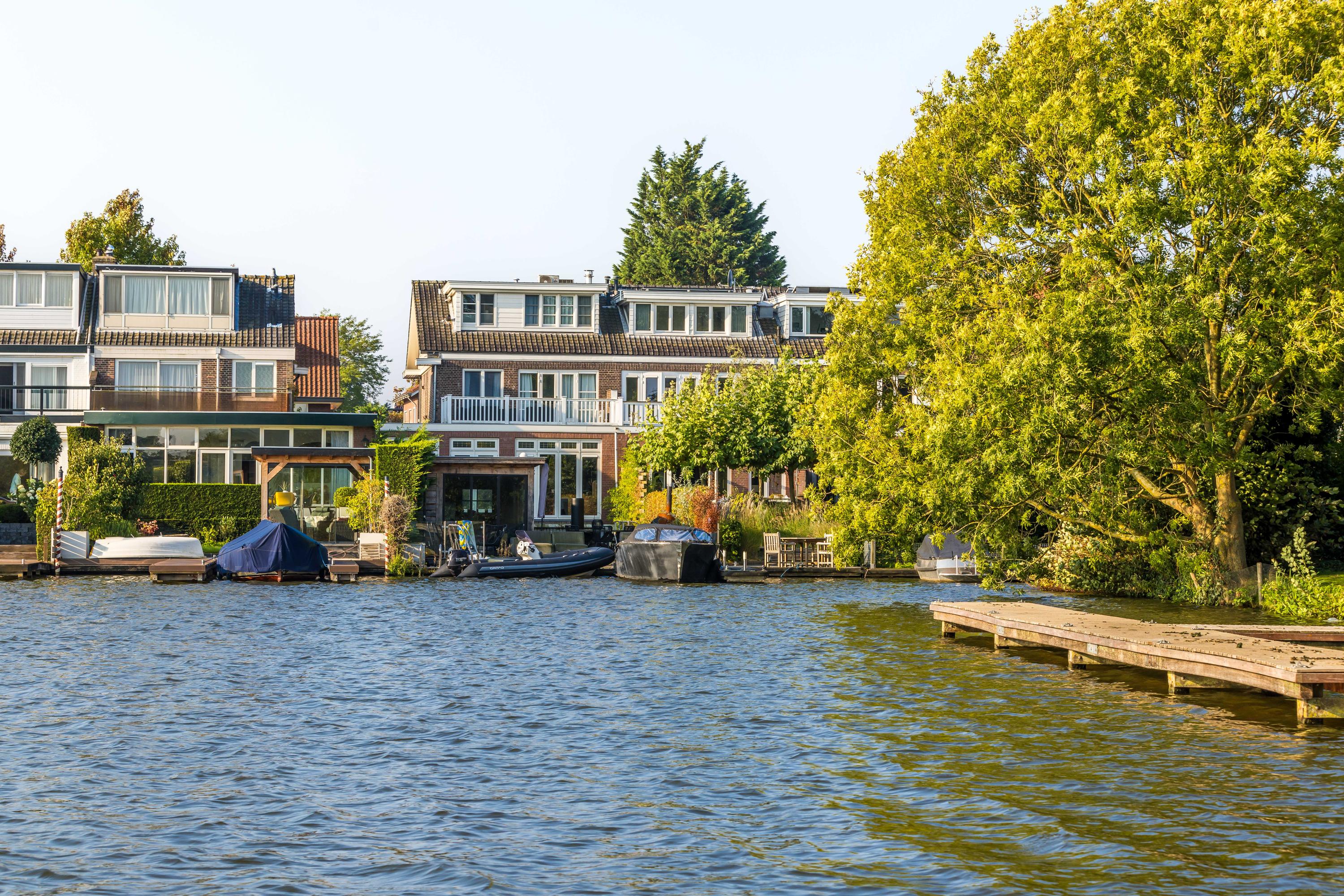 begane grond: entree, vestibule met originele marmeren lambrisering, granitovloer en glas-in-lood-raampjes en tochtdeur, hal met trapopgang, extra ruime toiletruimte met WC en fonteintje, dubbele deuren naar de living en woonkeuken, oorspronkelijk zat de keuken aan de achterzijde, maar thans bevindt de open keuken zich aan de voorzijde, waardoor de uitgebouwde woonkamer een breedte van bijna 6 meter heeft over de gehele breedte van het huis, de woonkamer is voorzien van een goed gepositioneerde gashaard waar je lekker omheen kunt zitten. Middels 2 Sola-tubes komt er verrassend veel extra daglicht in de woonkamer. Vanuit de zitkamer geven openslaande deuren toegang tot het onderheide terras en de achtertuin (eveneens grotendeels onderheid) met o.a. een terras/vlonder aan het water waar je heerlijk kunt vertoeven. aan de steiger is er plek voor 1 sloep/boot.