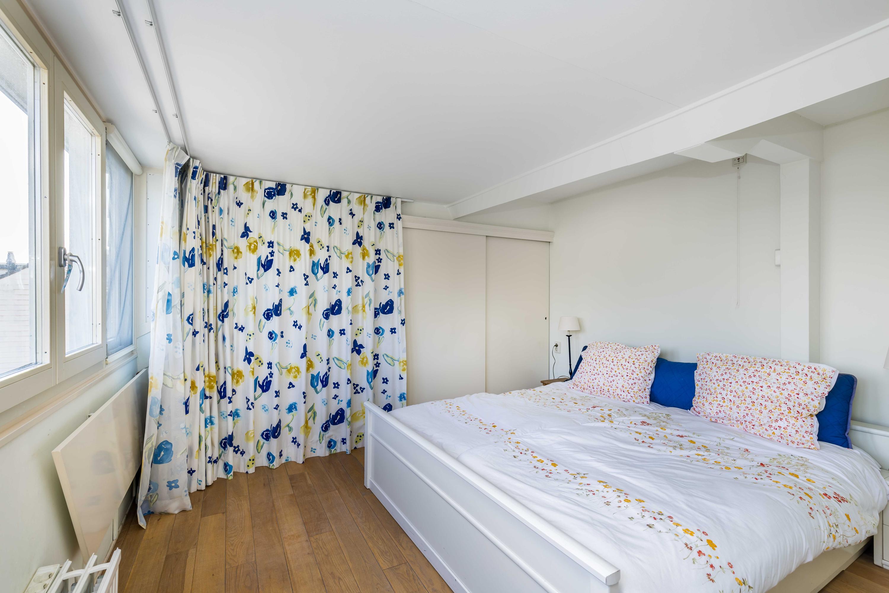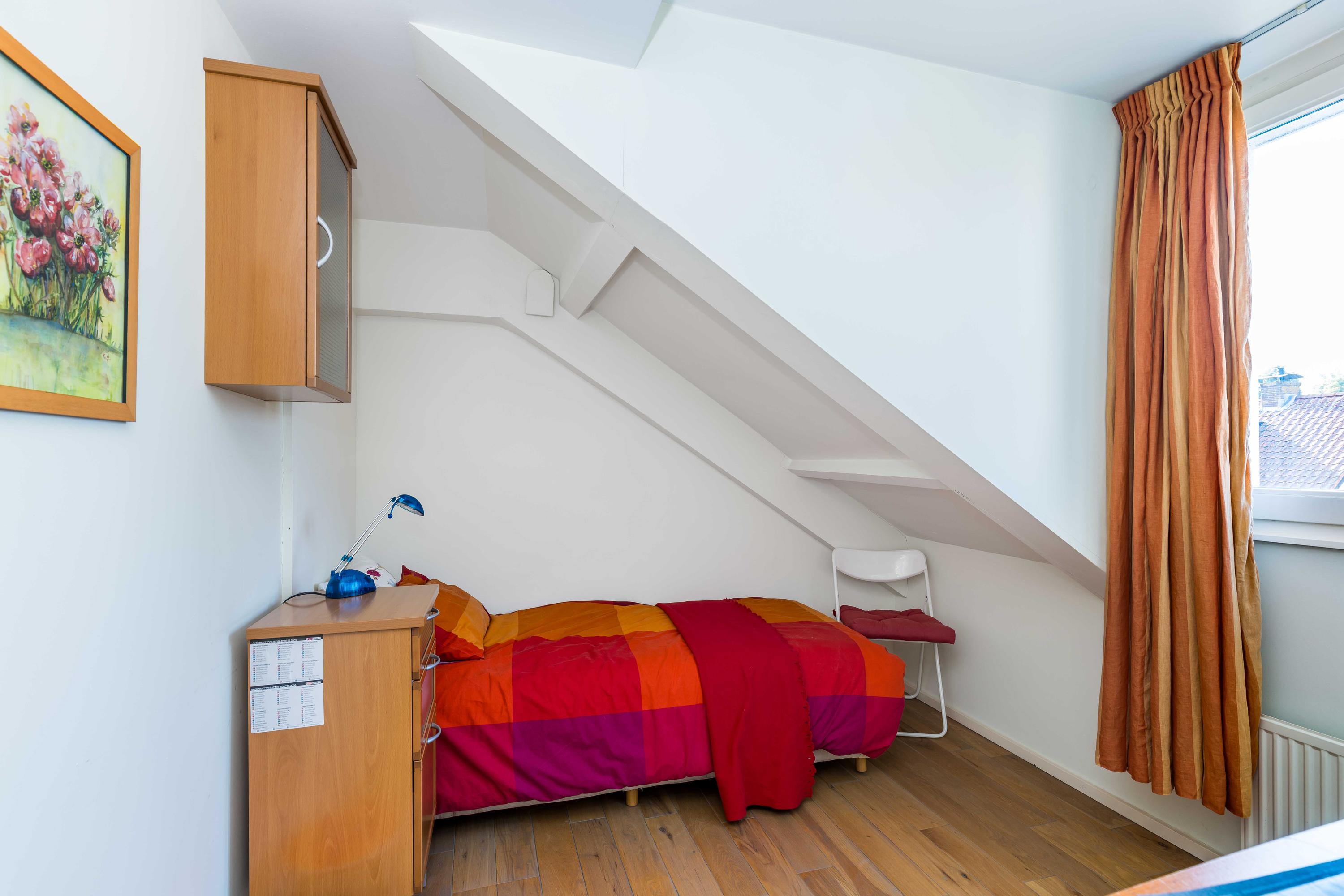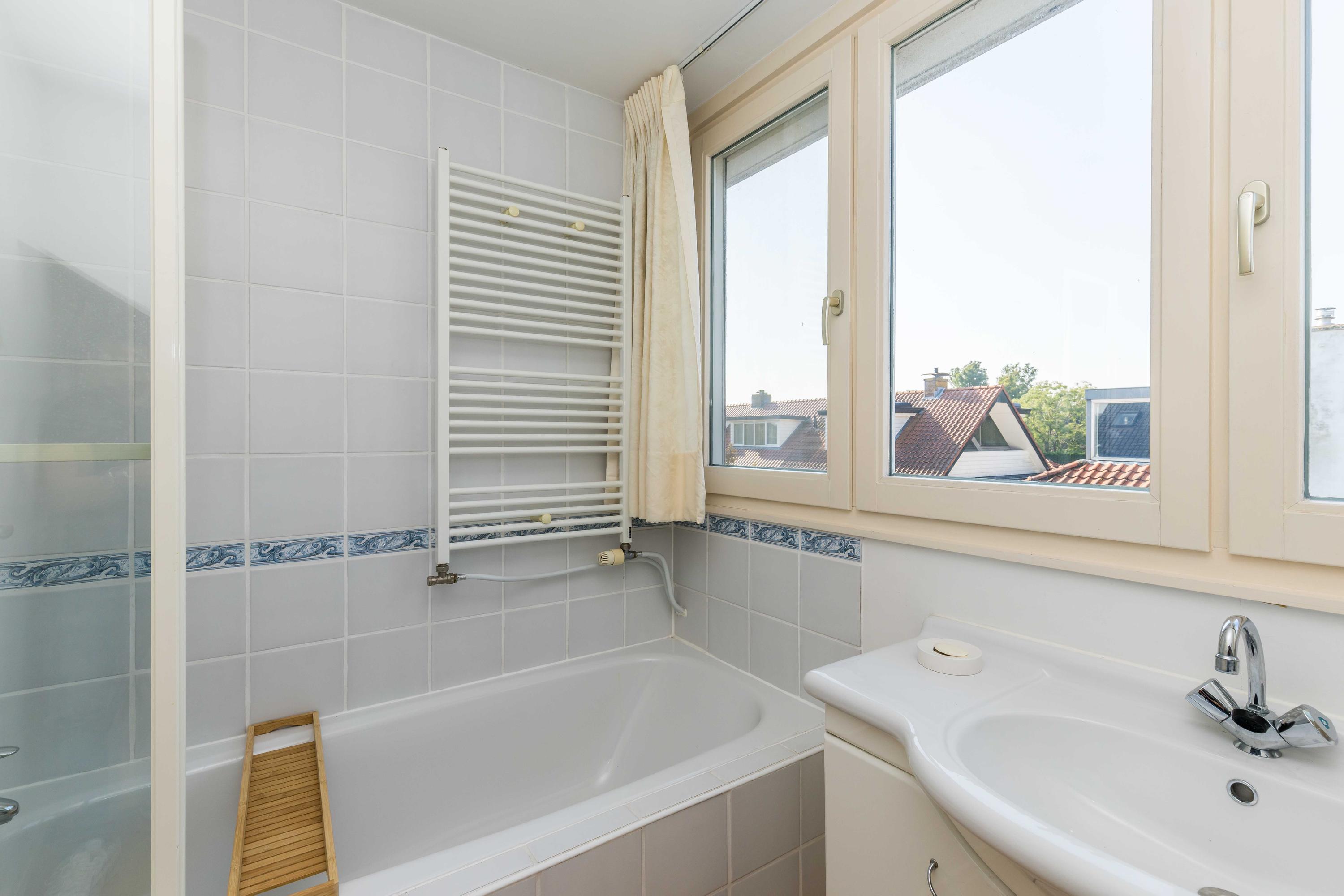 2e verdieping: overloop met eveneens een separaat toilet, slaapkamer achterzijde voorzien van dakkapel en kastenwand waar zich tevens de CV bevindt, slaapkamer voorzijde met dakkapel, 2e badkamer v.v. ligbad met douche, wastafelmeubel en plaats voor een wasmachine en droger naast elkaar.