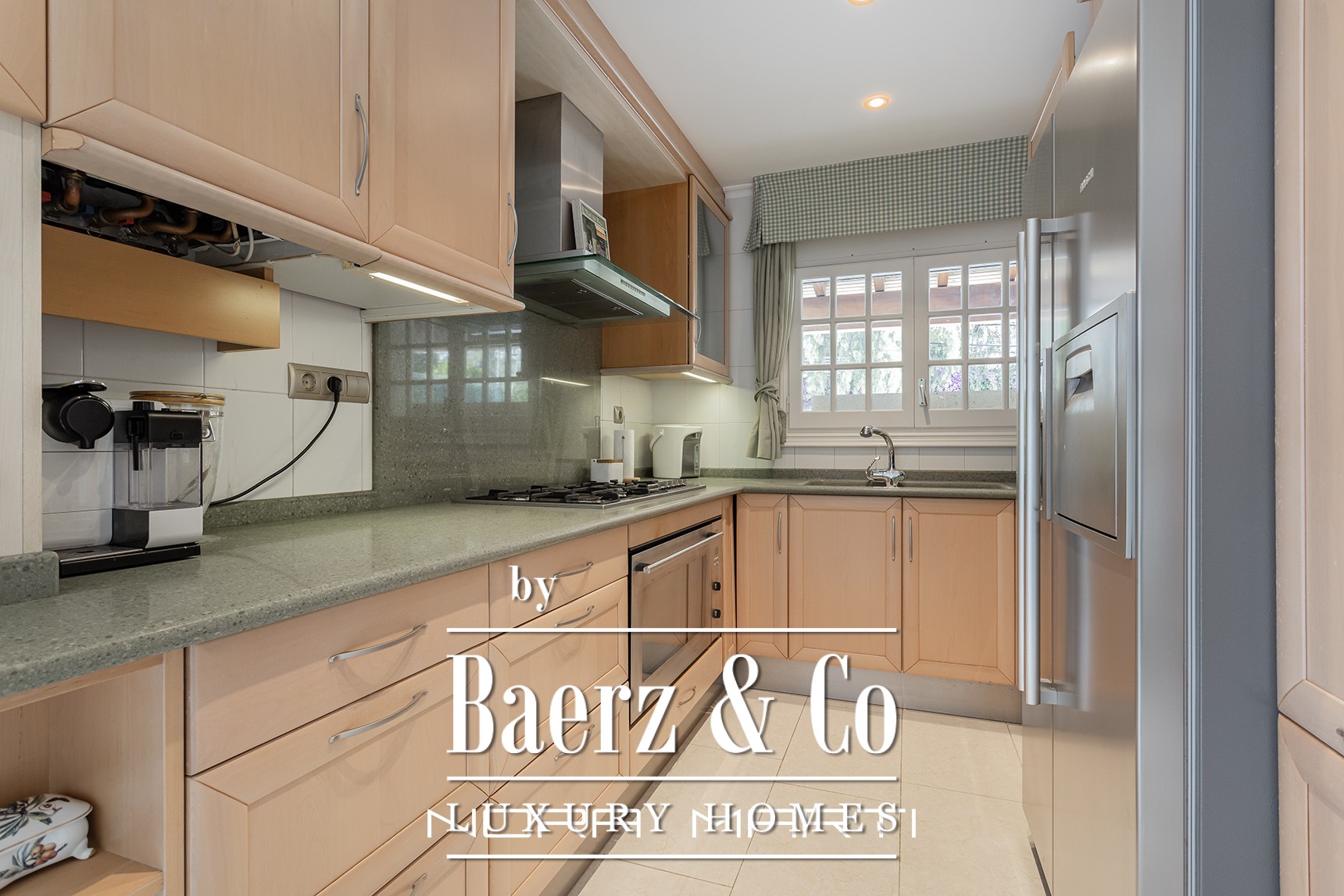 In a quiet and residential environment in Can Sans, near the Joaquim Passi park and just 10 minutes walk from the beach, we find this beautiful semi-detached house, built in 1988 with a garden and private pool. The house has a constructed area of 346 meters distributed over four floors and the garden area is 293 meters. On the first floor we have a living-dining room with access to the 40-meter covered porch and garden with barbecue and pool; independent and equipped kitchen, a single room and a bathroom with shower. Through the staircase we access the second floor where we find four bedrooms: a double bedroom with built-in wardrobes and a