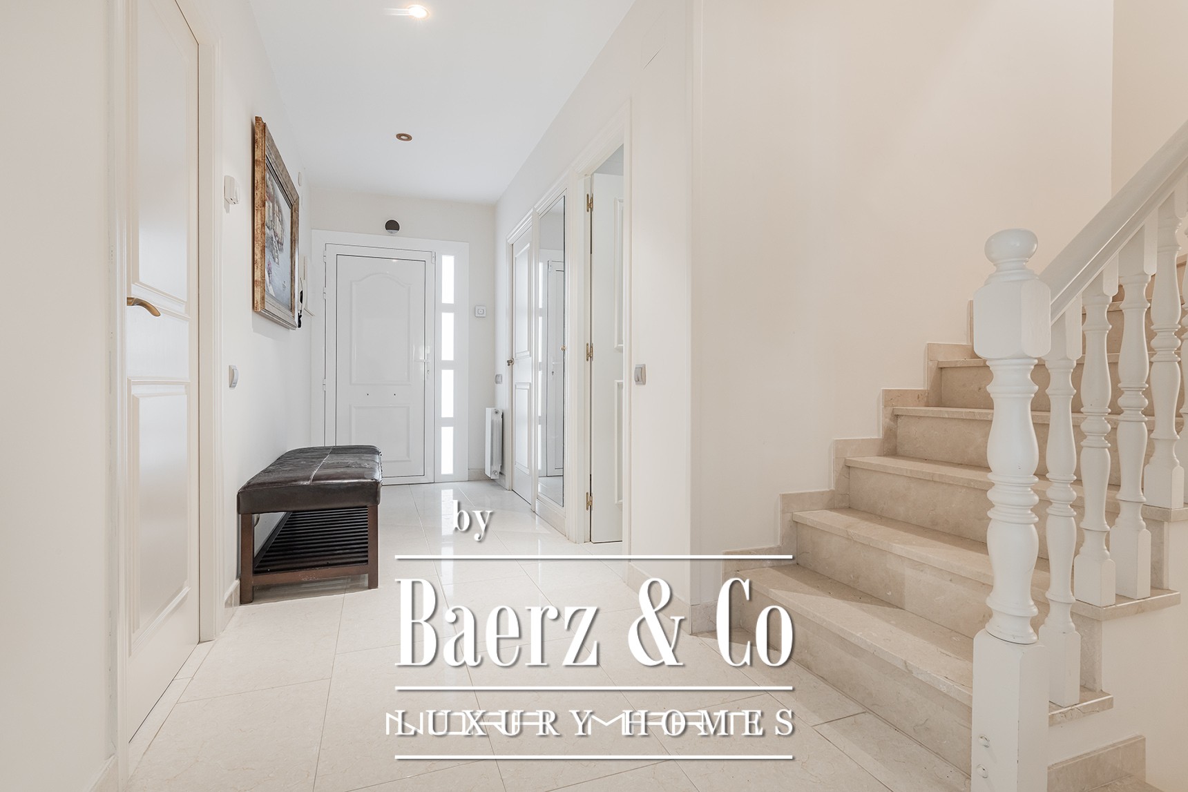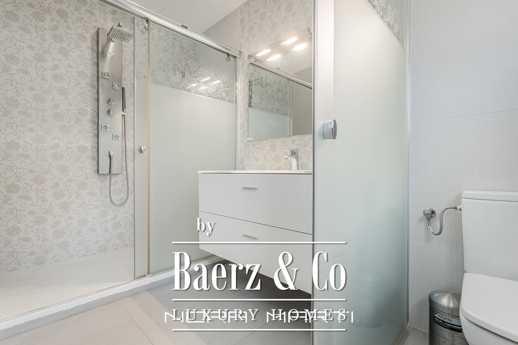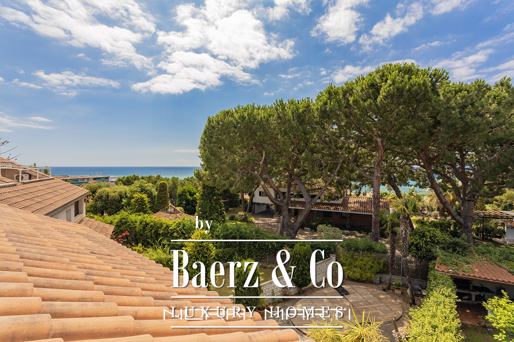 complete bathroom with a shower and unobstructed views of the sea; a double room with wardrobes, facing the street with access to the 16-meter balcony; 2 single rooms with wardrobes and views of the garden. These rooms have a large bathroom with a bathtub for use. Going up the stairs, we access the third floor where there is a double room with fireplace and a 20-meter private terrace with sea views. In the basement there is a parking area for 3 cars and a laundry room. The property is in good condition, has automatic blinds, windows with double air chamber, alarm system, Split air conditioning, radiator heating, garden with automatic irrigation.