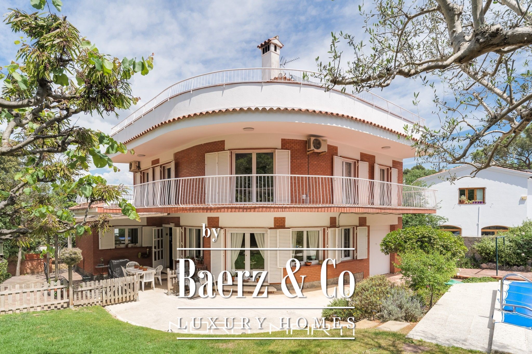 The façade has a modern sail-shaped design, which creates a cozy and bright space in the pool and garden area, ideal for sharing with friends and family.