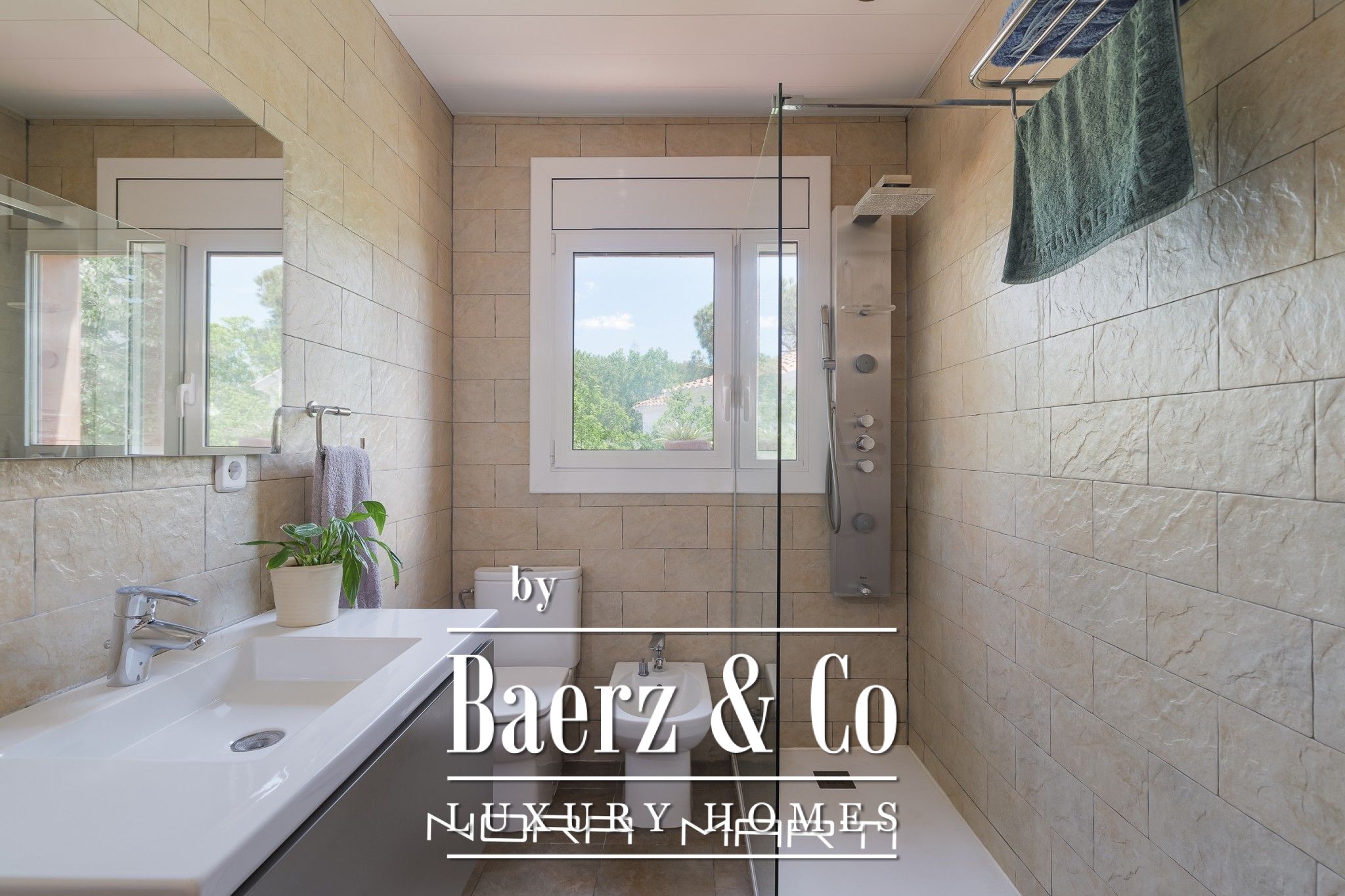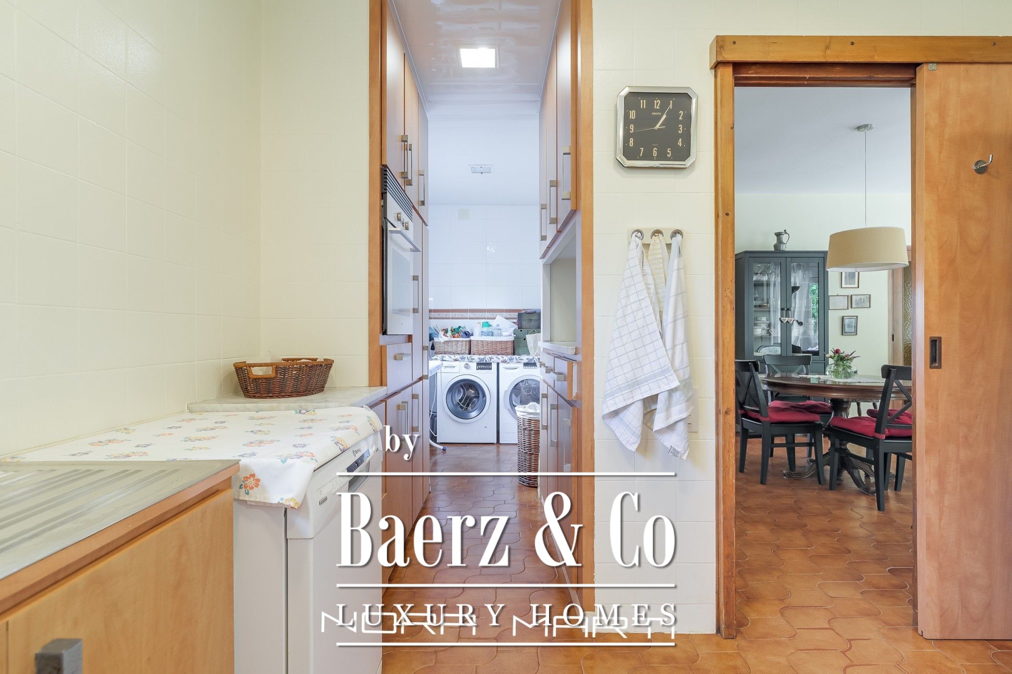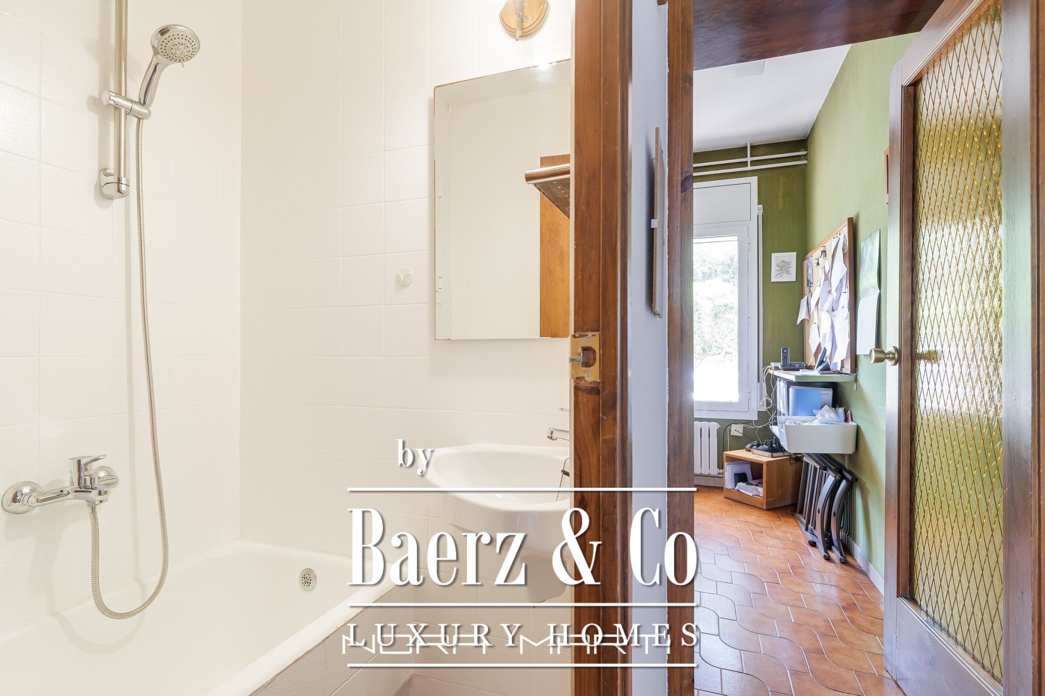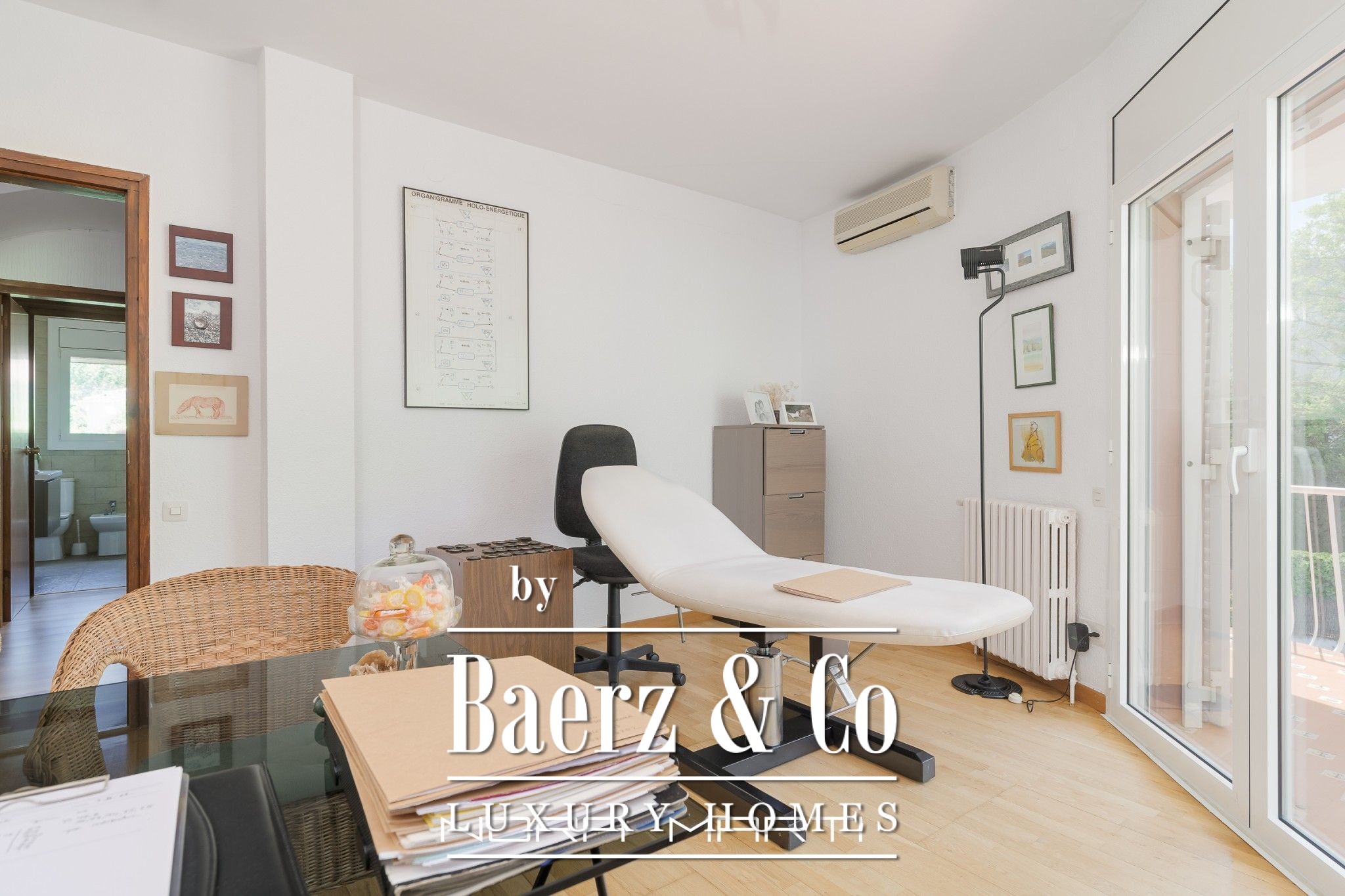 On the 120m2 ground floor we find the garage with direct access to a hall (where the main pedestrian entrance is) that leads us on one side to the living-dining room and kitchen-office plus laundry-iron area and on the other side to an office and 1 bathroom.