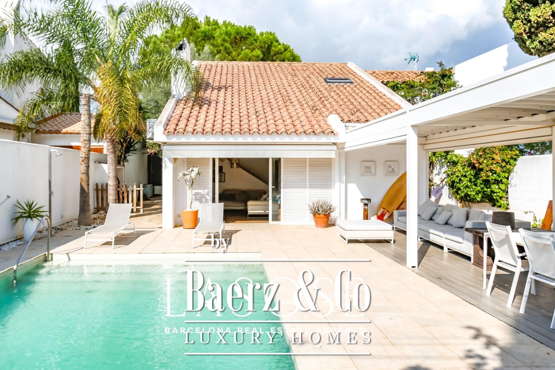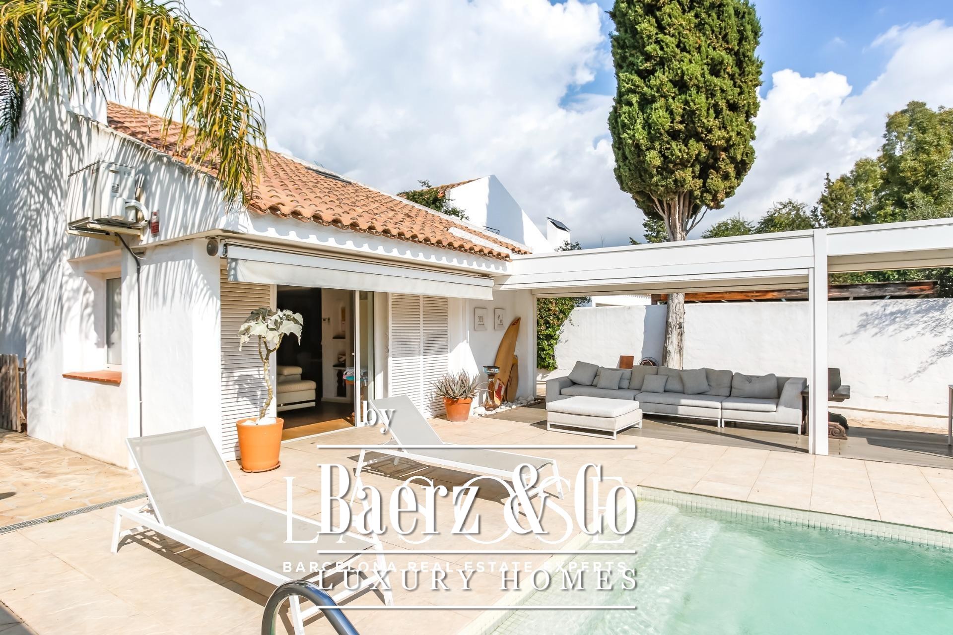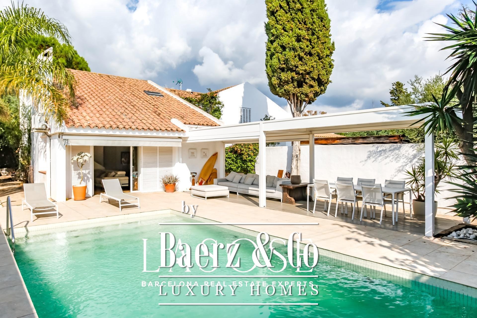 Vrijstaande woning in Sant Pere de Ribes combineert een ingetogen mediterrane uitstraling met een exclusieve ligging in de enclave Los Viñedos. Deze residentie biedt 155 m² zorgvuldig ingedeelde leefruimte op een perceel van 355 m², met vier slaapkamers en twee badkamers, doordacht geconfigureerd voor privacy en een natuurlijke flow. Licht stroomt door royale schuiframen en verbindt het interieur met weelderige tuinen, loungeterrassen en een privézwembad – een uitnodiging tot dagelijkse rust of intieme bijeenkomsten.