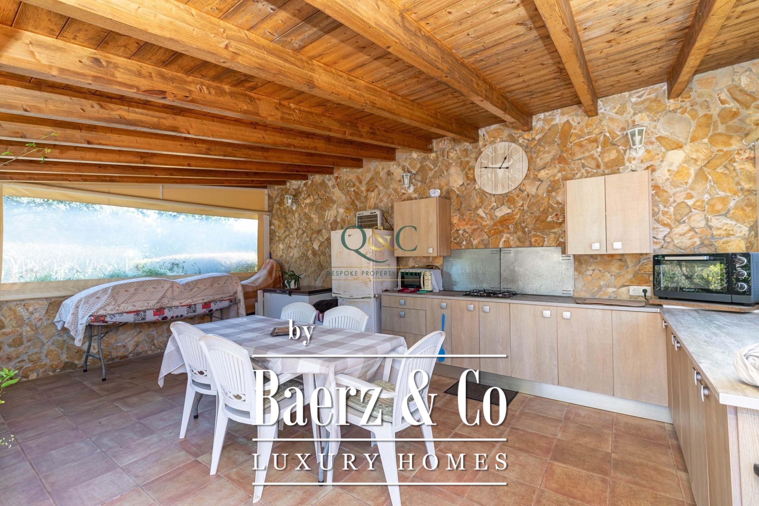 De master suite opent direct naar het terras en een zwembad van 9,5 x 4,5 meter met uitzicht over het landschap en de bergen, terwijl de volledig uitgeruste, ruime keuken uw dagelijkse ritme ondersteunt met bijkeuken en een soepele verbinding met de eetkamer. De woonkamer is licht en verfijnd, voorzien van een open haard en directe toegang tot de tuin. Het hele jaar door comfort wordt gewaarborgd door omkeerbare airconditioning, hoogwaardige afwerkingen en een haard met warmteterugwinning.