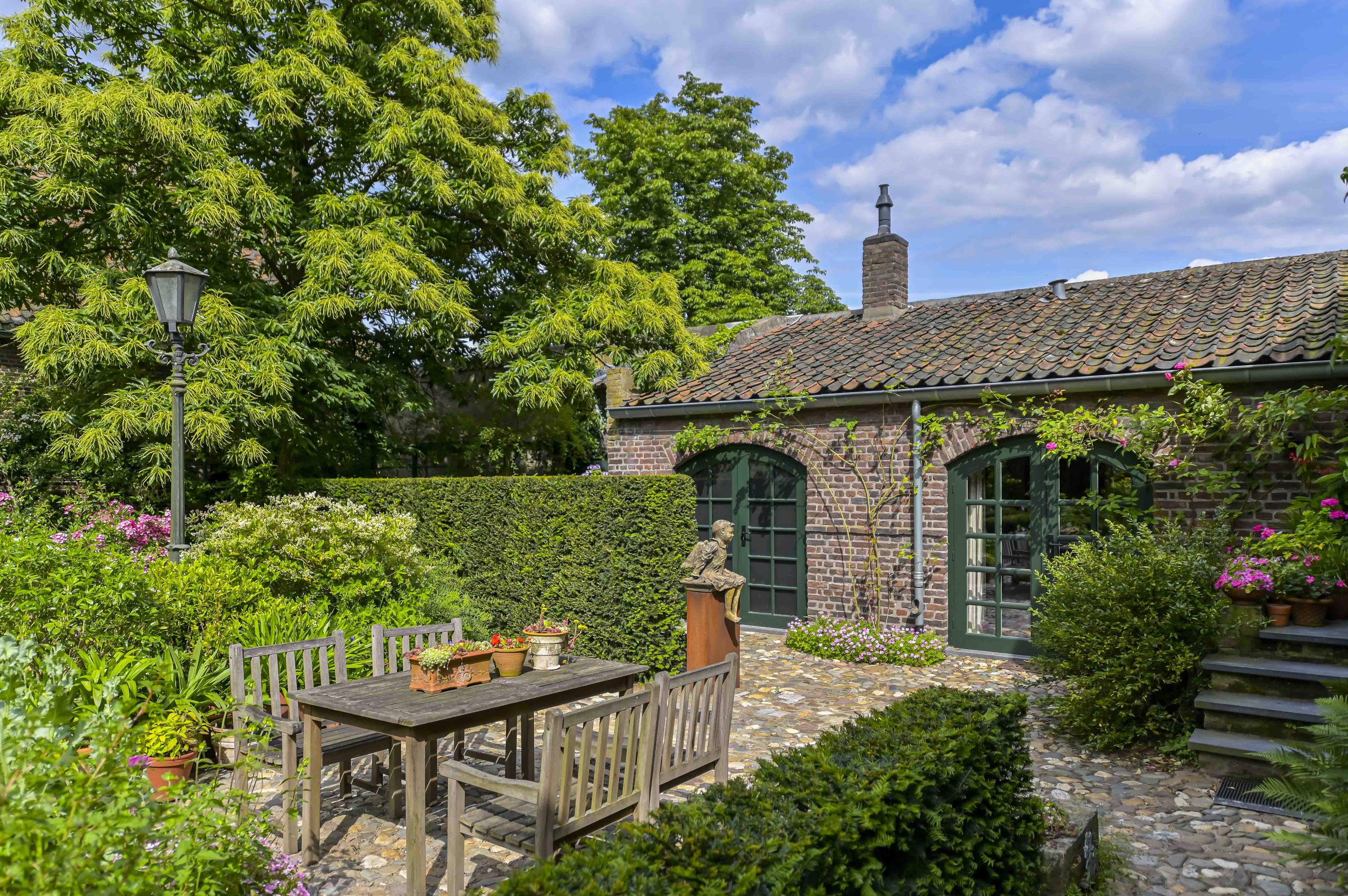 Uniek perceel van 7616m² met zeer veel groen, een royale vijver en diverse wandelpaden. U kunt hier heerlijk in eigen bostuin wandelen en toch waant u zich ergens anders. Het geheel zorgt voor een unieke flora en fauna op het terrein. Op het gehele perceel is een beregeningssysteem aanwezig. Op de vlonder bij de vijver kunt u aan het water rustig genieten van een zomerse avond. De oprijlaan met elektrische poort leidt u naar de monumentale woning.