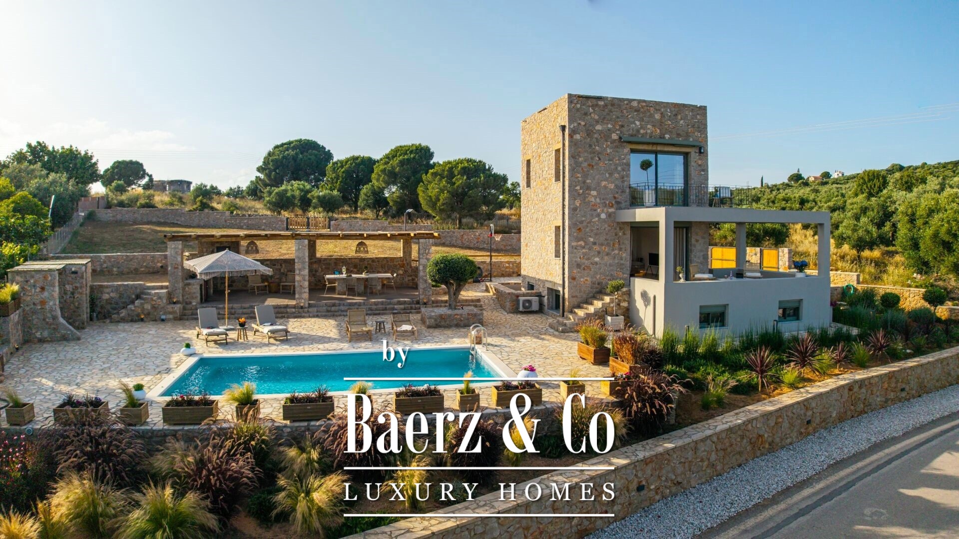 Stone villa Tragana biedt een uitzonderlijke kennismaking met het hedendaagse mediterrane leven. Deze nieuw gebouwde luxe villa is gelegen in een bevoorrechte, rustige enclave van Messinia en combineert tijdloze steenarchitectuur met een vrij uitzicht over het eindeloze blauw. De villa beslaat 140 m² op een privéperceel van 750 m² en wordt gekenmerkt door de zuidoostelijke oriëntatie, waardoor elke ruimte de hele dag door wordt ondergedompeld in natuurlijk licht.