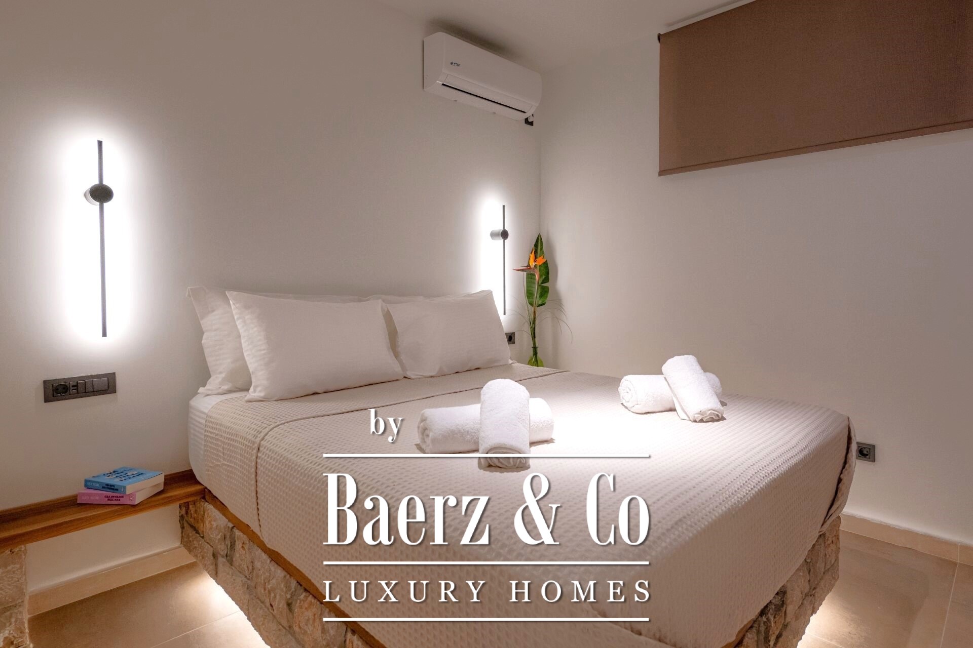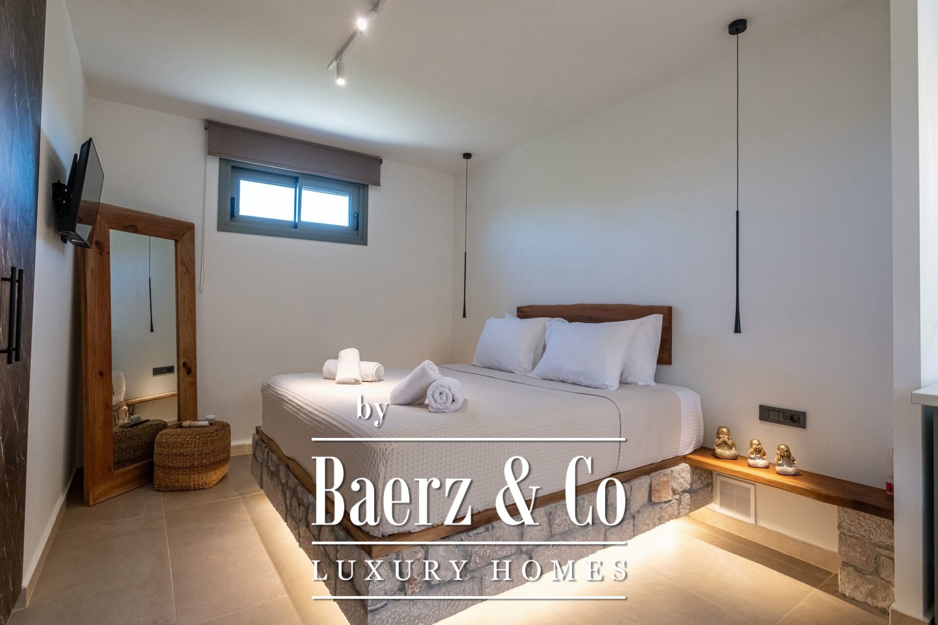Het verhoogde ontwerp strekt zich uit over drie niveaus. Het souterrain beschikt over een leefruimte met keuken, badkamer en twee lichte slaapkamers, ontworpen met oog voor privacy en gastvrijheid. De verhoogde begane grond vormt het hart van het dagelijks leven met een open keuken, woonkamer en eetgedeelte, die naadloos overgaan naar een balkon van 30 m² onder een pergola, waar zee en licht samenkomen. Boven biedt de master bedroom met en suite badkamer een exclusieve privésfeer.