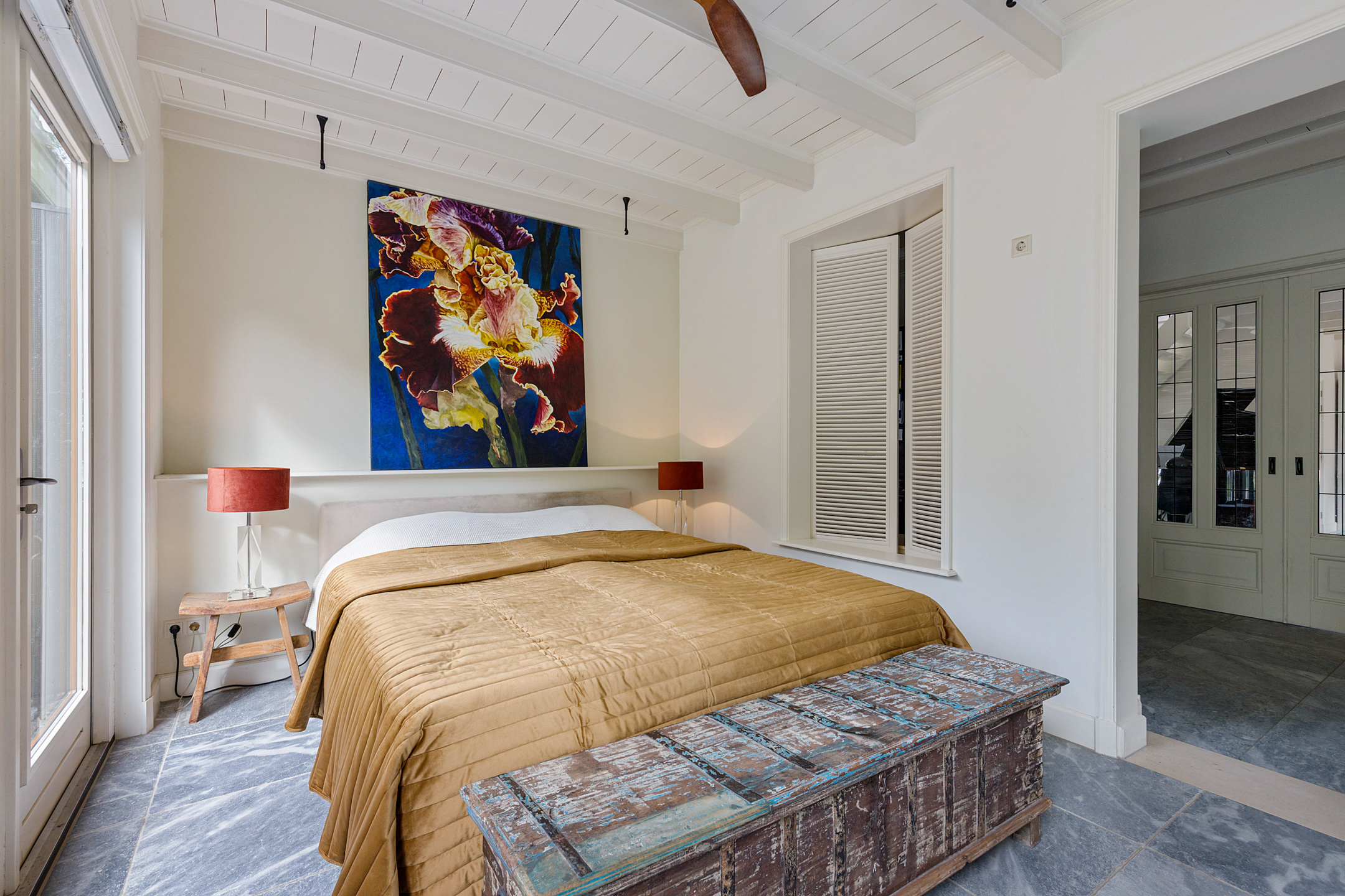 Achter in de tuin, grenzend aan de vijver en met de mogelijkheid voor een eigen oprit, is een modern vrijstaand bijhuis gebouwd met totale privacy ten opzichte van het dijkhuis. Deze zelfstandige, hotel-chique woonruimte beschikt over open keuken, living, badkamer en in de loft een slaapkamer en atelier/werkkamer. Perfect voor dubbele bewoning, werken aan huis of mantelzorg.