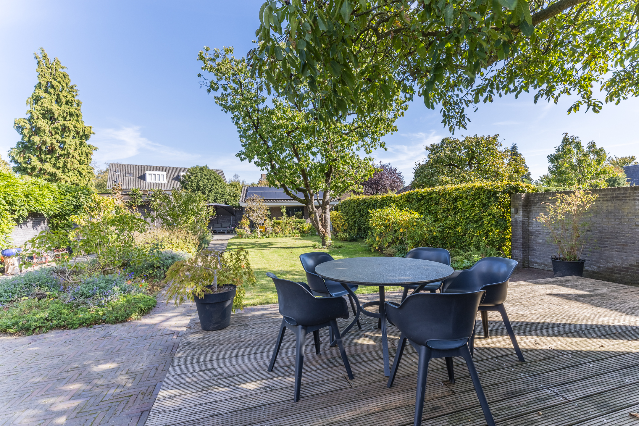 - Sfeervolle tuin die in privacy is gelegen, met altijd wel ergens een zonnig plekje;