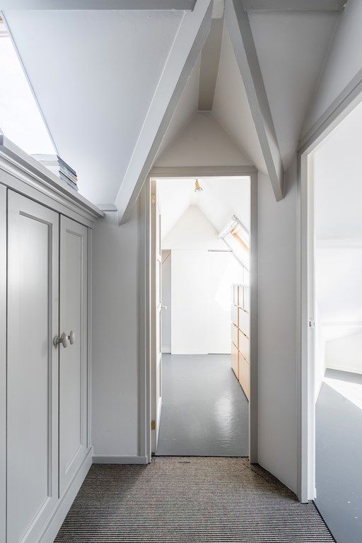 De tweede verdieping telt eveneens drie slaapkamers, allen voorzien van dakramen of dakkapellen, waardoor er veel daglicht binnenvalt. De beschikbare ruimte is efficiënt benut met slimme bergruimtes en een praktische indeling.