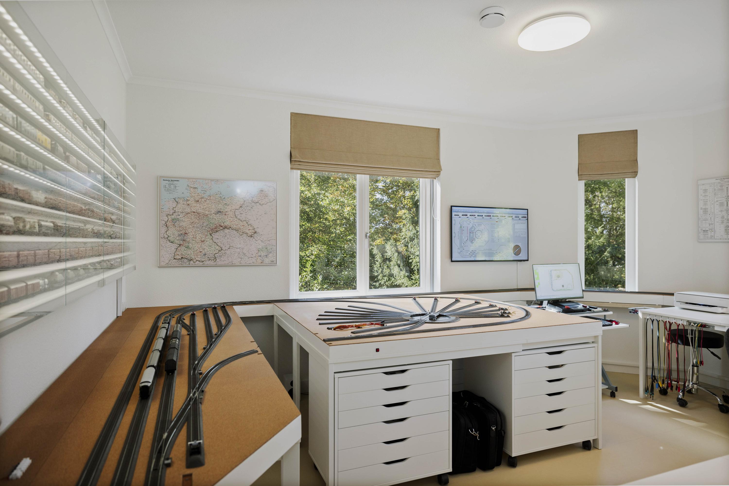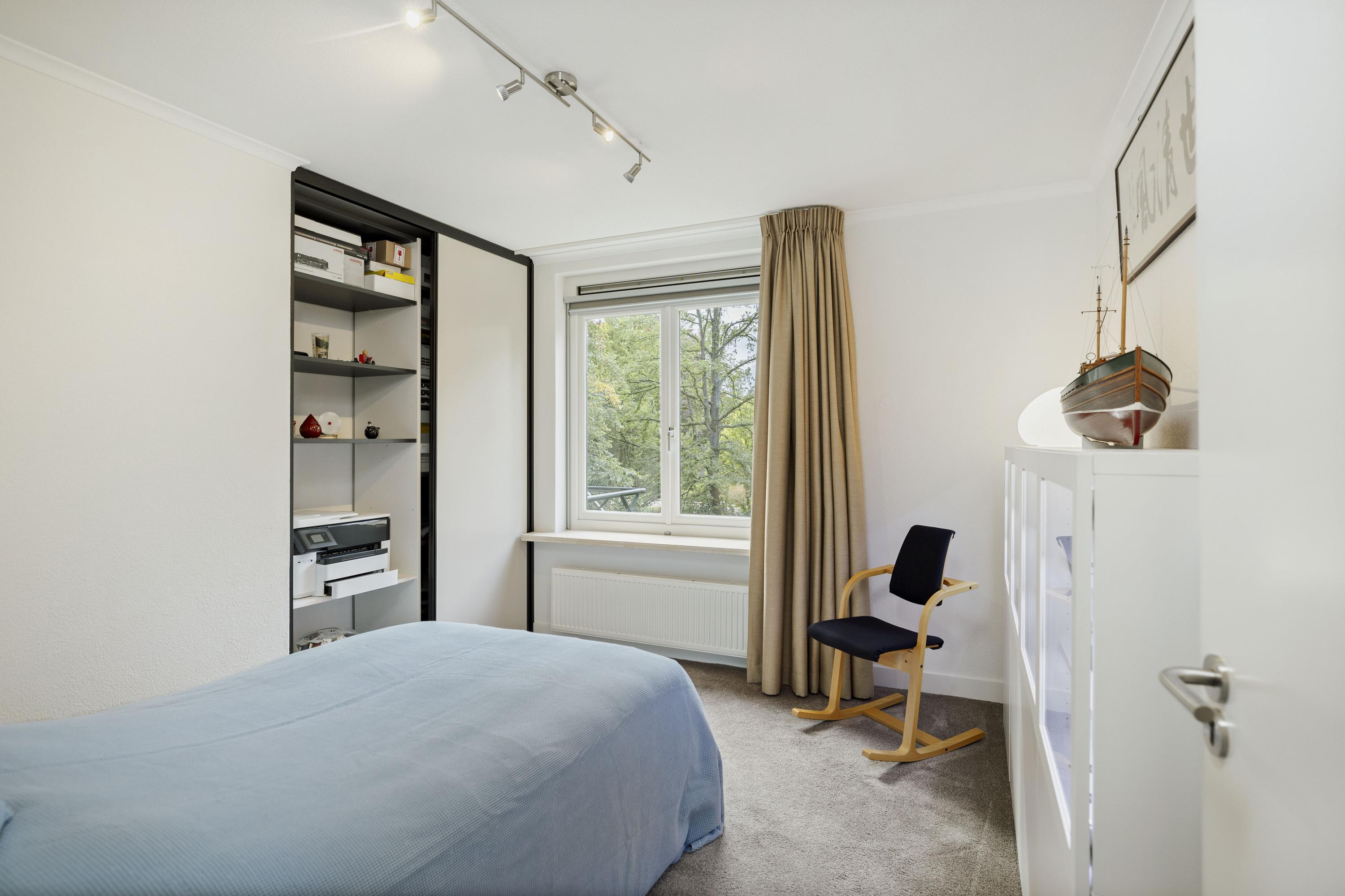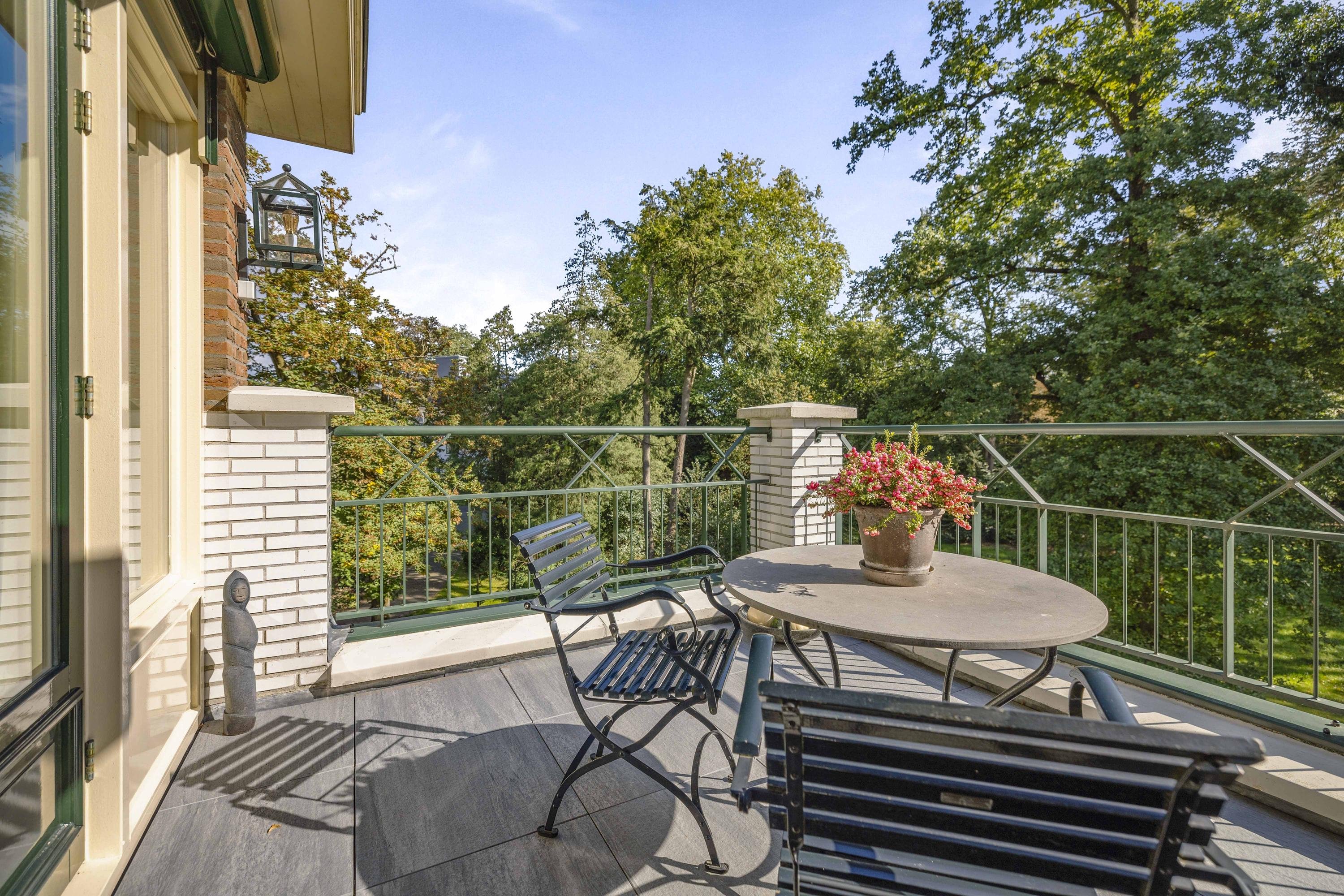 De riante woonkamer, met in het verlengde een ruime studeerkamer en-suite, biedt een prachtig uitzicht op het park en heeft openslaande deuren naar alle balkons.