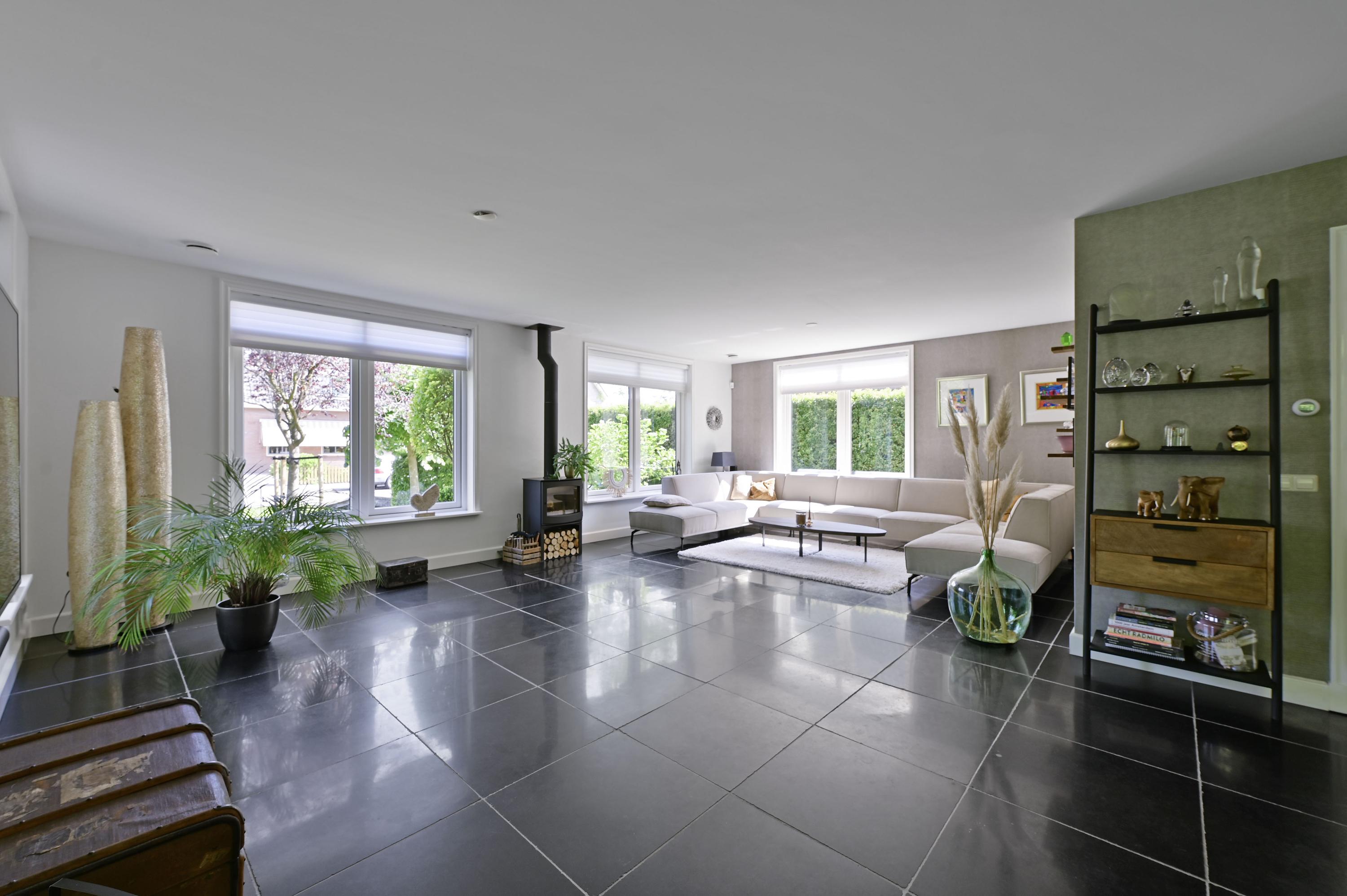 De villa is traditioneel gebouwd en kenmerkt zich door een ruime en lichte opzet. Grote raampartijen zorgen voor veel daglicht en creëren een prettige verbinding tussen binnen en buiten. De royale woonkamer vormt het hart van het huis en beschikt over een sfeervolle open haard, waardoor een comfortabele en uitnodigende leefruimte ontstaat. Aansluitend bevindt zich de ruime woonkeuken, ingericht als echte leefkeuken waar koken en samenzijn centraal staan.
