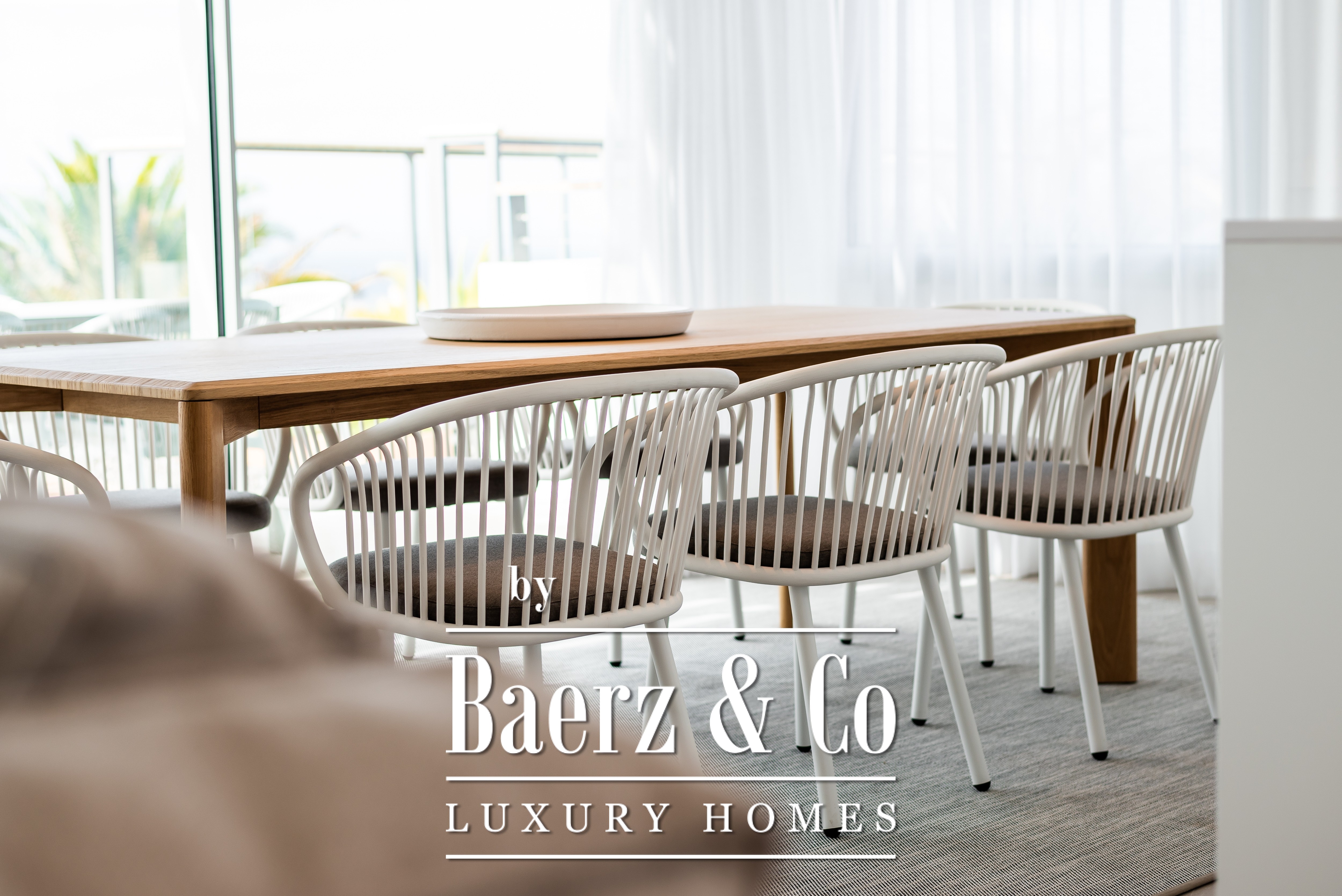 Проект выполнен ведущими испанскими архитекторами и дизайнерами интерьеров. Апартаменты площадью 201 м² обставлены по высочайшим пятизвёздочным стандартам и ориентированы на максимальный комфорт. Просторные террасы и приватные сады гармонично расширяют зону отдыха на свежем воздухе, а каждая интерьерная деталь – от премиальных бытовых приборов и технологий «умный дом» до встроенных шкафов – отвечает самым взыскательным ожиданиям ценителей продуманного дизайна. В каждом из трёх спален имеется собственная ванная комната; лифты обеспечивают комфортное и беспрепятственное перемещение по всему комплексу.