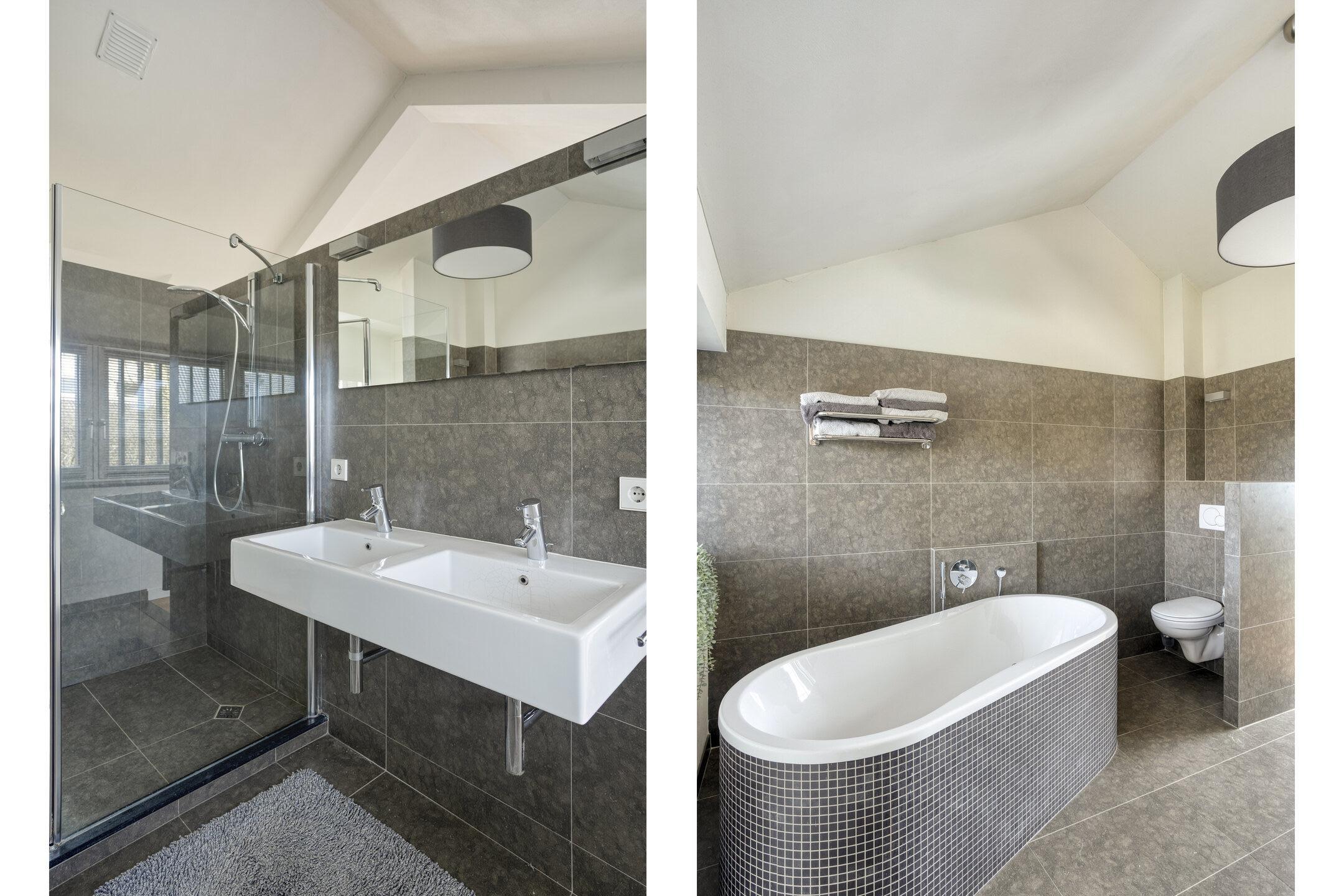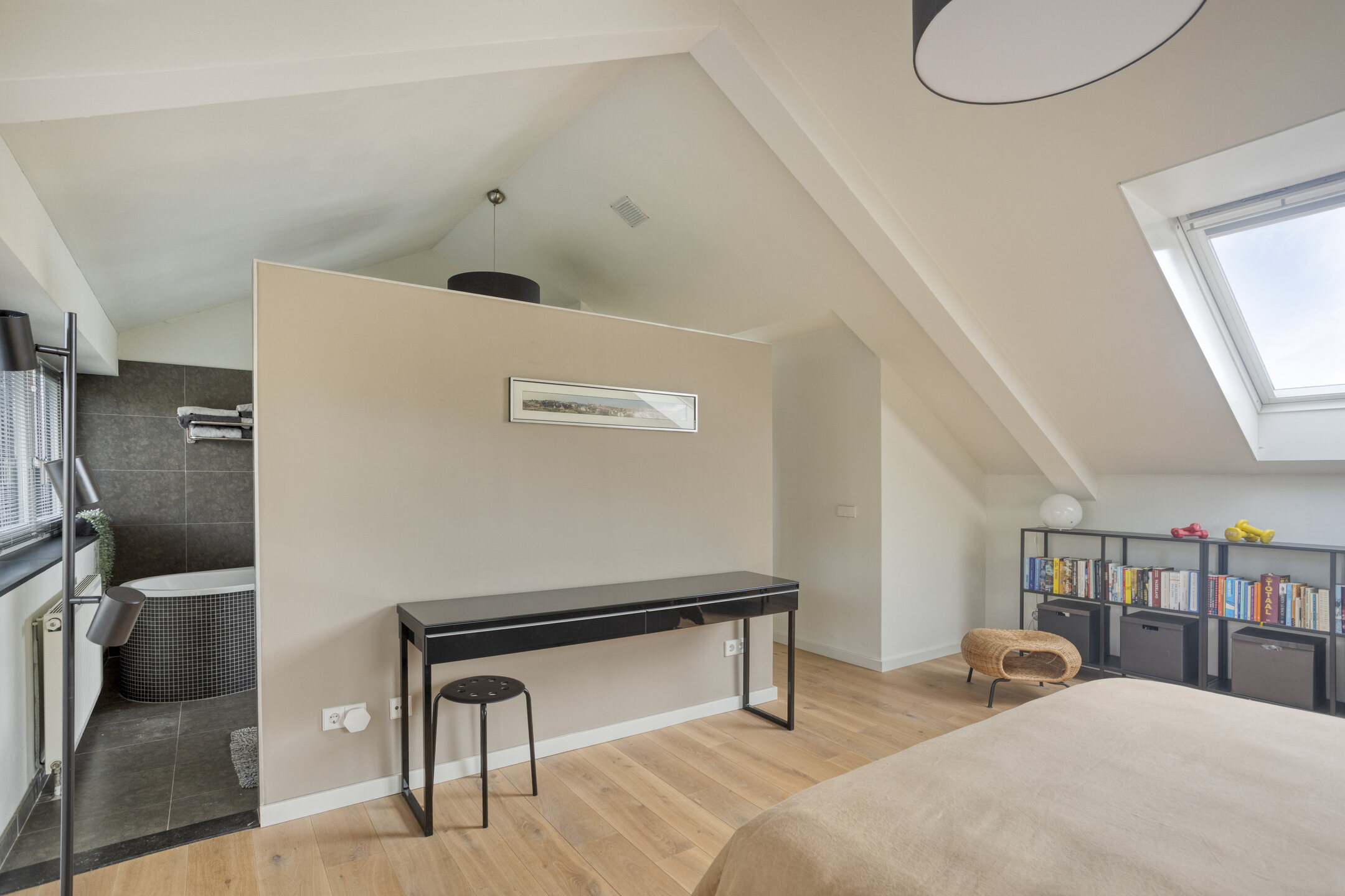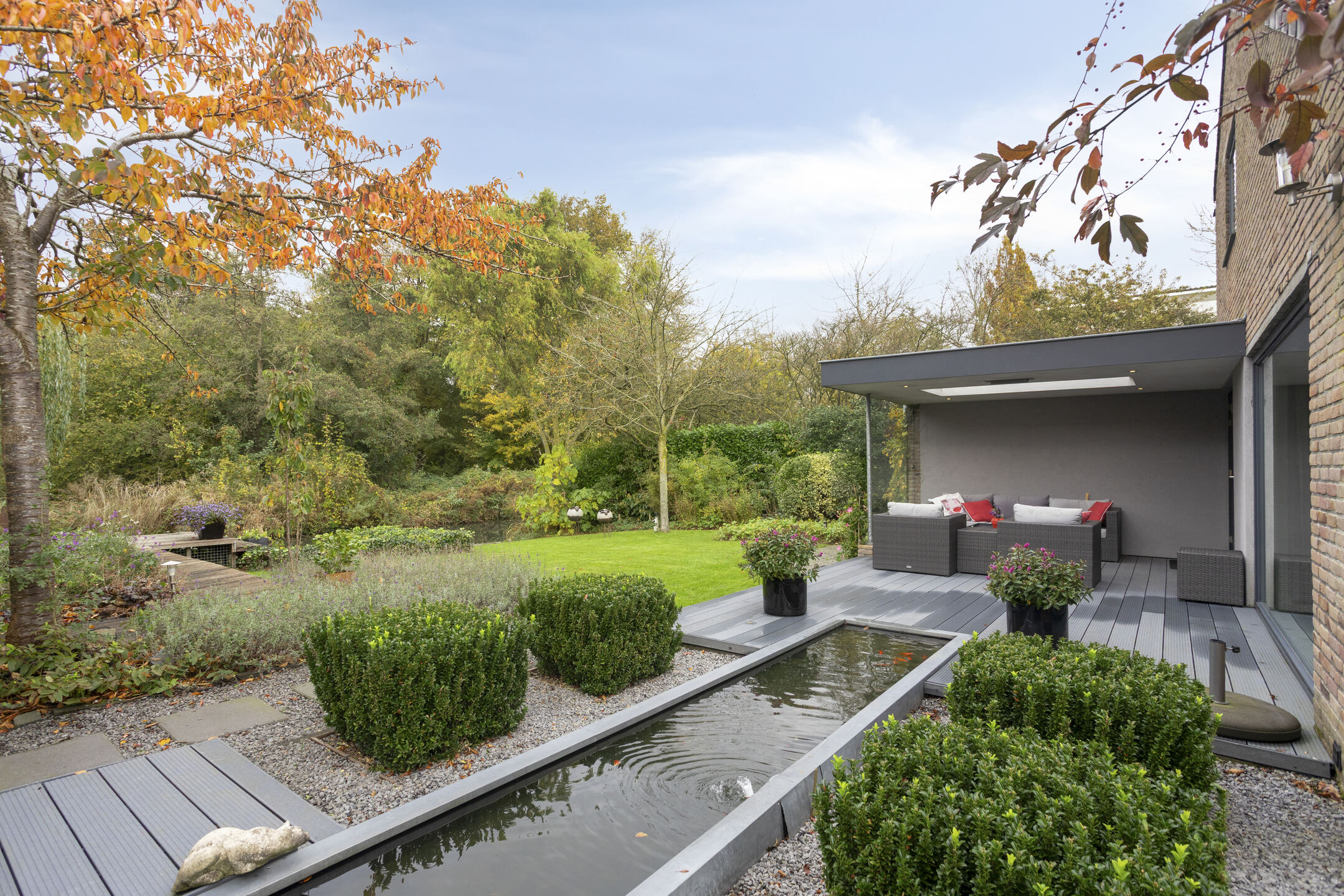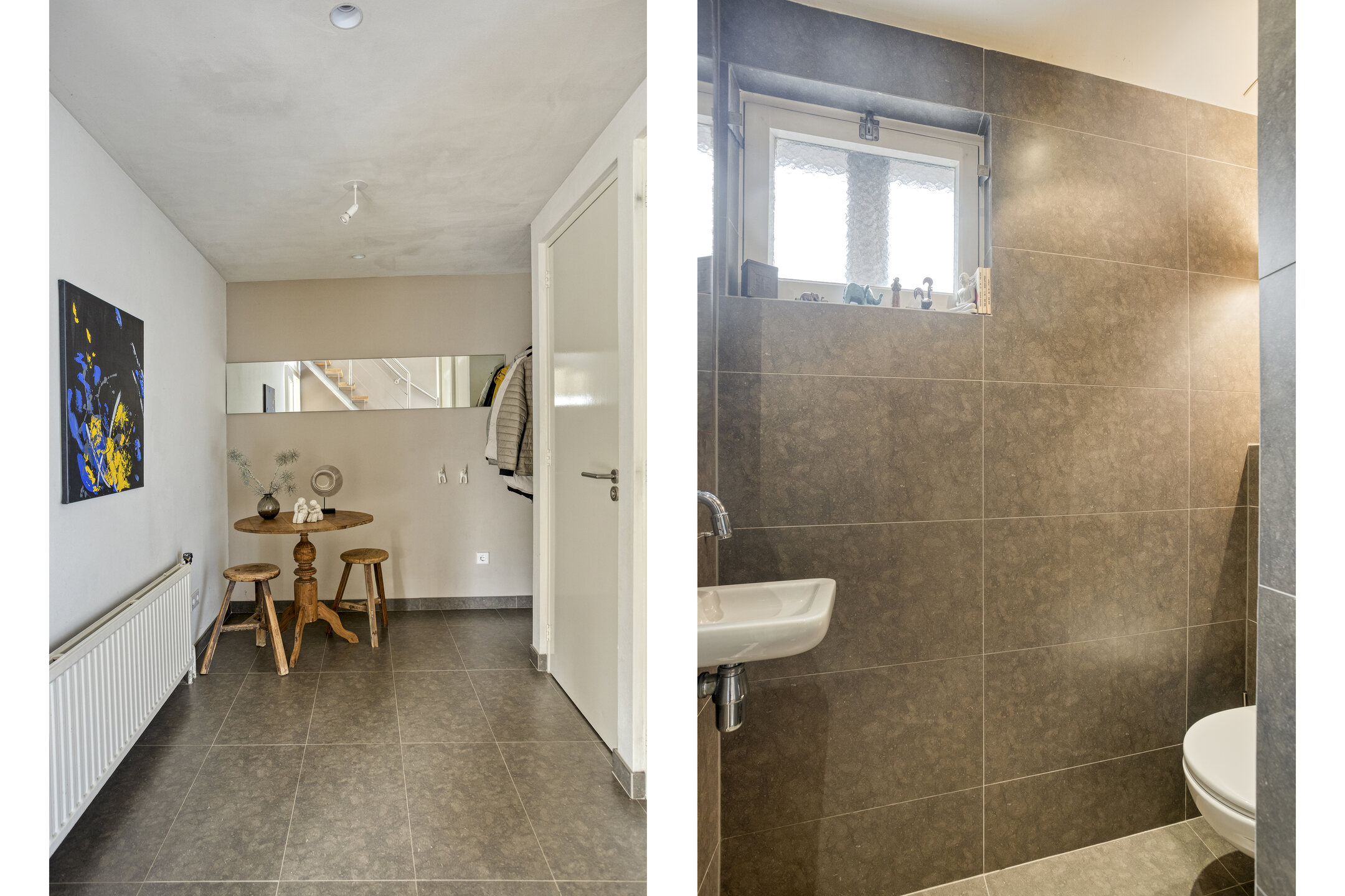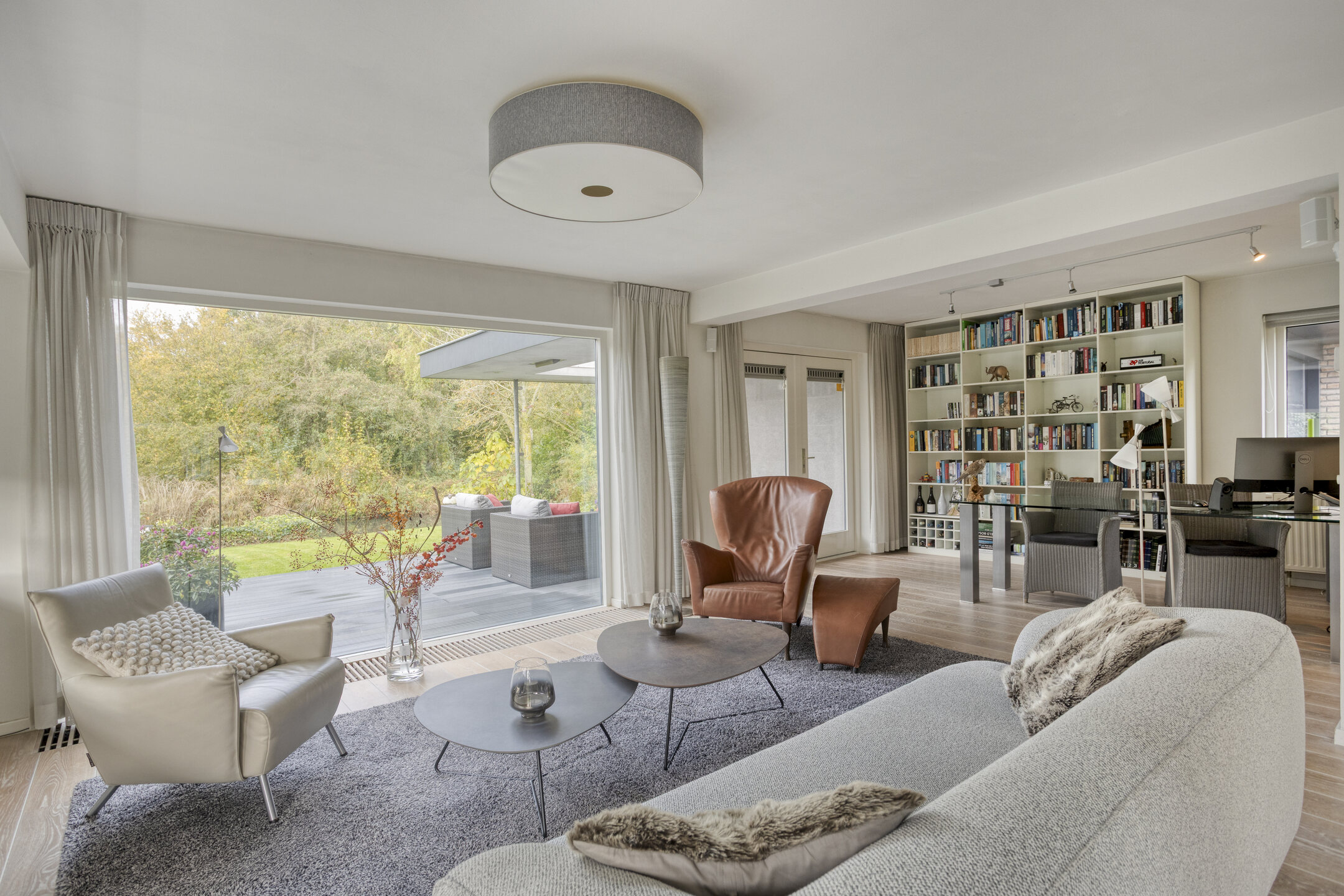 Просторный холл с дубовым полом и лаконичными стеклянными дверями встречает гостей при входе. Гостиная и кухня-столовая разделены двусторонним камином Bellfire, который придает пространству спокойное тепло. Роскошная кухня оснащена техникой премиального класса и рабочей поверхностью из бельгийского голубого камня, предлагая практичность и изысканный стиль для ежедневной жизни. Задний фасад с панорамным остеклением подчеркивает гармонию сада и живописный, охраняемый ландшафт Egmonderhout за его пределами.