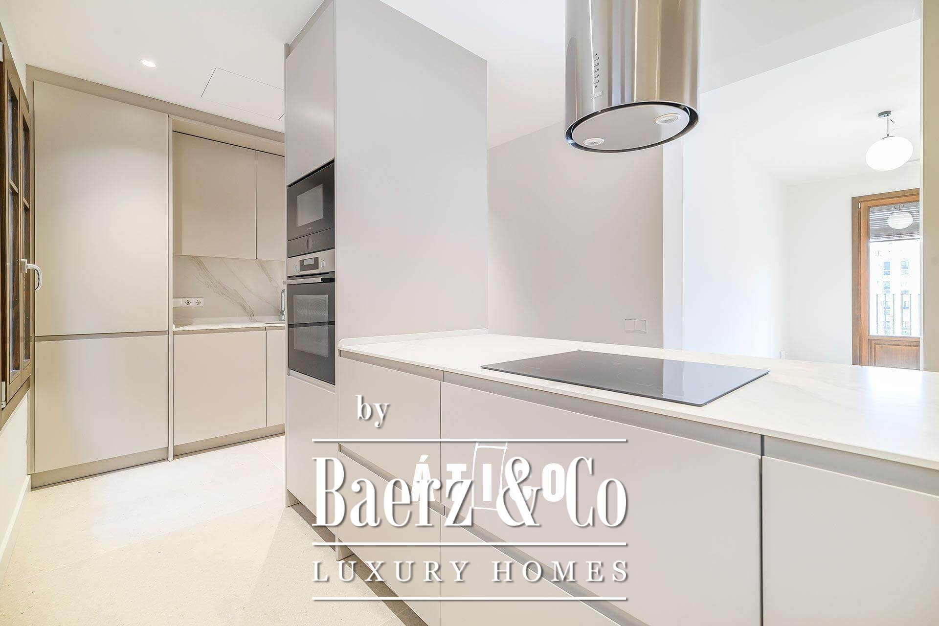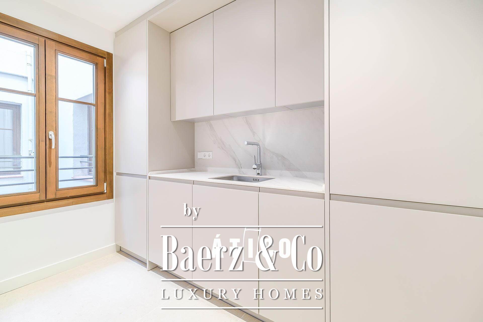 Пентхаус Barcelona в Золотом Квадрате задает новый стандарт утончённой городской жизни. Это недавно обновлённое жильё площадью 103,70 м² исполнено гармонии и простора, погружая в атмосферу покоя с первых минут пребывания. В пентхаусе две спальни и две тщательно спроектированные ванные комнаты, где в каждой детали — от выбора напольного покрытия до индивидуальной столярной работы — чувствуется продуманность. Современная кухня сочетает практичность и эстетический замысел, предоставляя щедрое пространство для хранения и сохраняя при этом чистоту архитектурных линий.