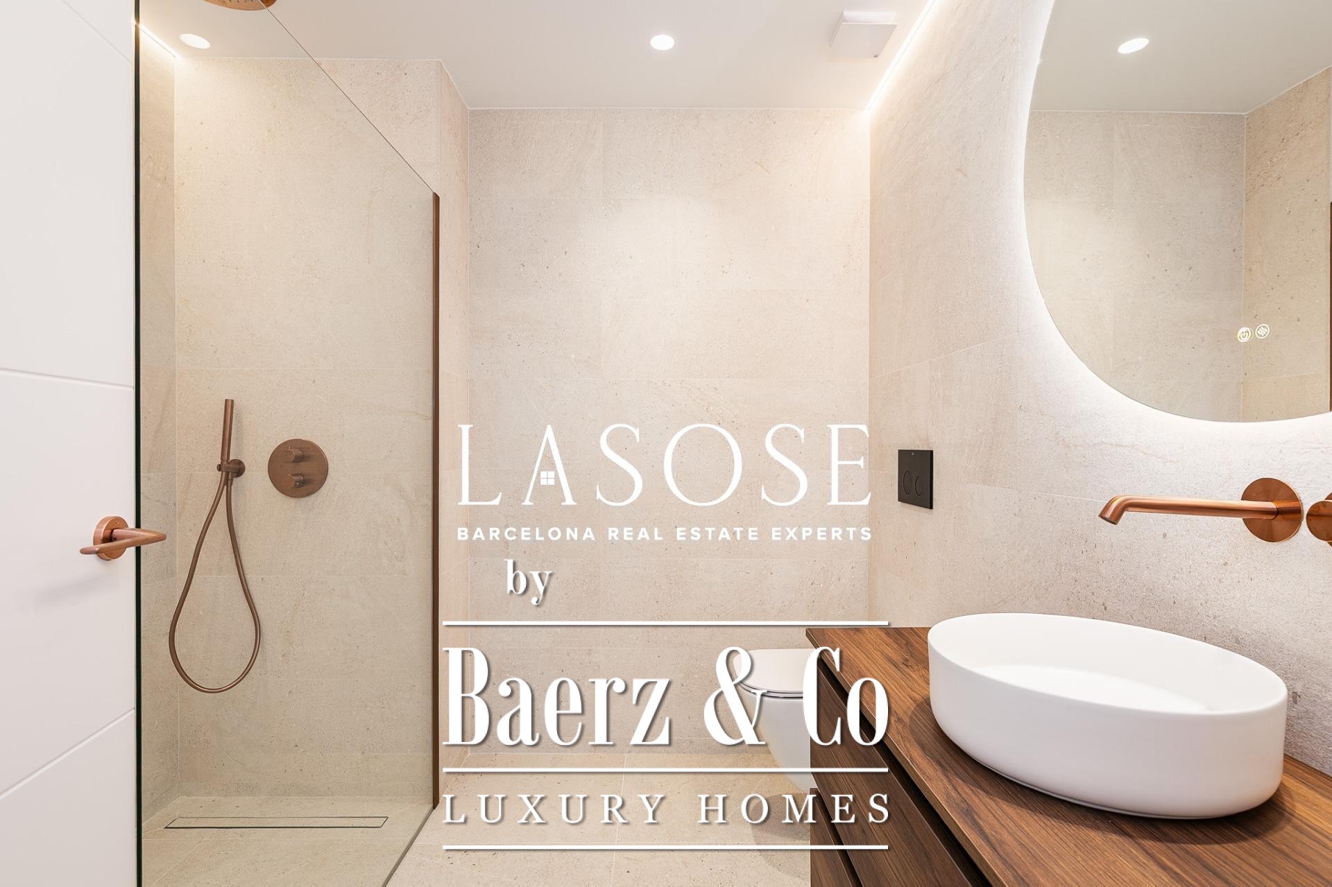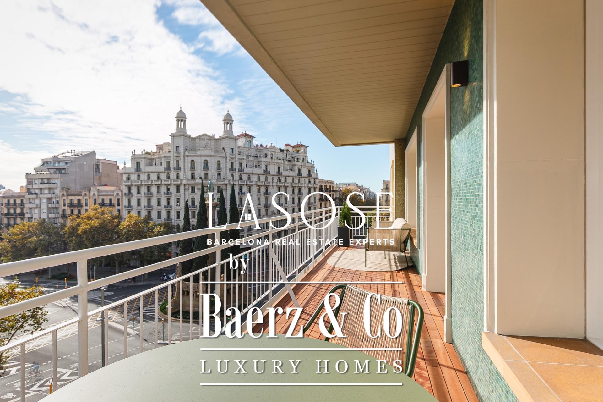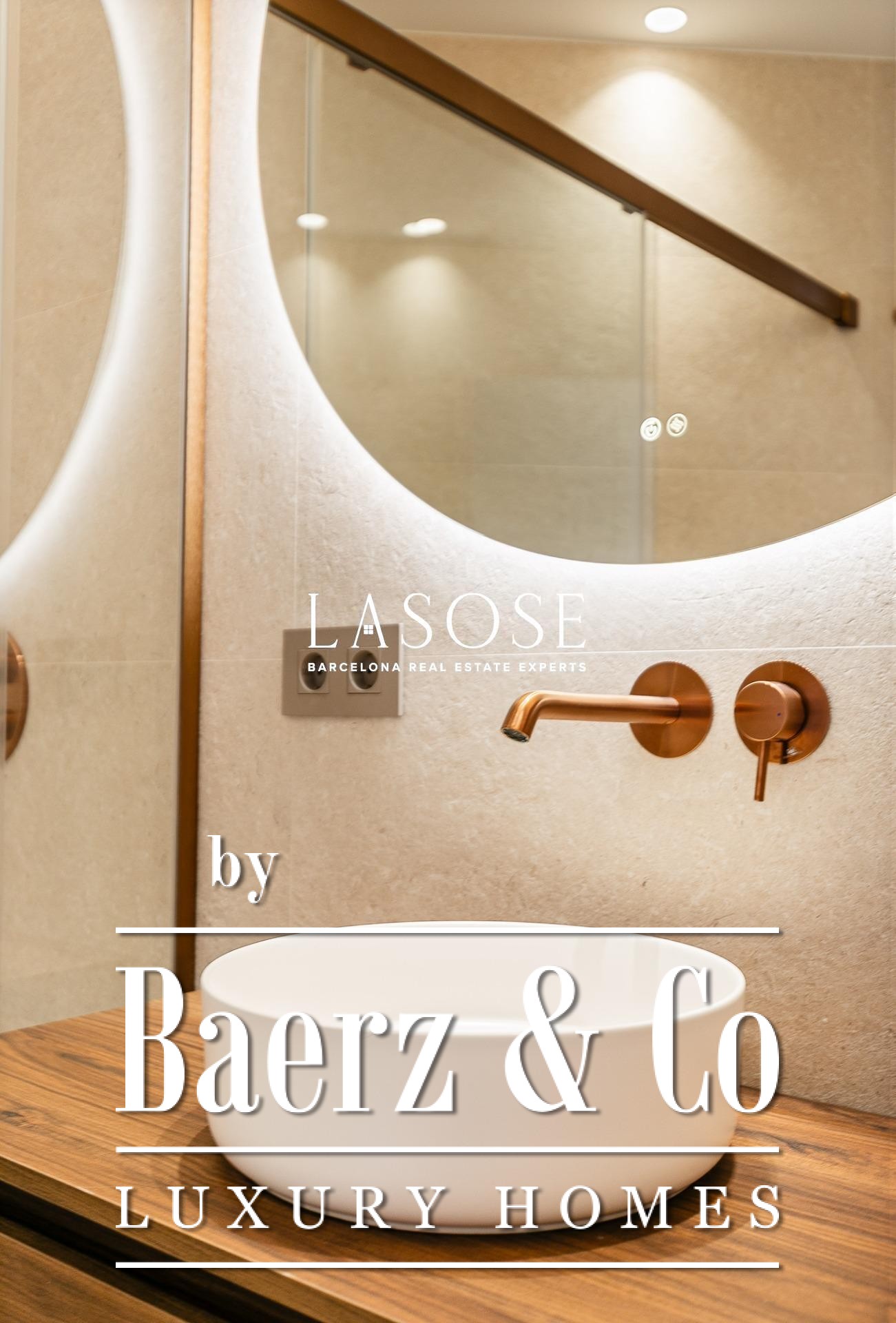 Апартаменты полностью отреставрированы с использованием премиальных материалов. Естественный свет проникает сквозь широкие окна, выходящие на юго-восток, наполняя интерьер светом и выделяя просторную открытую зону гостиной-столовой площадью 90 м². Отсюда двери ведут на угловую панорамную террасу с видом на зелёные бульвары и Plaça Mossèn Jacint Verdaguer. Кухня Santos, оснащённая техникой Bosch, сконцентрирована вокруг острова с интегрированным винным шкафом и кофейной зоной, которую дополняет кладовая для скрытого хранения.