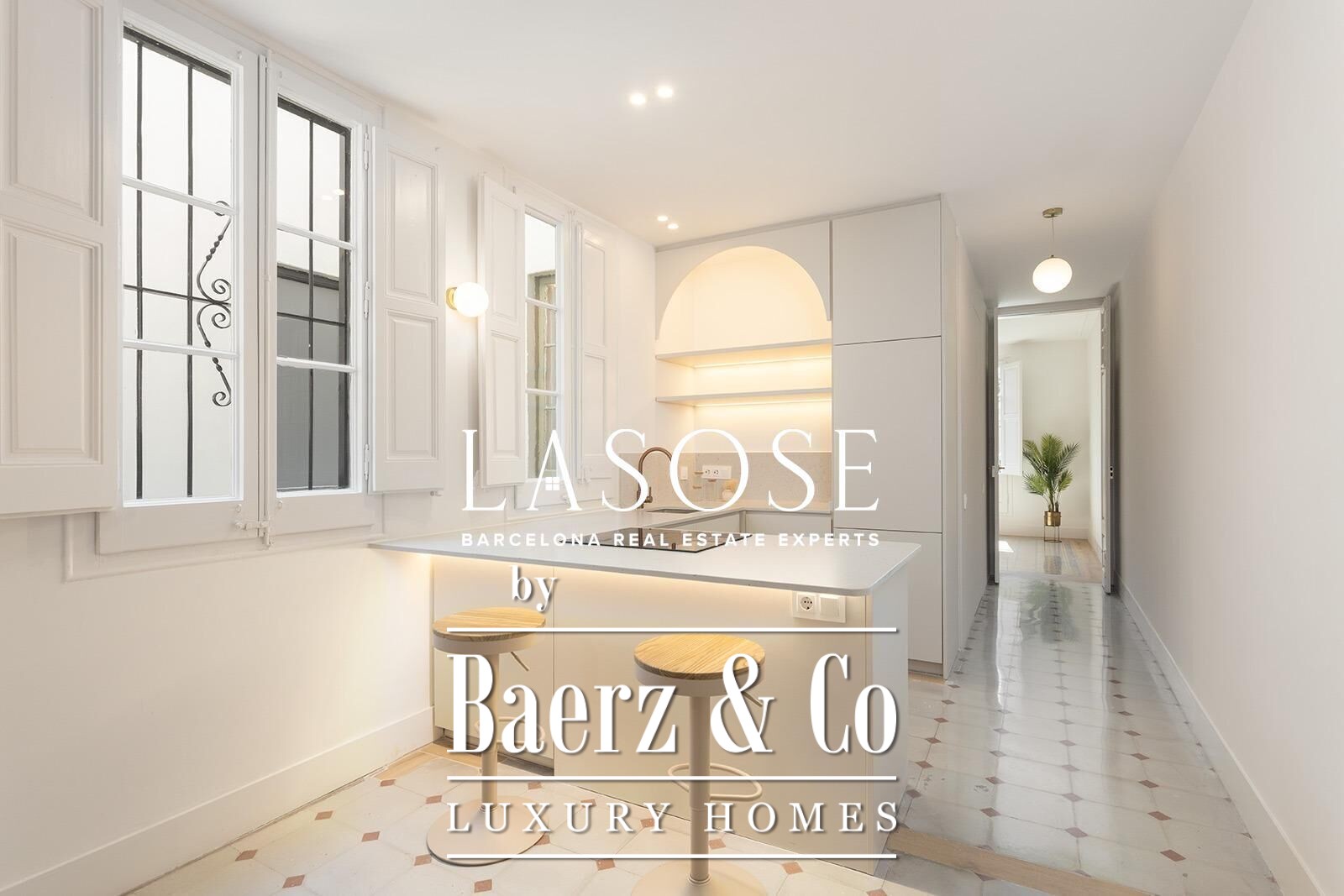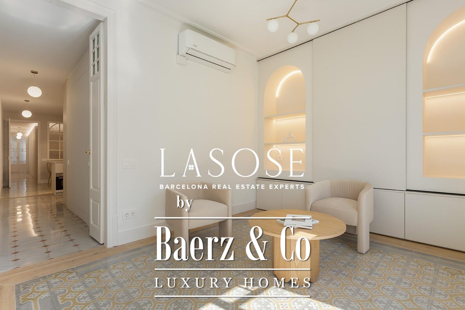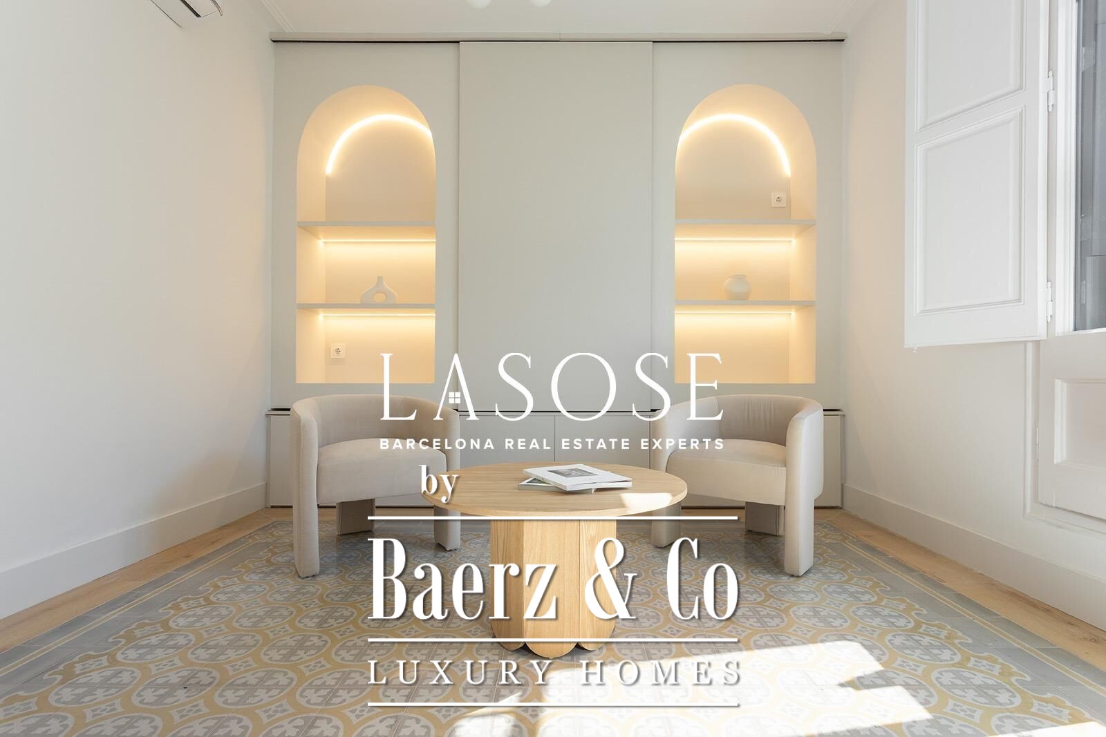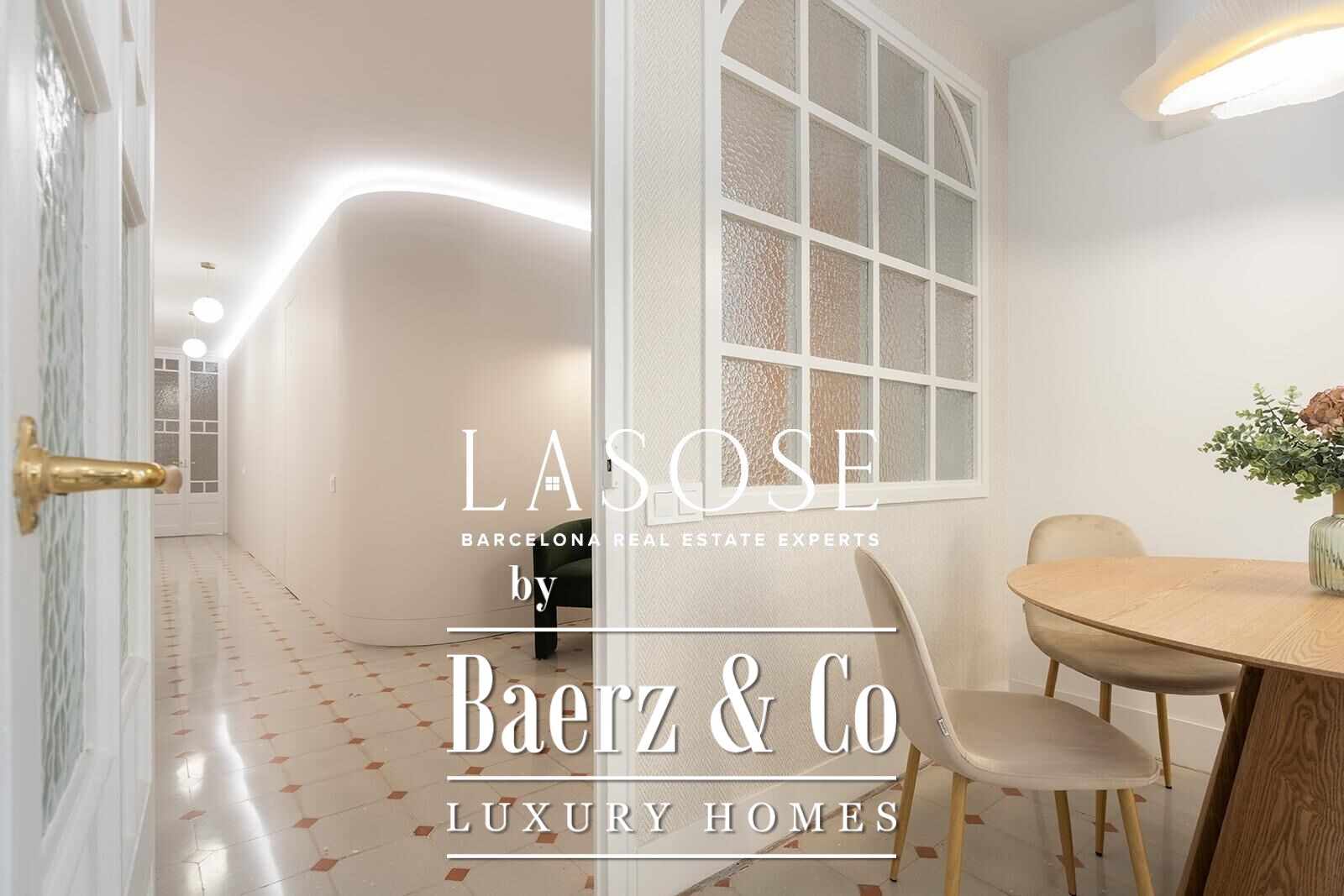 Апартаменты Barcelona — это резиденция, где историческая архитектура сочетается с современным обновлением, расположена на верхнем этаже в районе Эшампле. Просторные апартаменты площадью 115 м² полностью обновлены в 2025 году, заливаются естественным светом благодаря балкону с юго-восточной ориентацией; гостиная наполнена теплом и дарит открытые виды. Оригинальная гидравлическая плитка и тщательно восстановленный каталонский потолок отражают уникальное мастерство эпохи, а современное освещение, элегантные ванные комнаты и абсолютно новая бытовая техника гармонично дополняют изысканную атмосферу дома.
