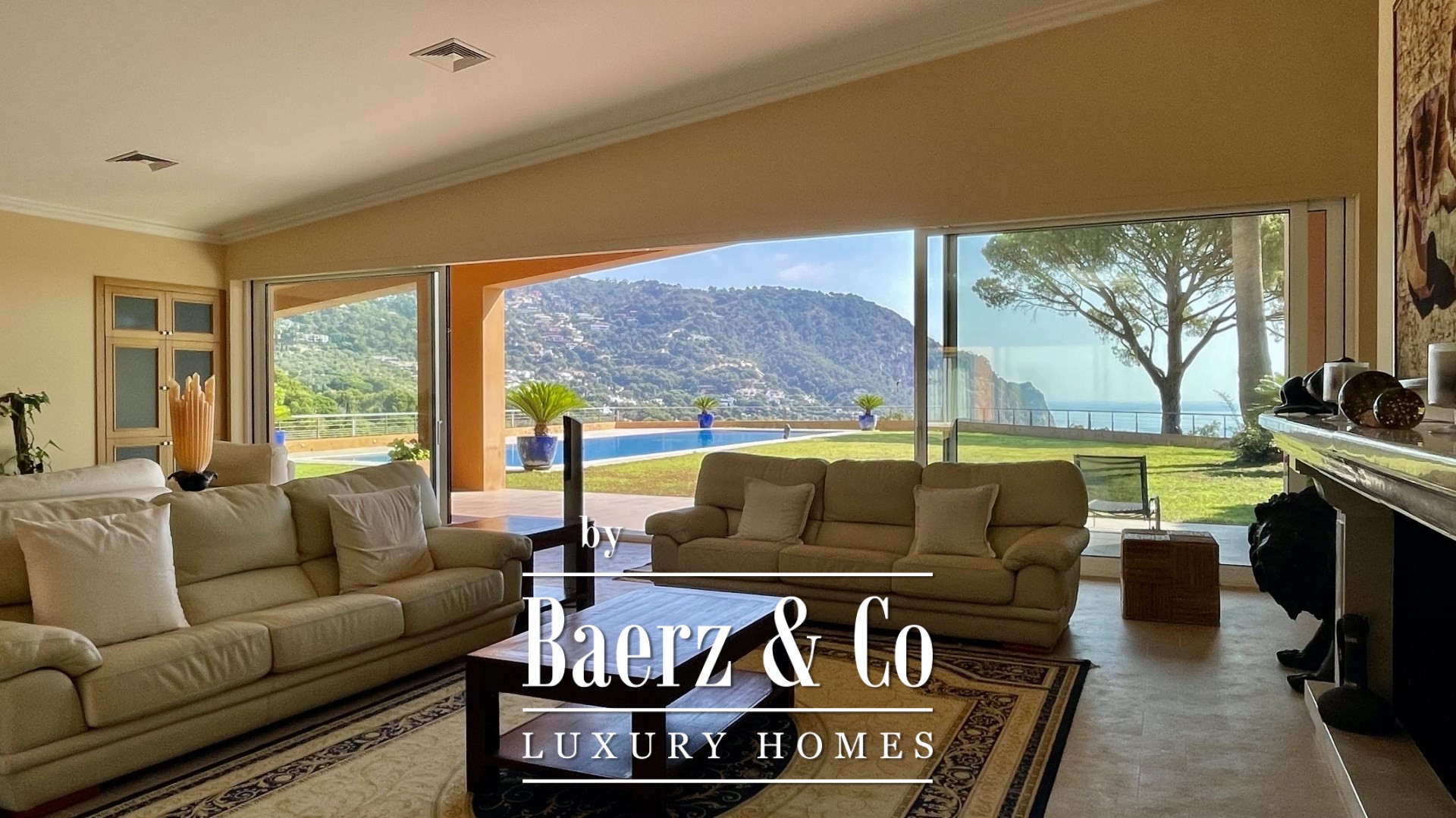 Знакомство с объектом начинается с оформленной дорожки, ведущей к эффектному входу, откуда открывается просторная гостиная с двухсветным потолком и великолепным естественным освещением. Пространства переходят друг в друга: уютные уголки с камином, читальный салон и открытые общественные зоны — все с захватывающими видами на море и сад. Формальная зона столовой гармонично соединена с просторной кухней с центральным островом и выходит на крытую террасу с лаунж-зоной и газовым барбекю для приятных вечеров на свежем воздухе.