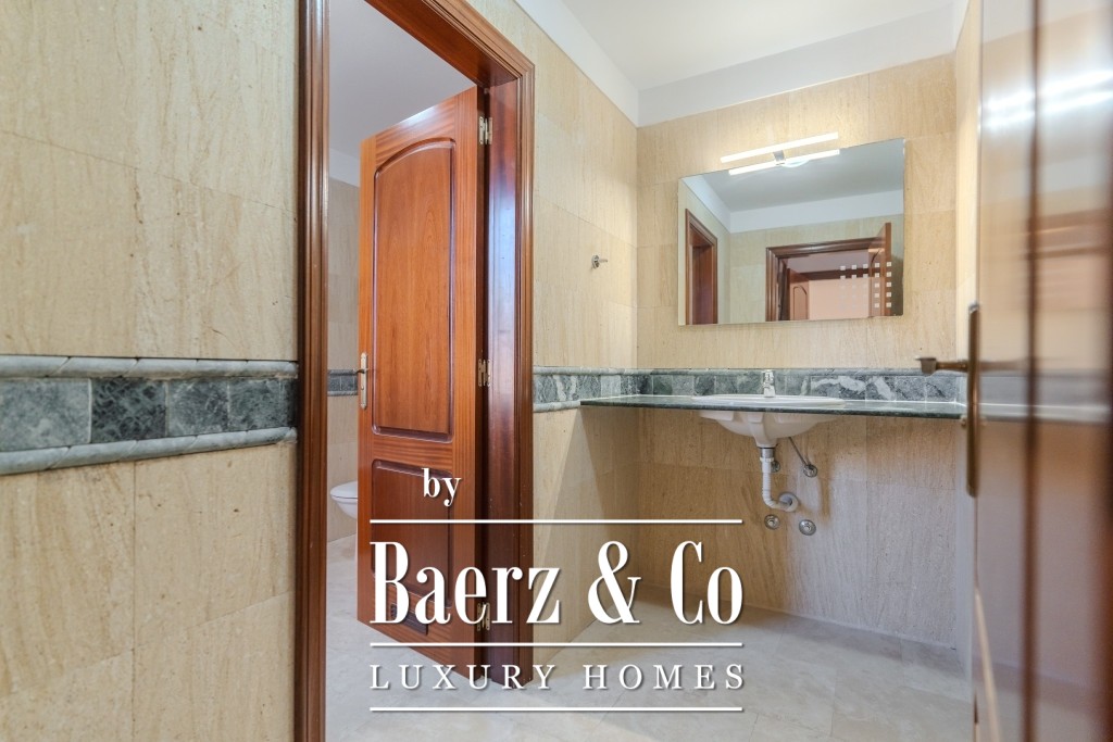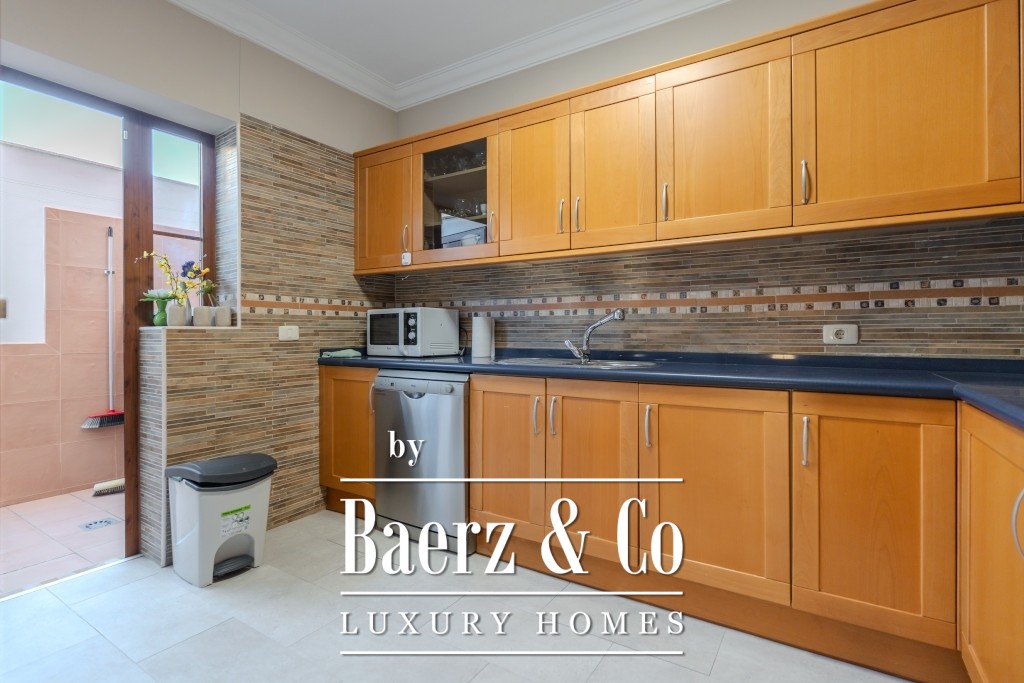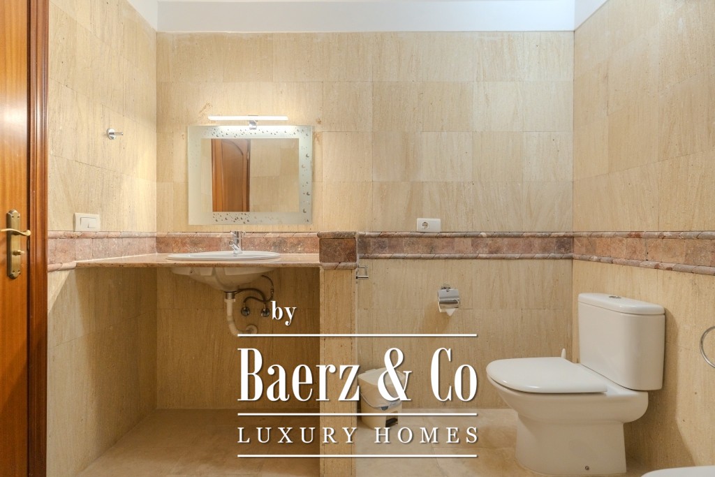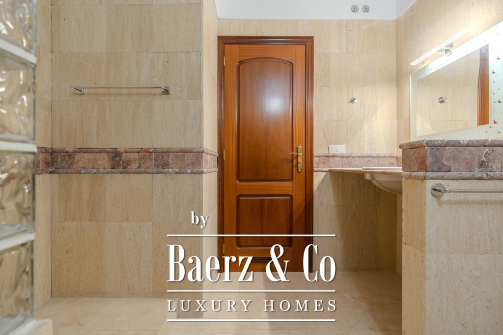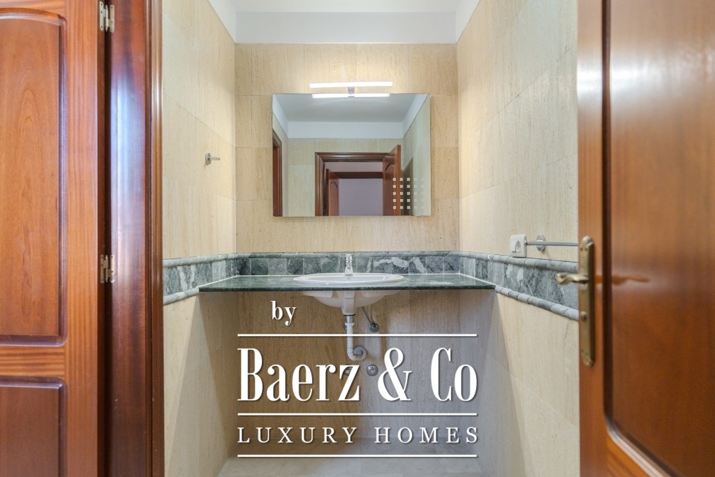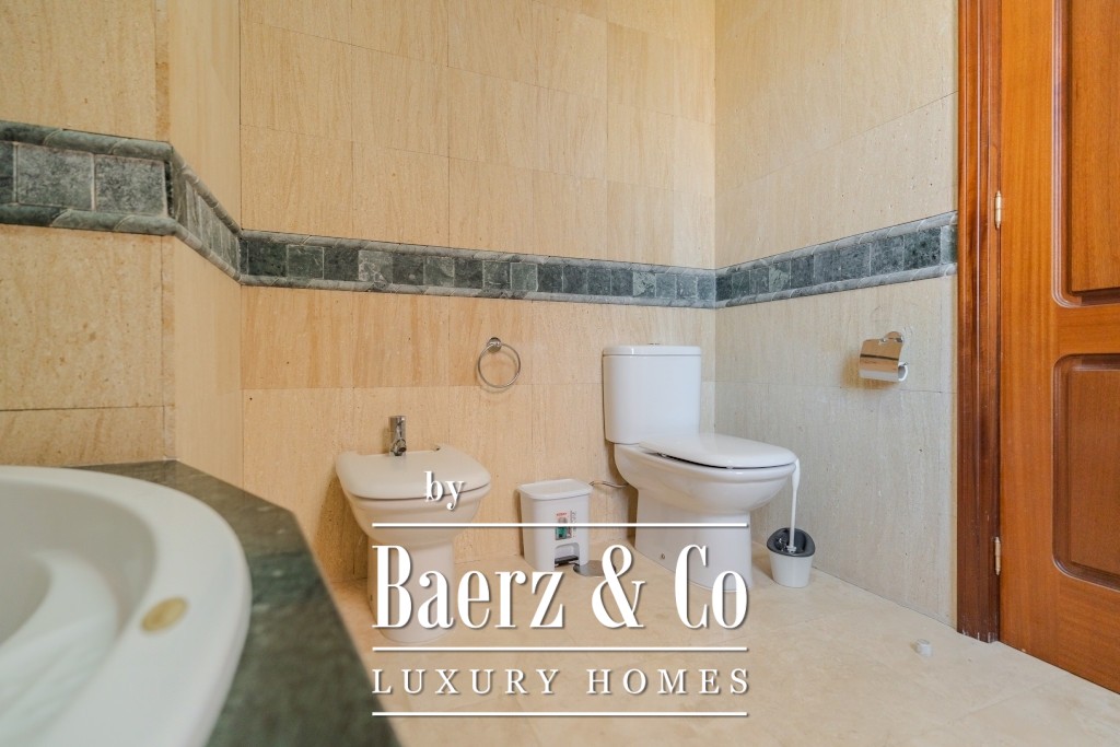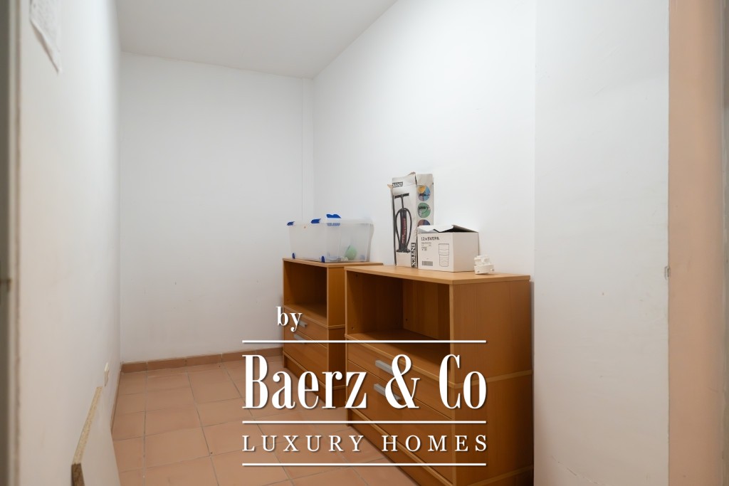 В цокольном этаже площадью 77 м² размещается частный гараж на две-три машины, кладовая, а также дополнительное хранилище под лестницей. Для жителей предусмотрены два общих бассейна, один из которых с подогревом, окружённые тихими ухоженными зелёными зонами. Размер ежемесячного коммунального платежа составляет 265 €, ежегодный налог IBI—925 €, что подчеркивает уникальное сочетание доступности, приватности и комфорта этой виллы.