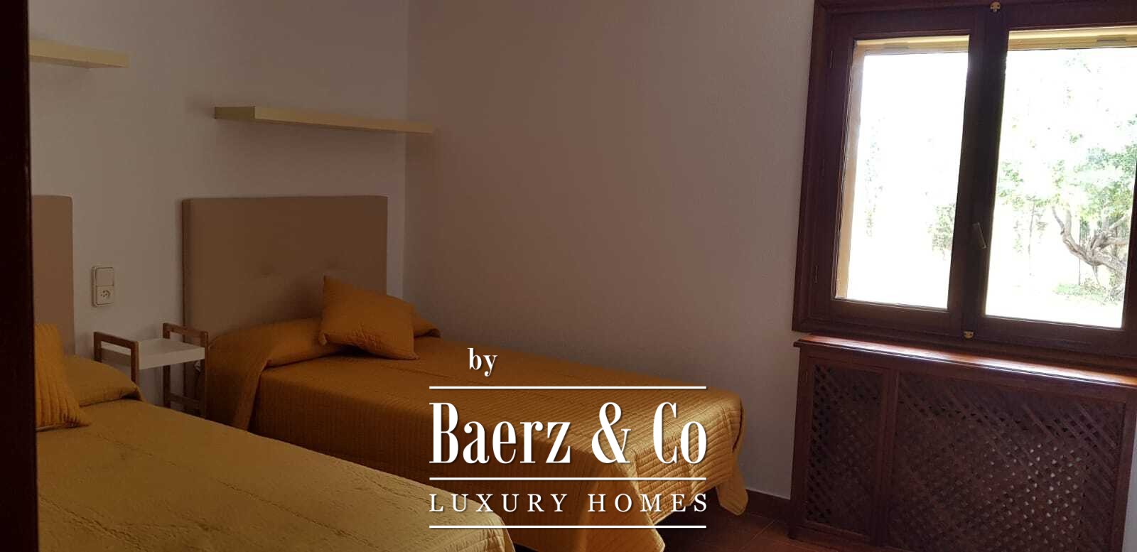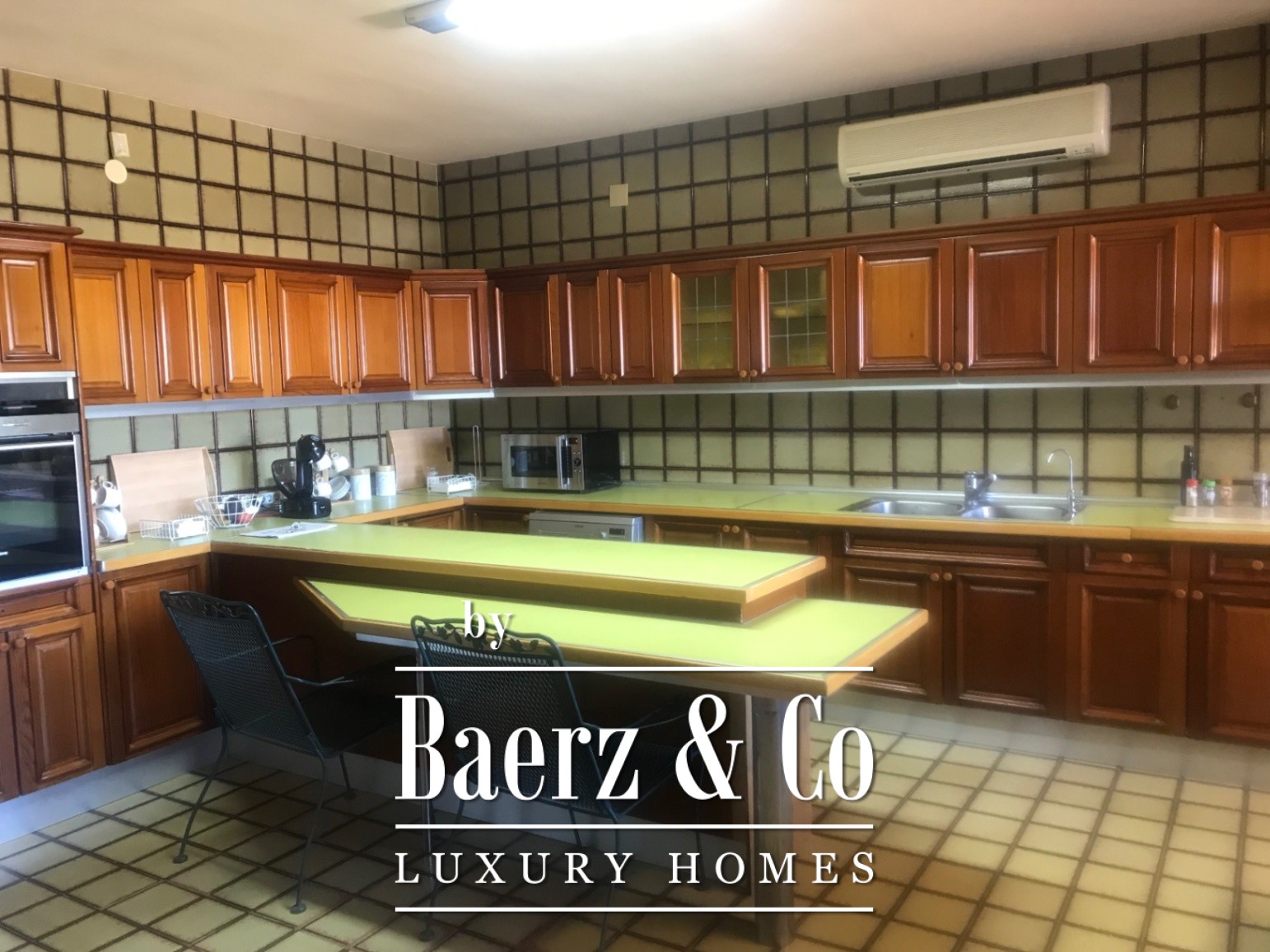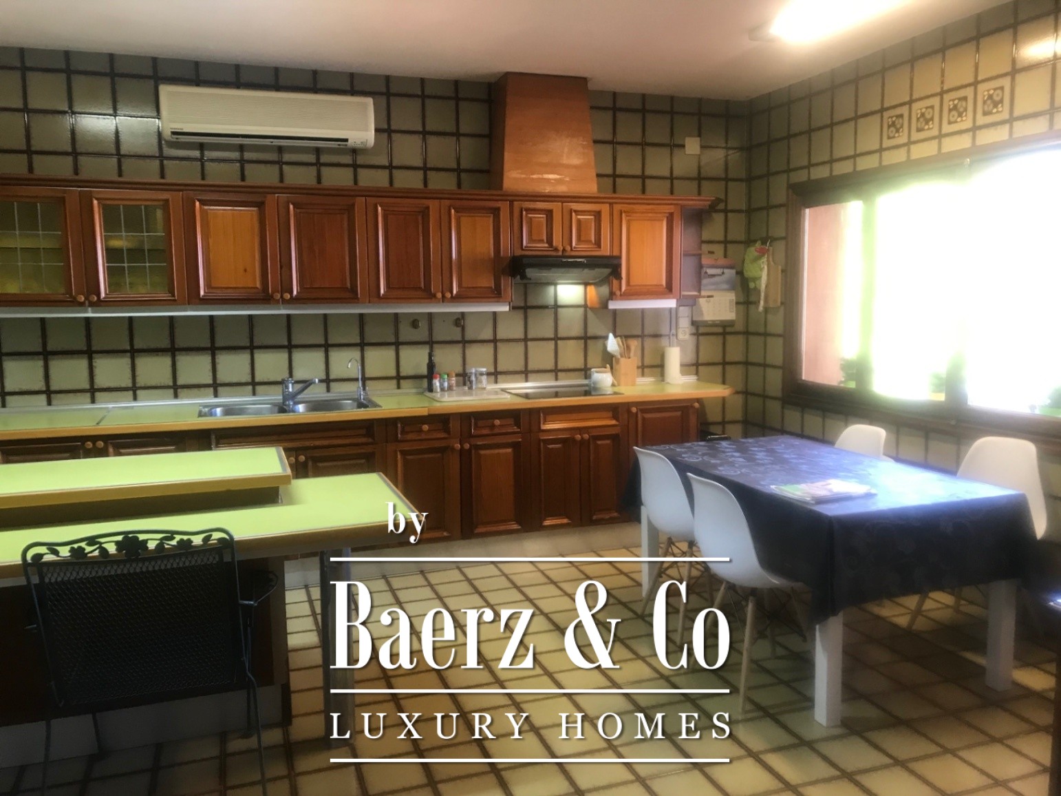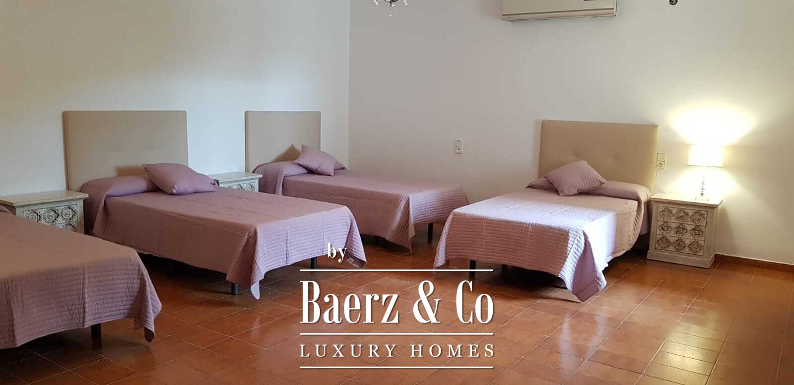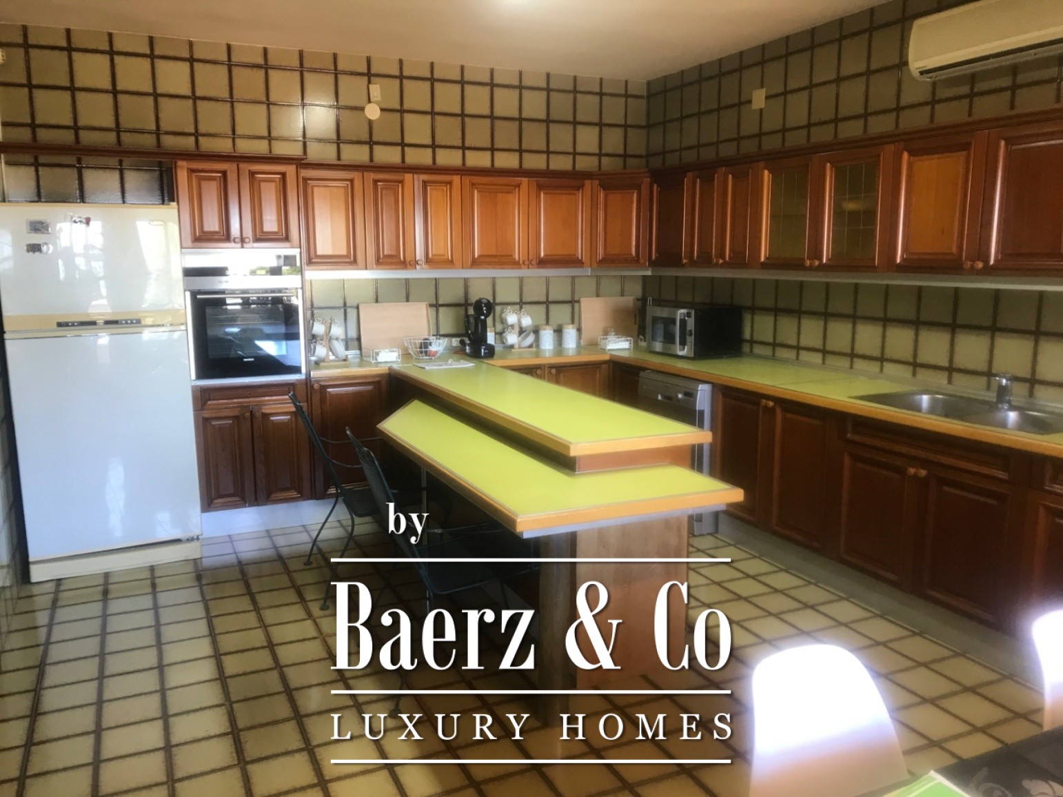 Внутреннее пространство организовано вокруг четырёх просторных двухместных спален и пяти полноценных ванных комнат; предусмотрен дополнительный гостевой санузел для удобства гостей. Главная гостиная площадью 100 м² гармонично переходит в большую кухню и столовую, что создаёт естественный ритм как для встреч, так и для тихого уединения. Вилла выходит в зрелый сад и к бассейну с отдельной детской зоной, а открытые и крытые террасы позволяют наслаждаться отдыхом на свежем воздухе круглый год.