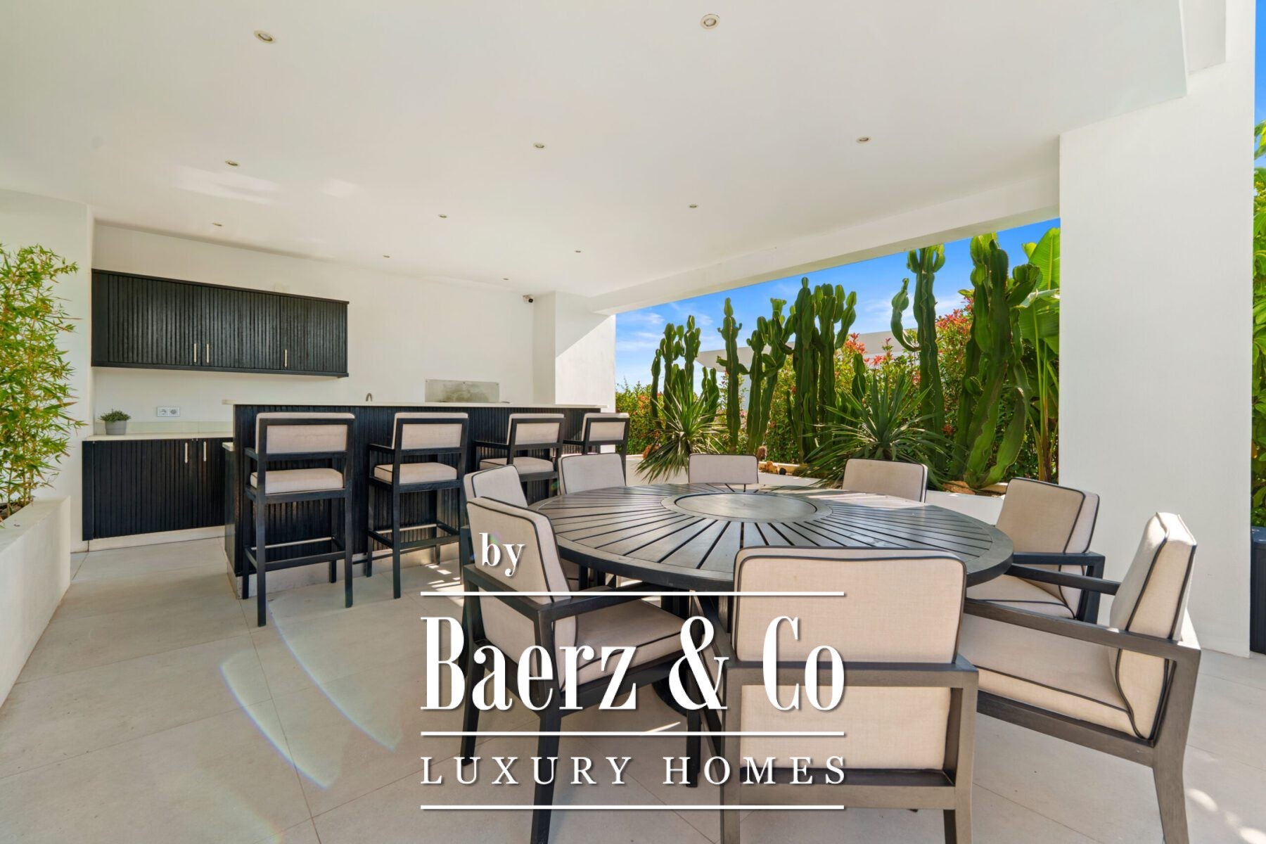 Современная вилла Marbella задает новый стандарт современной жизни в одном из самых престижных районов Марбельи. Резиденция занимает 581 м² жилой площади; здесь открытая планировка плавно объединяет гостиную, столовую и полностью оборудованную кухню. Панорамные раздвижные стеклянные двери соединяют интерьер с внешним пространством, наполняя дом естественным светом и открывая вид на частный участок площадью 1 231 м².