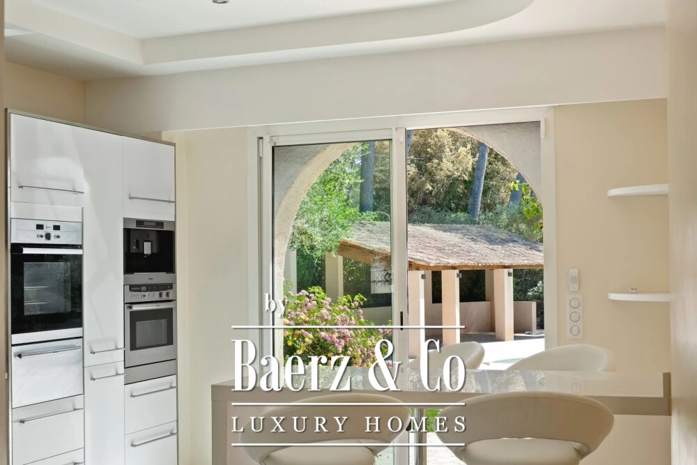 На территории резиденции находится изысканный бассейн необычной формы, дополненный зоной у бассейна и джакузи, что создает условия для спокойного отдыха или приватных встреч с гостями. Кондиционирование воздуха, раздвижные окна, система сигнализации и гараж на две машины с дополнительной парковкой гарантируют комфорт и безопасность. Эта роскошная вилла в Mouans-Sartoux создана для истинных ценителей авторской архитектуры и умиротворяющих пейзажей.