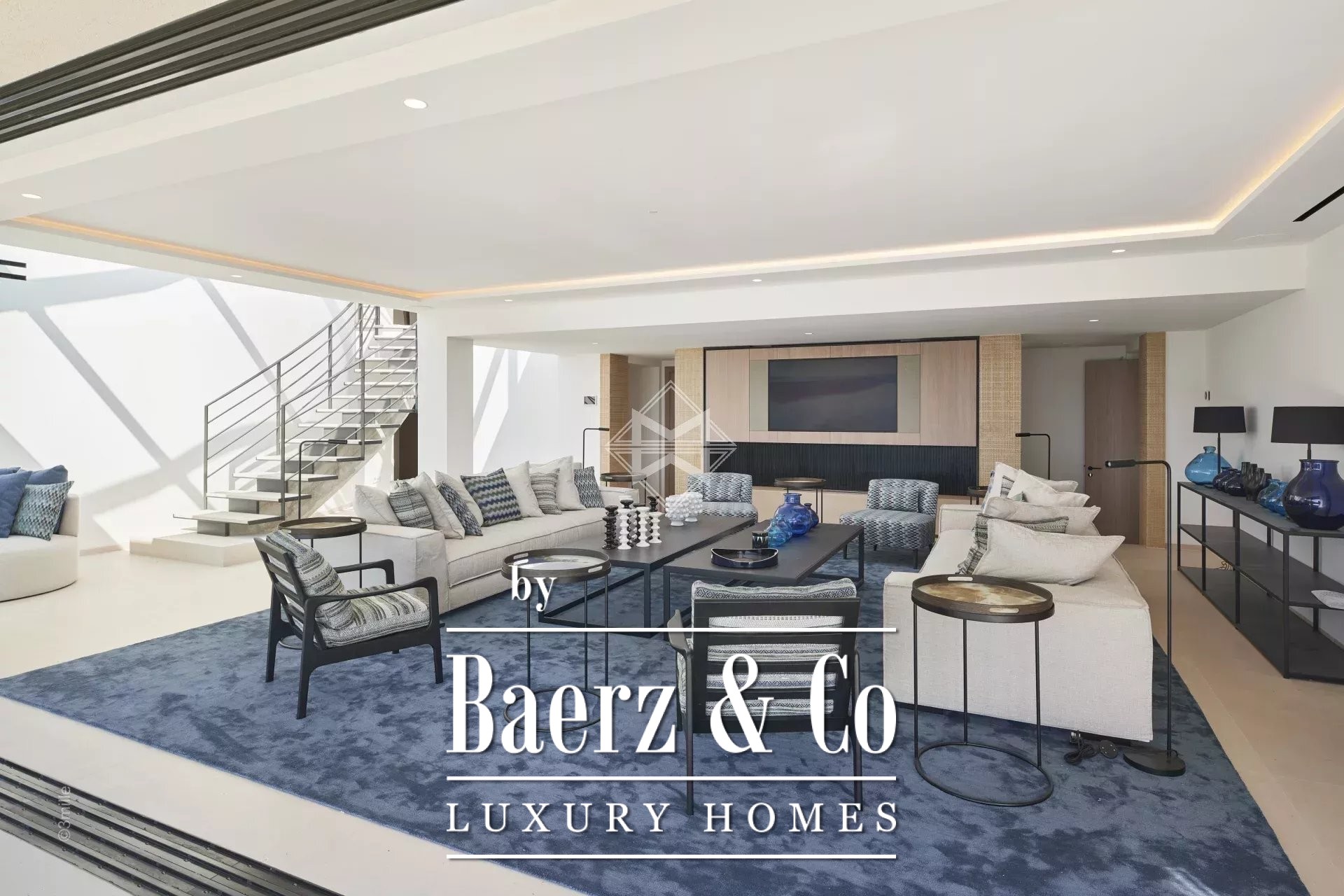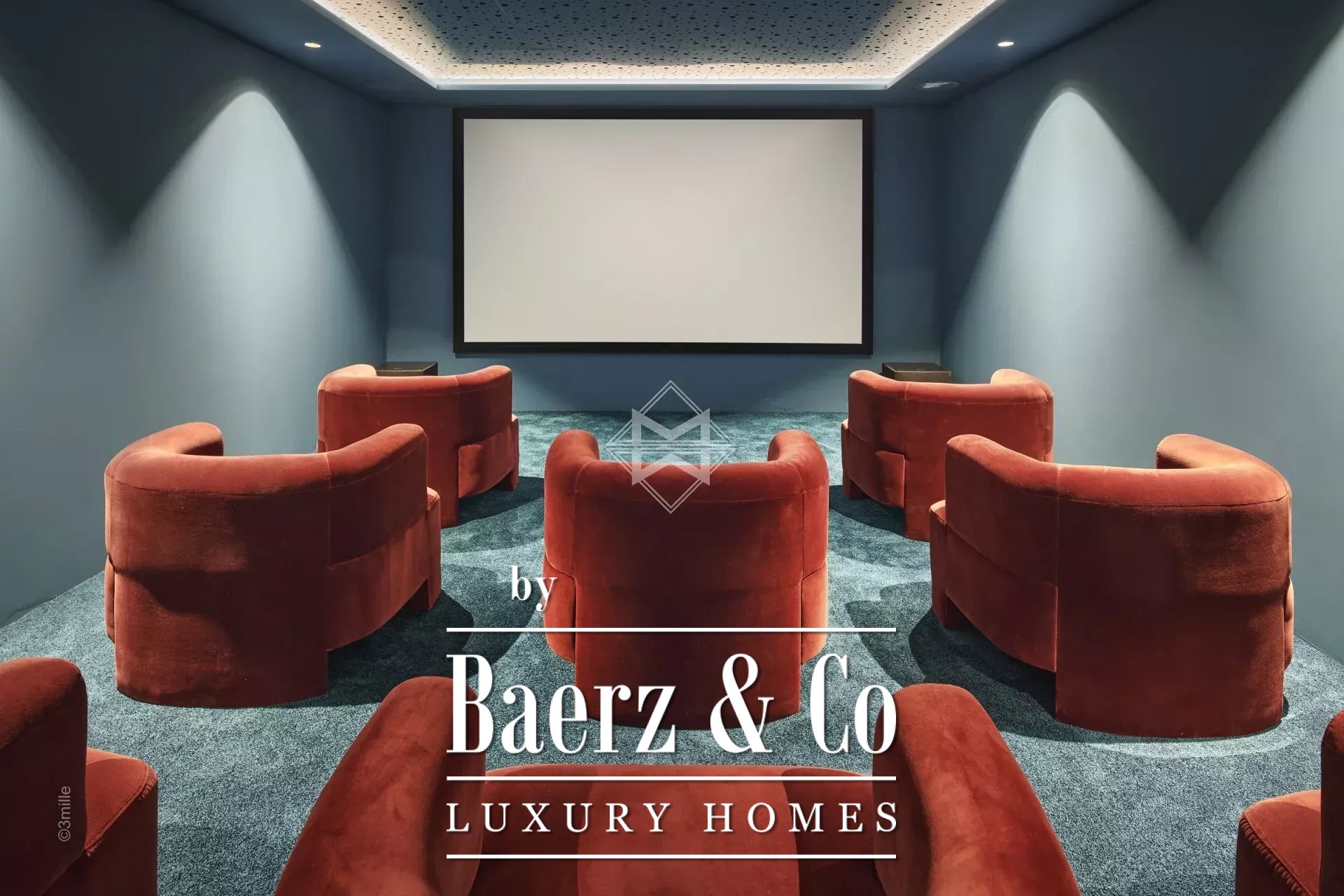 Здоровье и досуг интегрированы в структуру дома: здесь оборудована кинозал, просторный тренажерный зал, зона wellness с сауной и джакузи, а также подогреваемый зеркальный бассейн в саду. Полностью оборудованный pool house и парковка с просторными гаражами подчеркивают заботу о гостеприимстве и конфиденциальности.