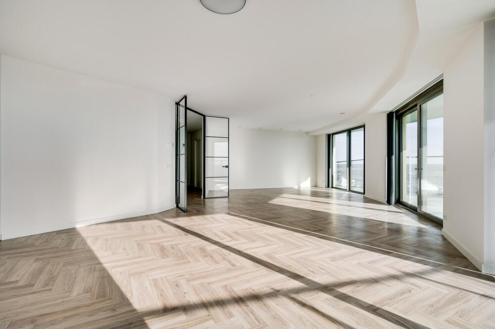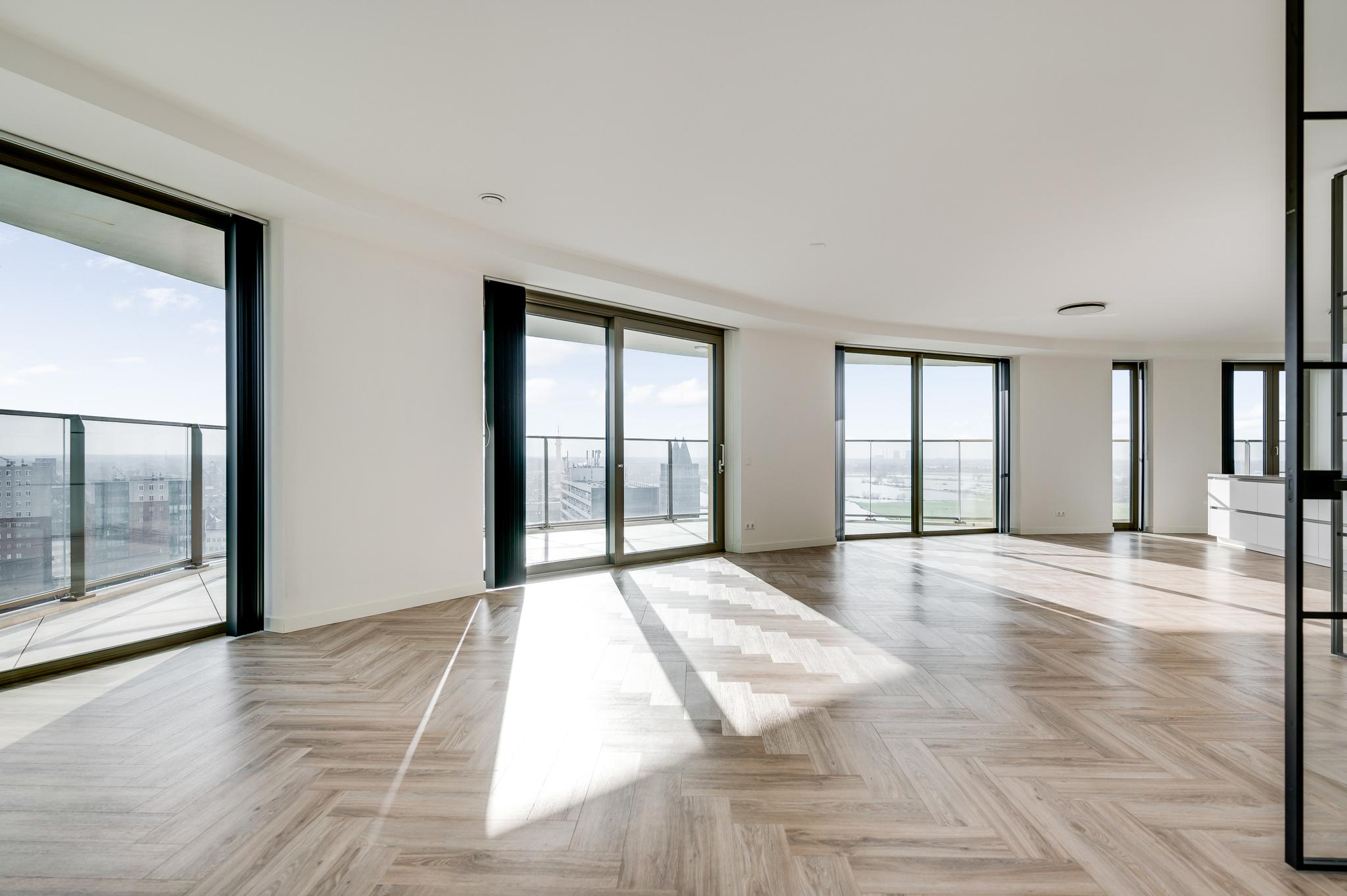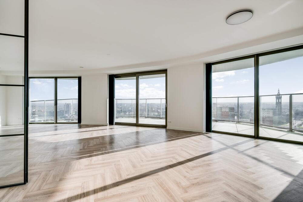 Пентхаус Roermond расположен на четырнадцатом этаже комплекса Manhattan Urban Residence, созданного для современной жизни и ориентированного на широкие виды Маасплассен. Здесь открывается около 185 м² жилой площади с почти трехметровыми потолками и панорамным остеклением от пола до потолка, наполняющим помещение светом и открывающим виды на город и воду.