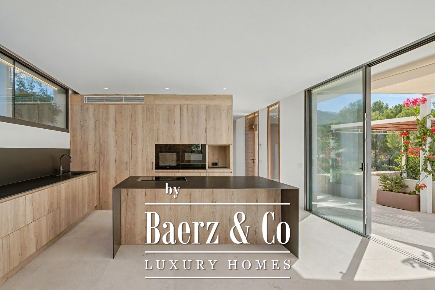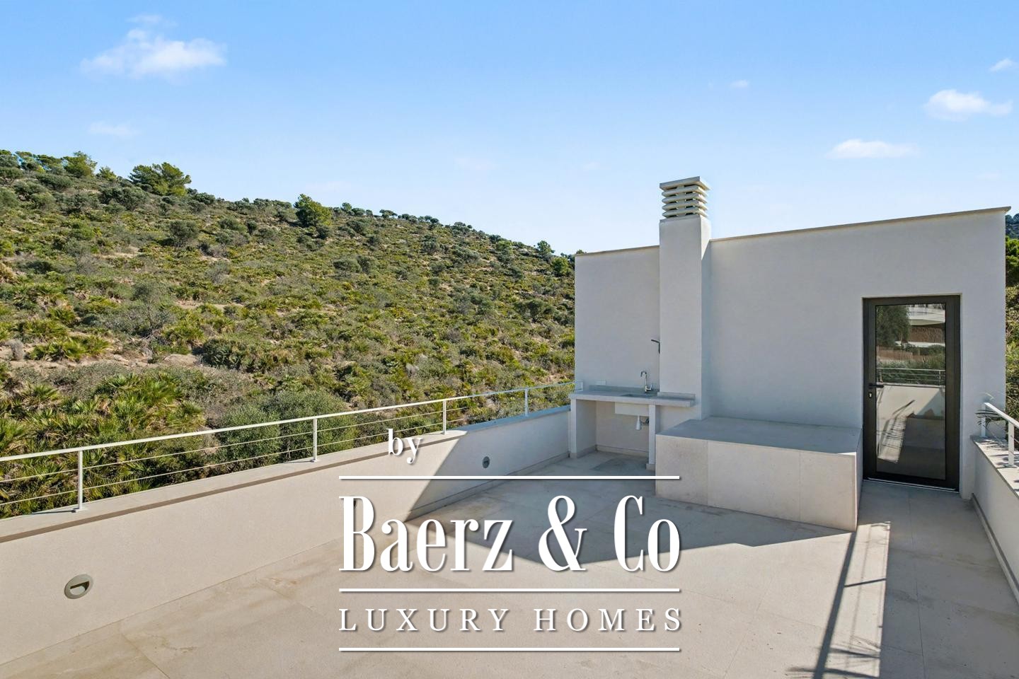 Вилла оборудована интегрированной системой отопления, интеллектуальным освещением и раздвижными ставнями из тика, что подчеркивает высочайший уровень комфорта и утонченного быта. В нижнем уровне дома располагаются гараж на две машины, техническое помещение и кладовая. Крыша увенчана террасой, с которой открываются виды на закаты, средиземноморскую линию горизонта и умиротворящее присутствие морского бриза — идеальное укромное место для тех, кто ищет роскошную виллу в Sant Elm.