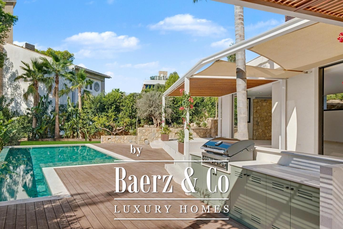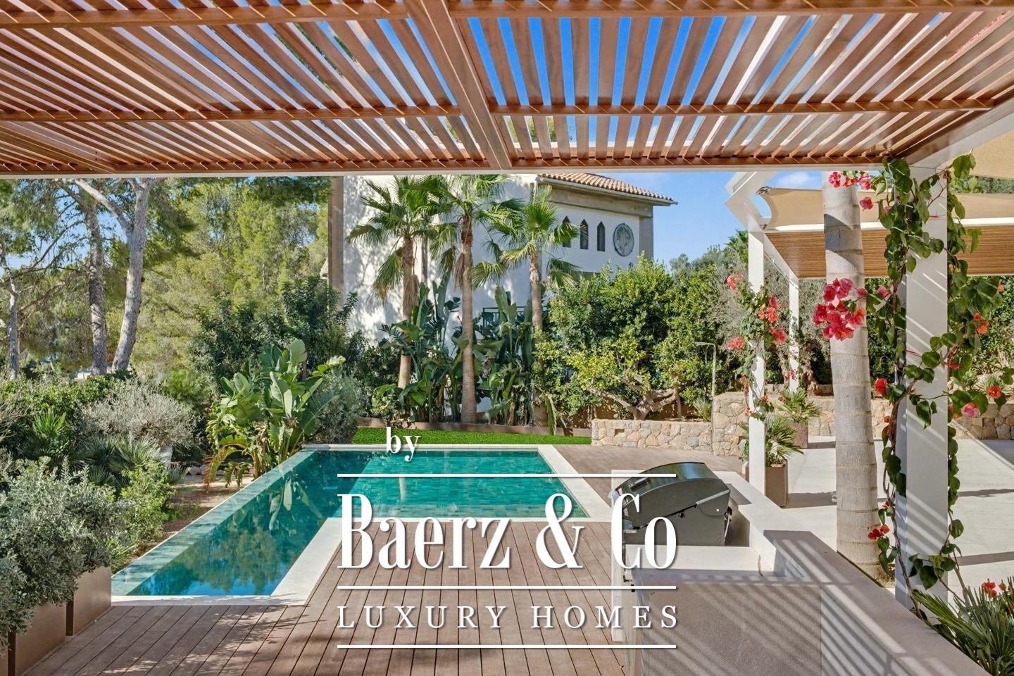 Бассейн с зелёной плиткой, средиземноморский сад с пальмами и продуманная зона для барбекю на свежем воздухе создают атмосферу уединения и гармонии. Виллы в Sant Elm редко сочетают столь высокий уровень приватности, прямой доступ к природе и современные удобства, в уникальной прибрежной локации, известной своими тихими бухтами и доступом к знаковым тропам, в том числе ведущим к Са Драгонере.