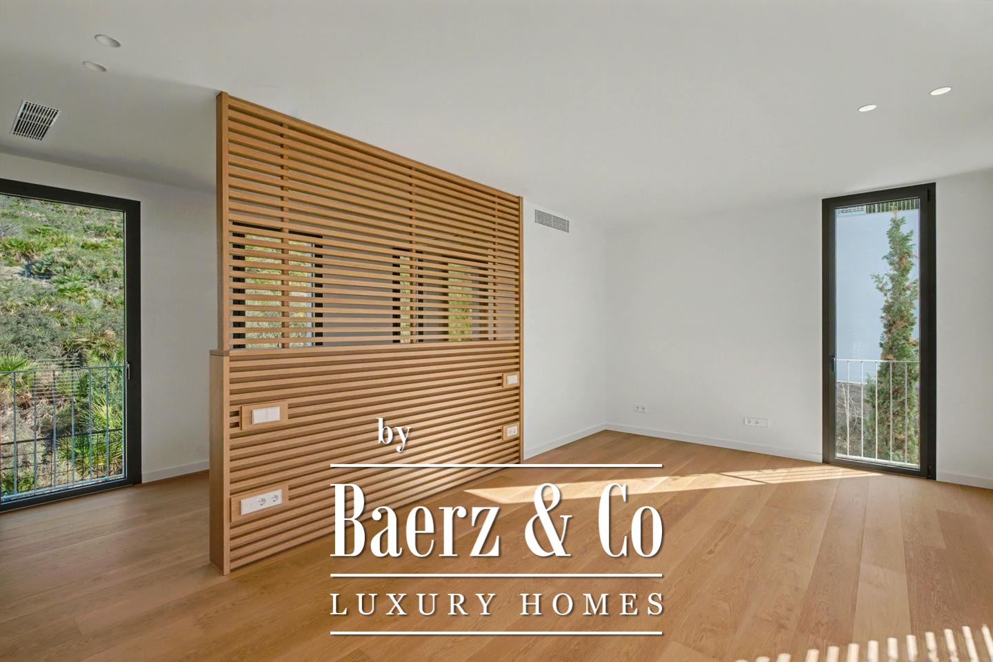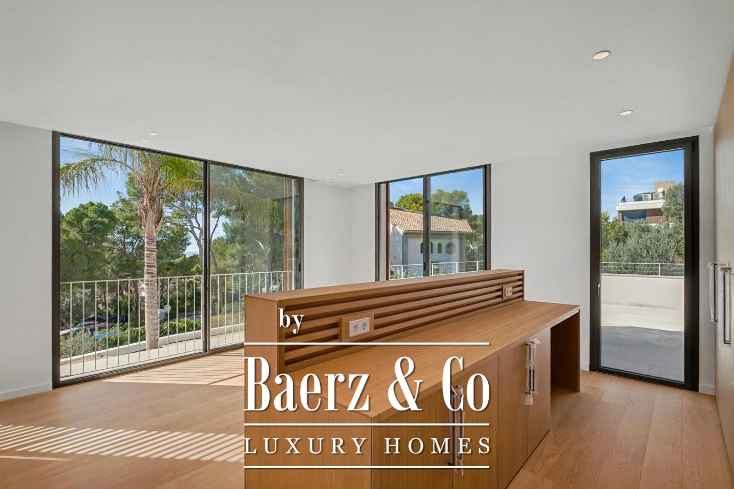 Основной этаж предлагает единое светлое пространство кухни и гостиной, выходящее на террасы, отделанные тиком, и создающее атмосферу для круглогодичного наслаждения благоприятным климатом Sant Elm. На этом уровне расположены две спальни и две ванные комнаты, оформленные с применением натуральных материалов и лаконичных деталей. На верхнем уровне — две мастер-сьюты с собственными ванными, при этом одна из них открывается на балкон, а другая — на просторную террасу с видом на зелёные просторы. Задняя часть участка граничит с природным заповедником, что гарантирует полную приватность и постоянную связь с окружающей природой.