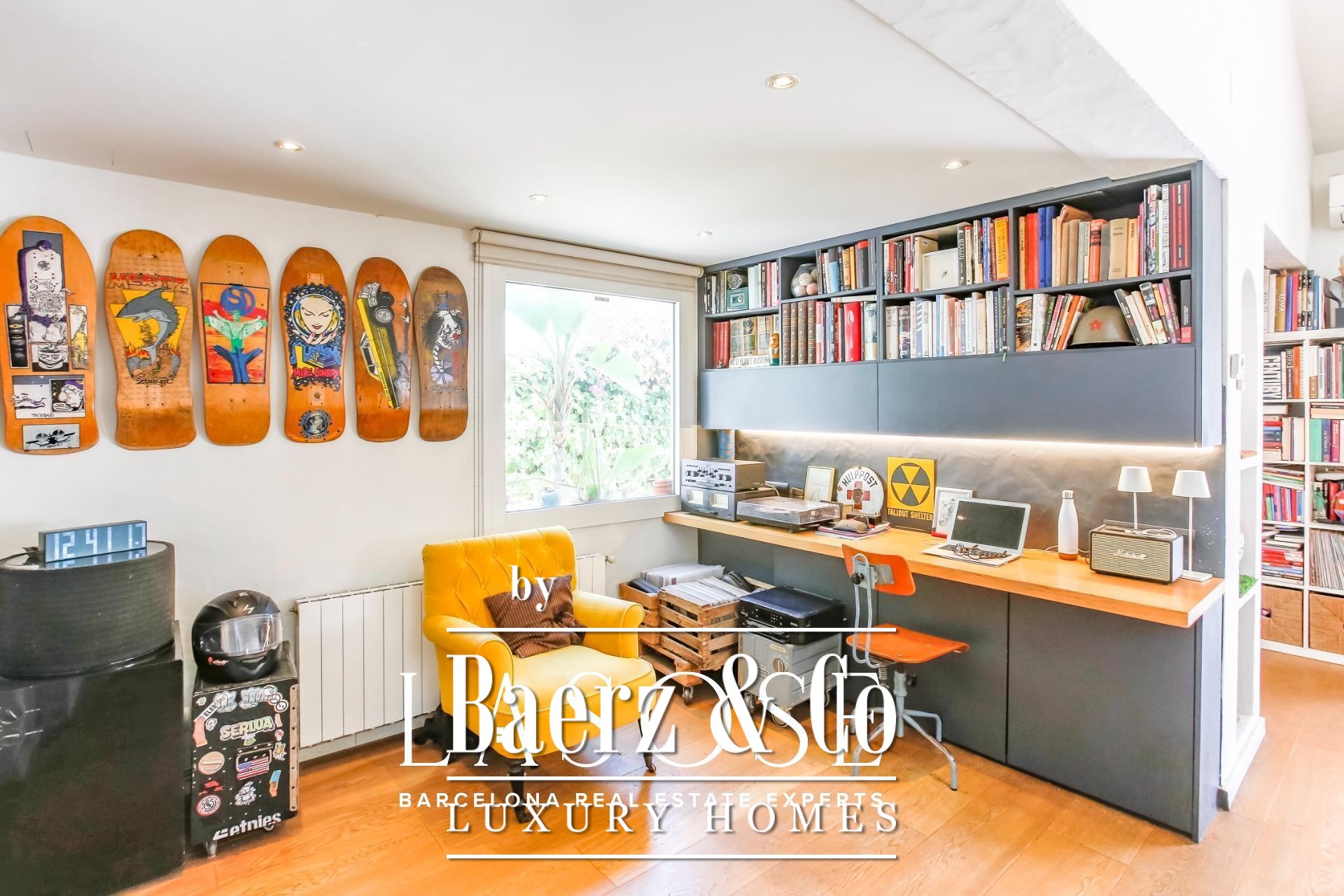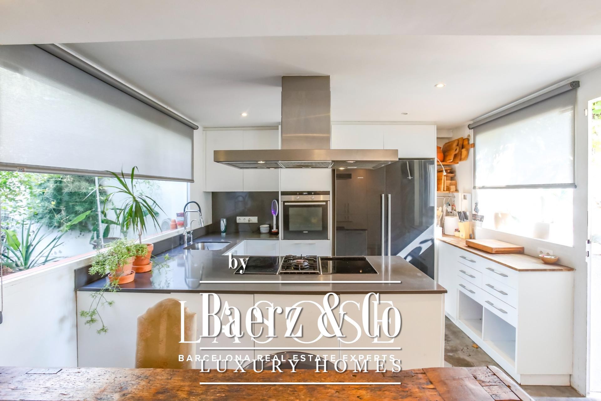Интерьеры наполнены гармонией: элегантная гостиная с камином выходит на сад, полностью оборудованная кухня с центральной рабочей зоной примыкает к приватному патио и парковке. На первом этаже расположены квартира для гостей или кабинет, обеспечивая гибкость жилого пространства. Верхний уровень занимает три светлые двухместные спальни с видом на сады и высокими потолками. По всему дому изысканные отделки и нейтральная цветовая гамма подчеркивают естественную элегантность архитектуры.