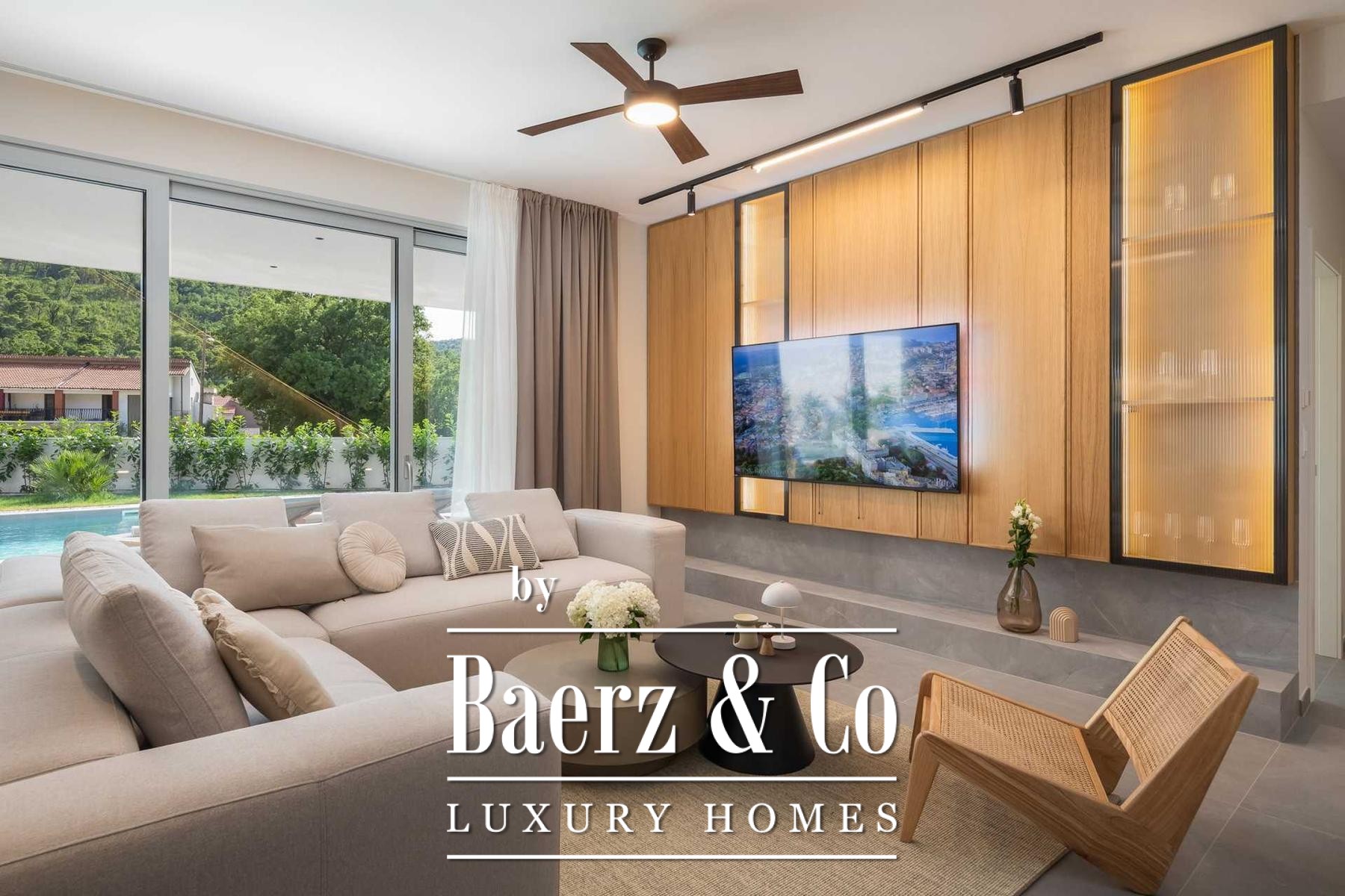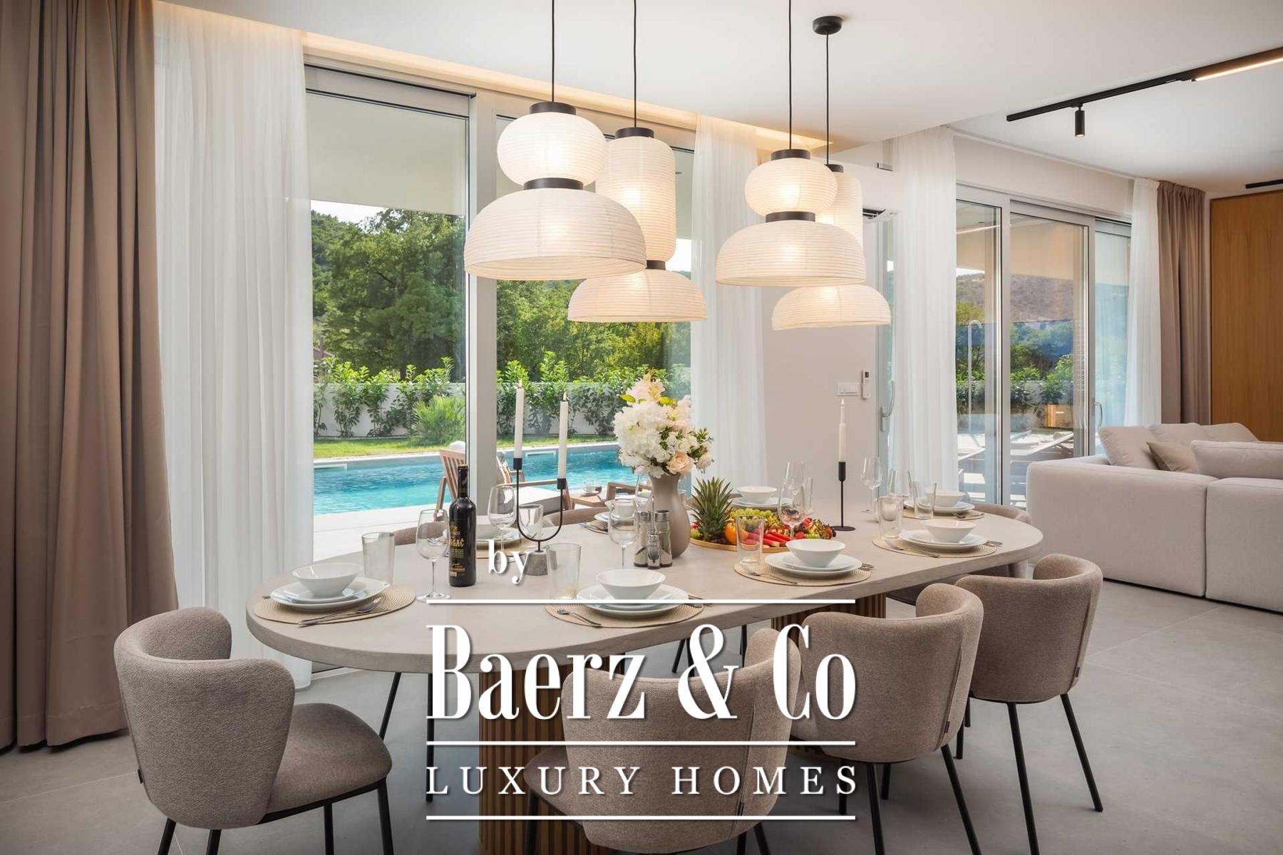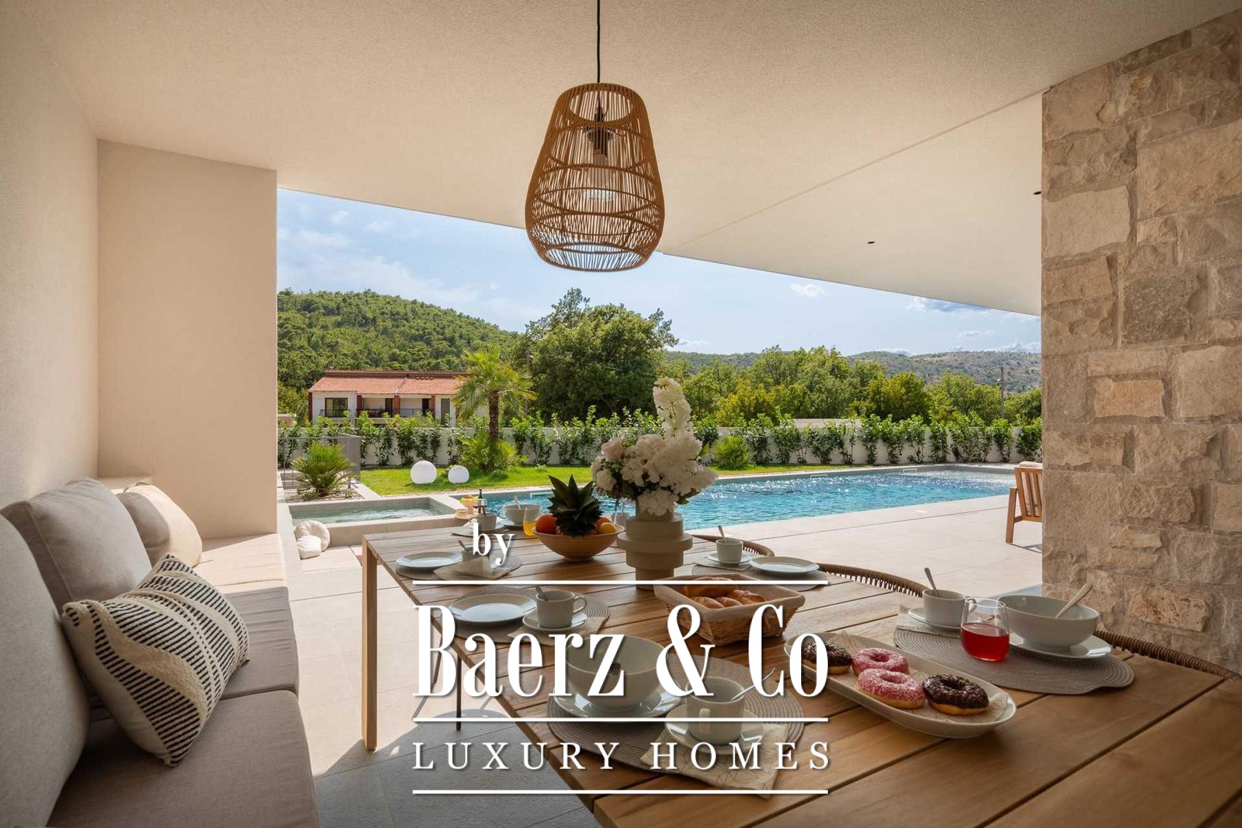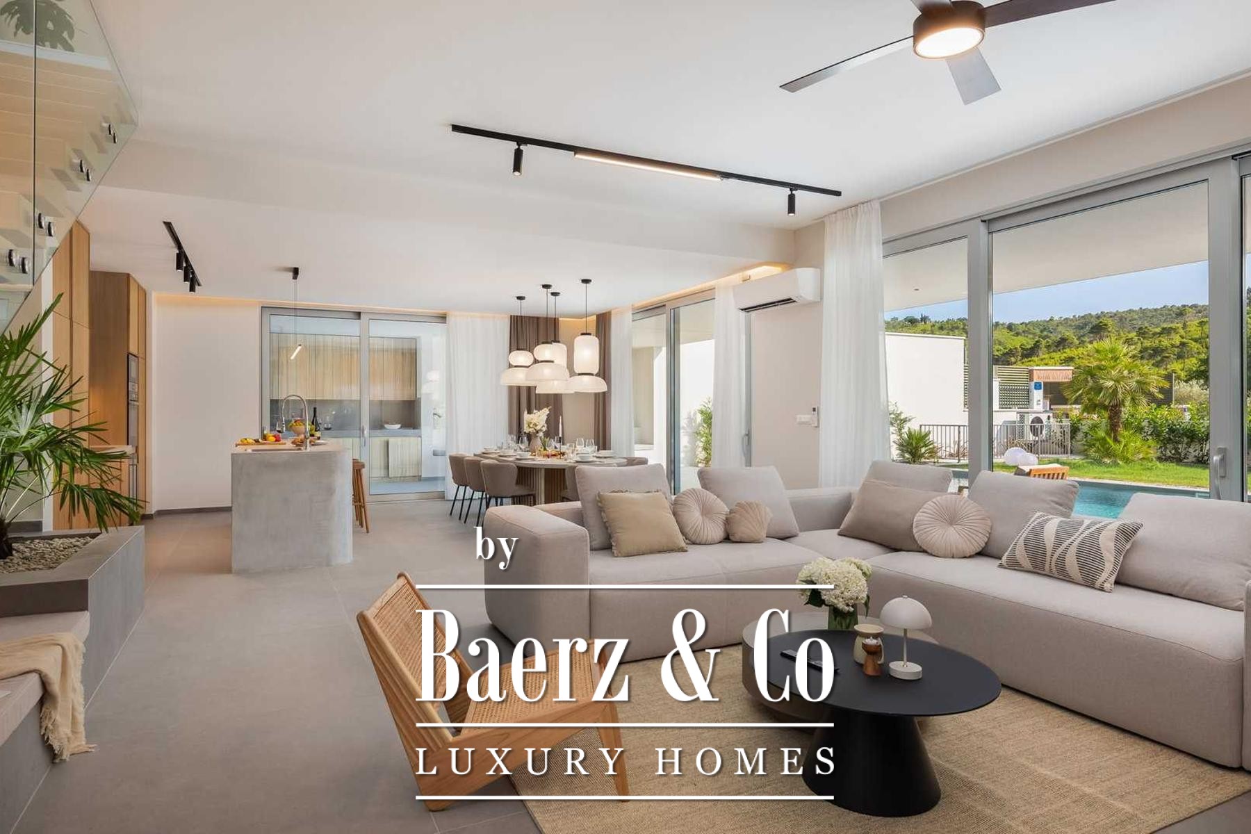 Вилла Split Okolica — современное убежище на просторном участке площадью 2 090 м², отличающееся приватностью и изысканным зонированием. Жилая площадь 330 м² органично распределена на двух уровнях, каждый из которых продуман для баланса между личным пространством и возможностями для приема гостей.