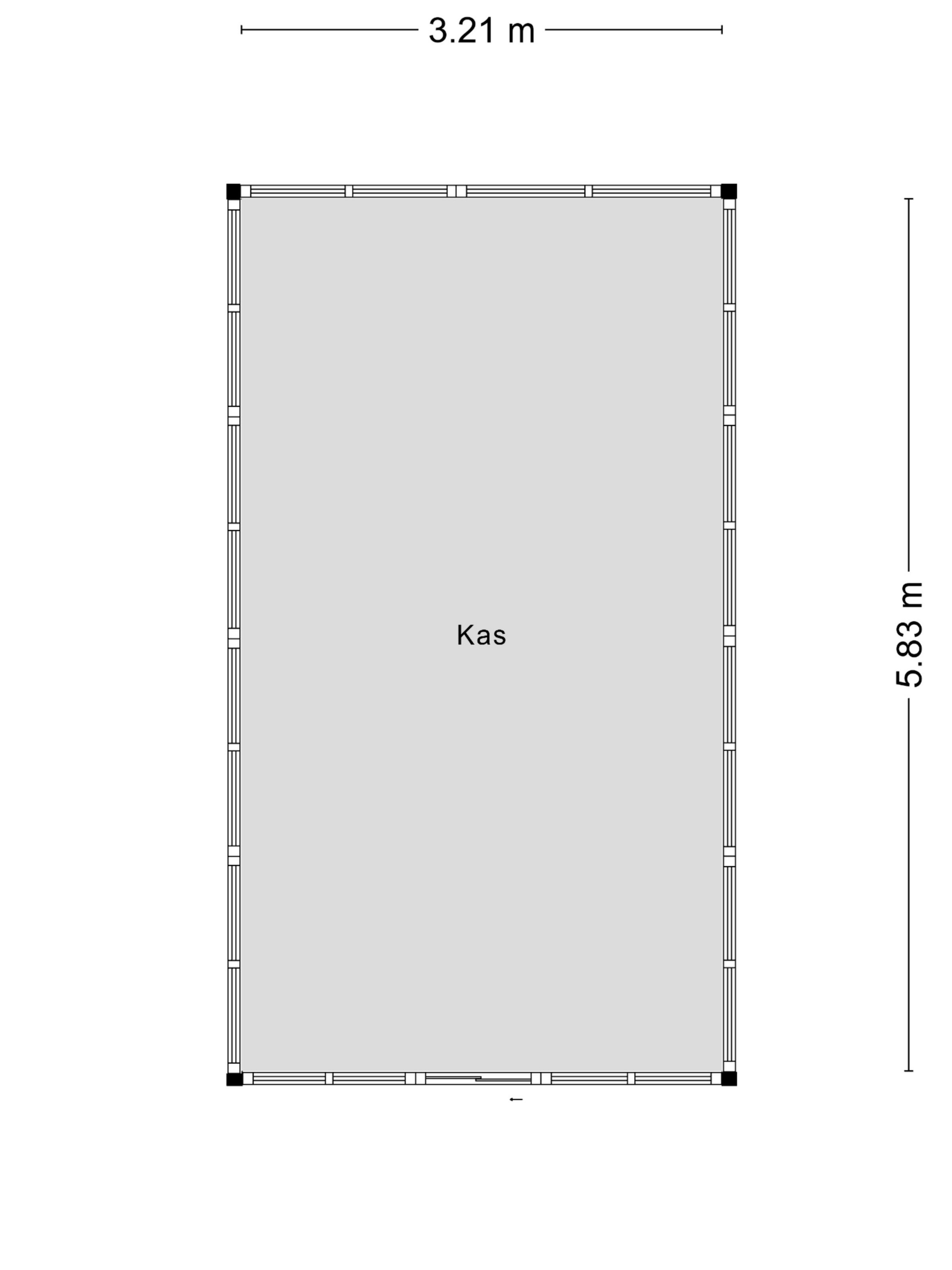 Gebouwd in hout, betonvloer, lessenaarsdak gedekt met nieuwe panlatten vv. een laag bitumineuze dakbedekking (2024).