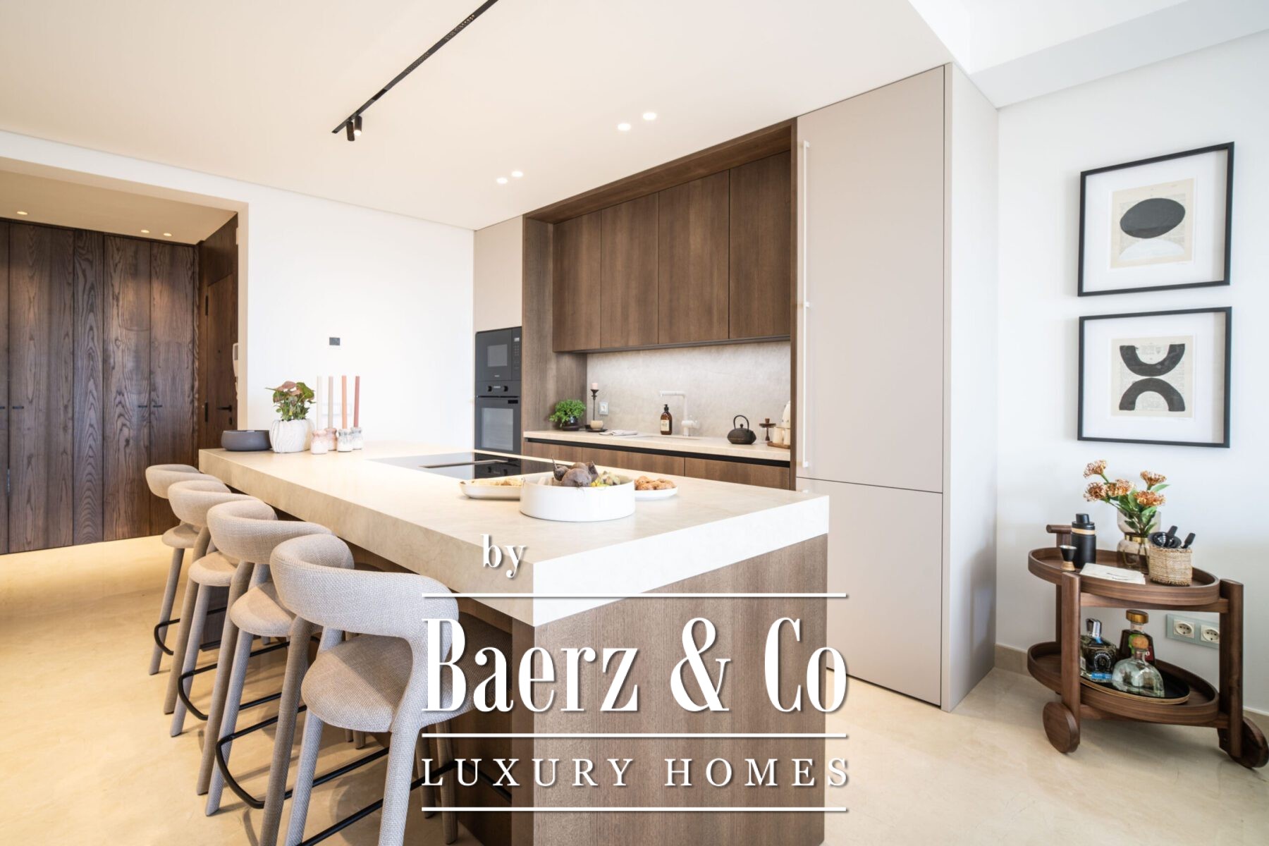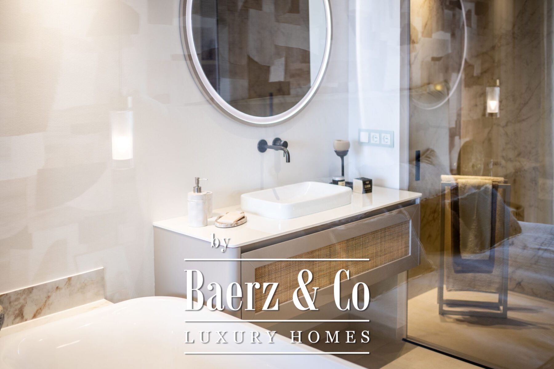 室内空间巧妙布局,124平方米起居区层次分明。无缝开放式布局通向现代厨房,甄选高端电器与宽阔操作台,无论日常烹饪还是欢庆时刻皆得心应手。三间卧室各自构建私密空间,主卧套房作为安享静谧的庇护所,享有极致景观与卓越卫浴。两间精致浴室兼具实用体验与宁静氛围。